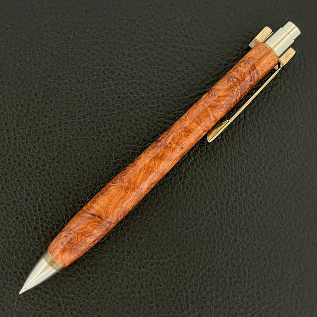 ボールペンのノックシステムは、ドイツ最高のクリックメカニズムを採用してあります。このメカニズムはユニークな機構のため、クリックしたときのカチカチ音が静かで、どんな場所でも気兼ねなく使うことができます。滑らかに動くこのプッシュ感覚を一度味わうと他には戻れなくなってしまうほどの魅力があります。 100分の1単位の加工精度で削り出されたペン先は、軸ブレも全くありません。