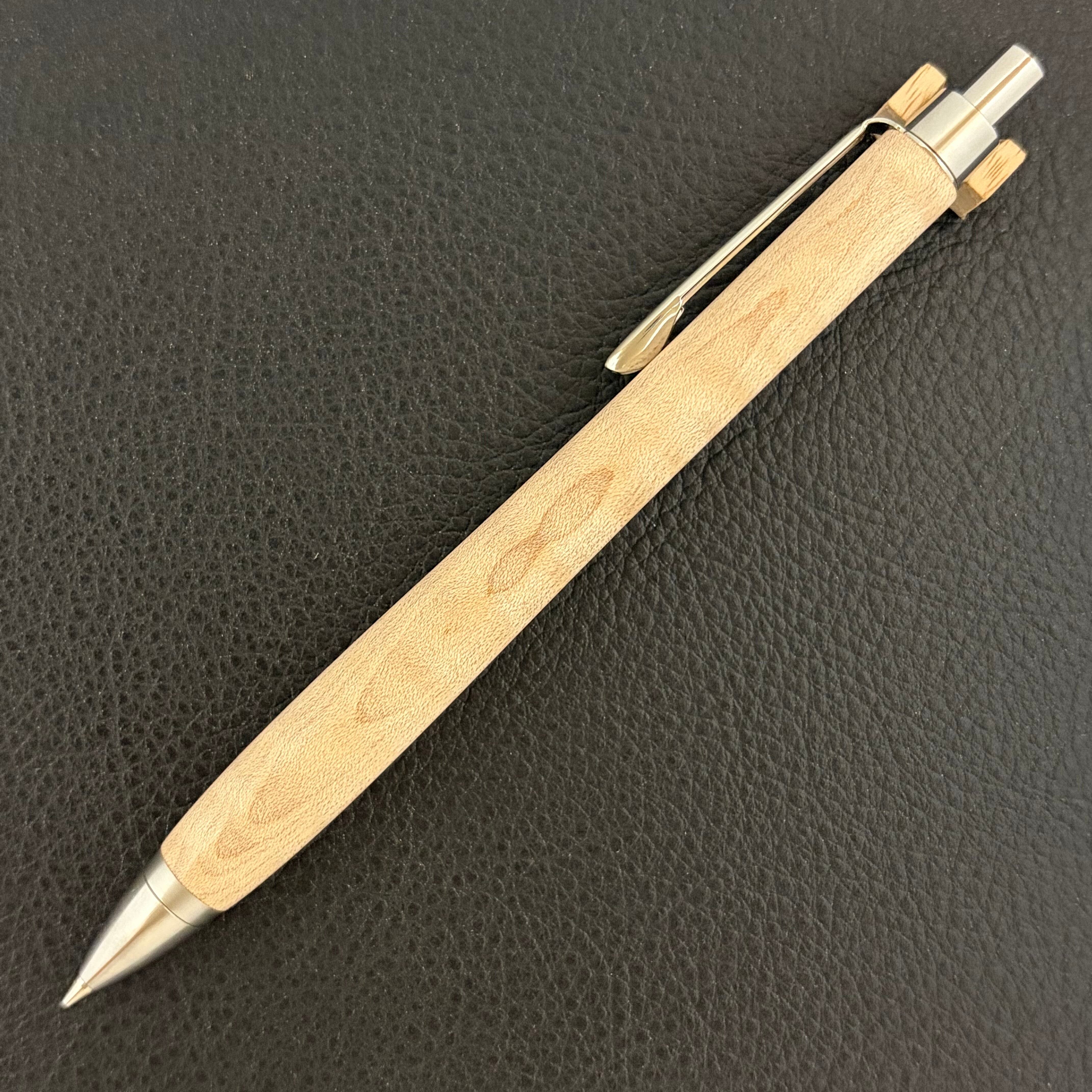 ペンシルは軸ブレが起こりにくい固定式口金を採用し、木の表情を最大限に楽しめる木軸の長さと、書き心地にこだわったバランスで金具を設計してあります。
