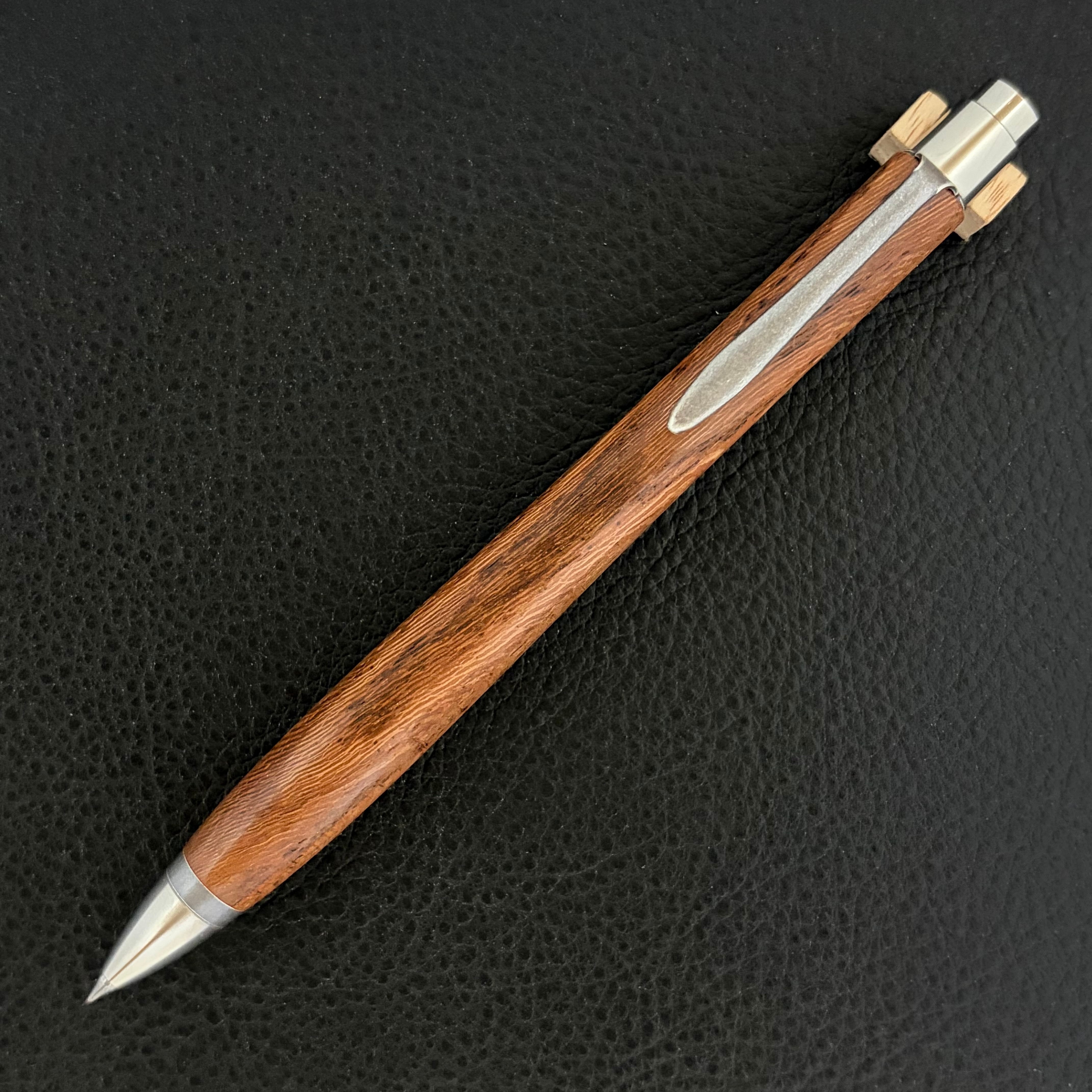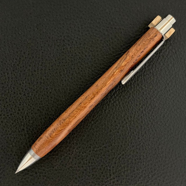 ボールペンのノックシステムは、ドイツ最高のクリックメカニズムを採用してあります。このメカニズムはユニークな機構のため、クリックしたときのカチカチ音が静かで、どんな場所でも気兼ねなく使うことができます。滑らかに動くこのプッシュ感覚を一度味わうと他には戻れなくなってしまうほどの魅力があります。 100分の1単位の加工精度で削り出されたペン先は、軸ブレも全くありません。