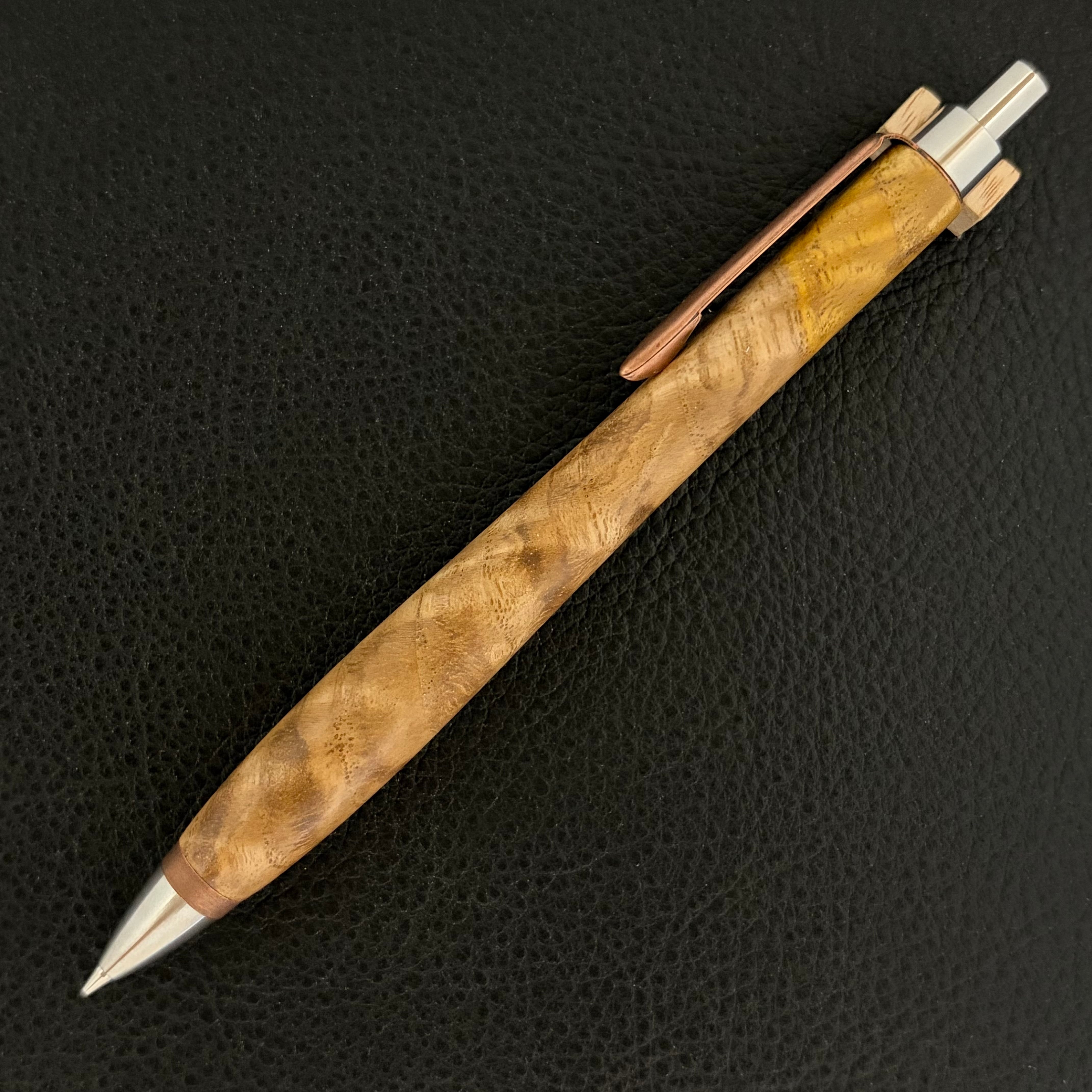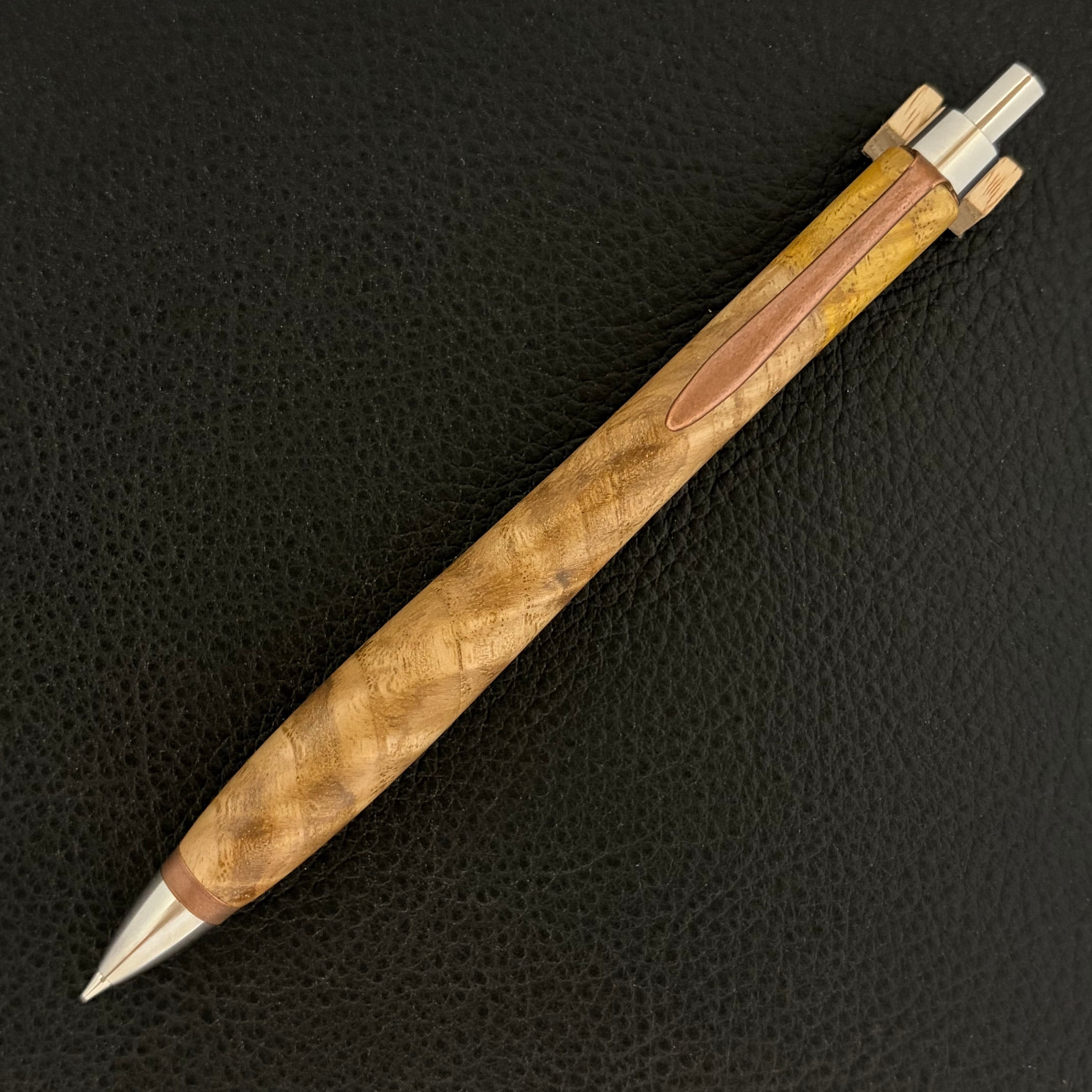 ペンシルは軸ブレが起こりにくい固定式口金を採用し、木の表情を最大限に楽しめる木軸の長さと、書き心地にこだわったバランスで金具を設計してあります。