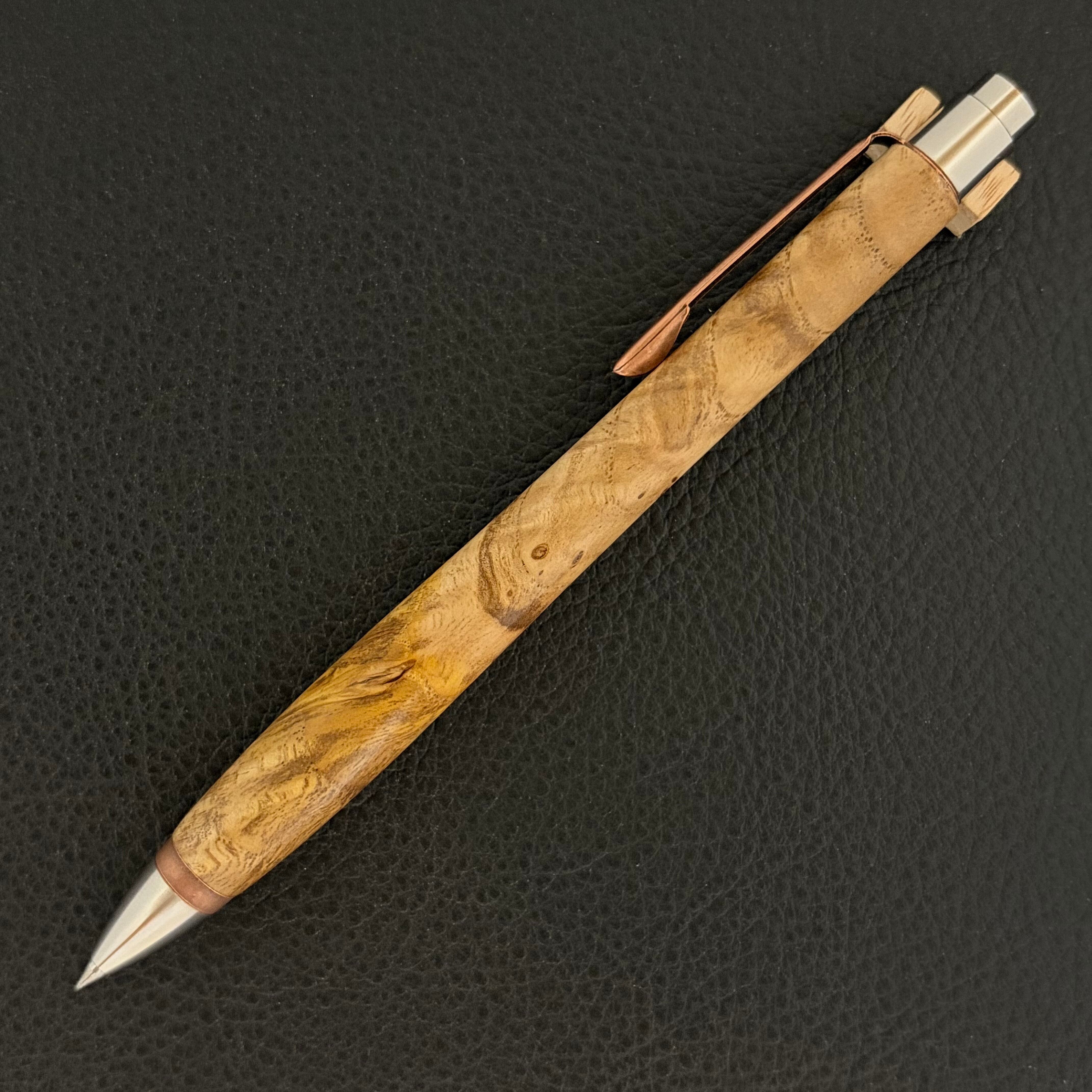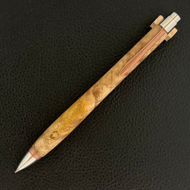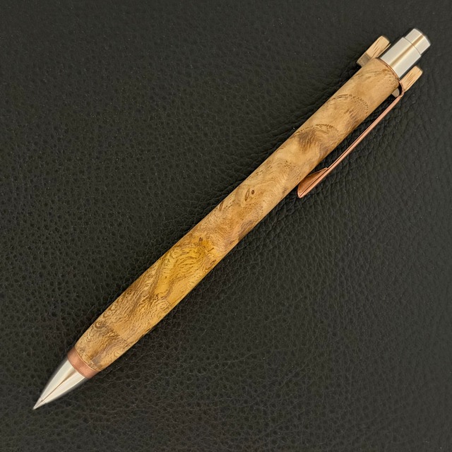 ボールペンのノックシステムは、ドイツ最高のクリックメカニズムを採用してあります。このメカニズムはユニークな機構のため、クリックしたときのカチカチ音が静かで、どんな場所でも気兼ねなく使うことができます。滑らかに動くこのプッシュ感覚を一度味わうと他には戻れなくなってしまうほどの魅力があります。 100分の1単位の加工精度で削り出されたペン先は、軸ブレも全くありません。