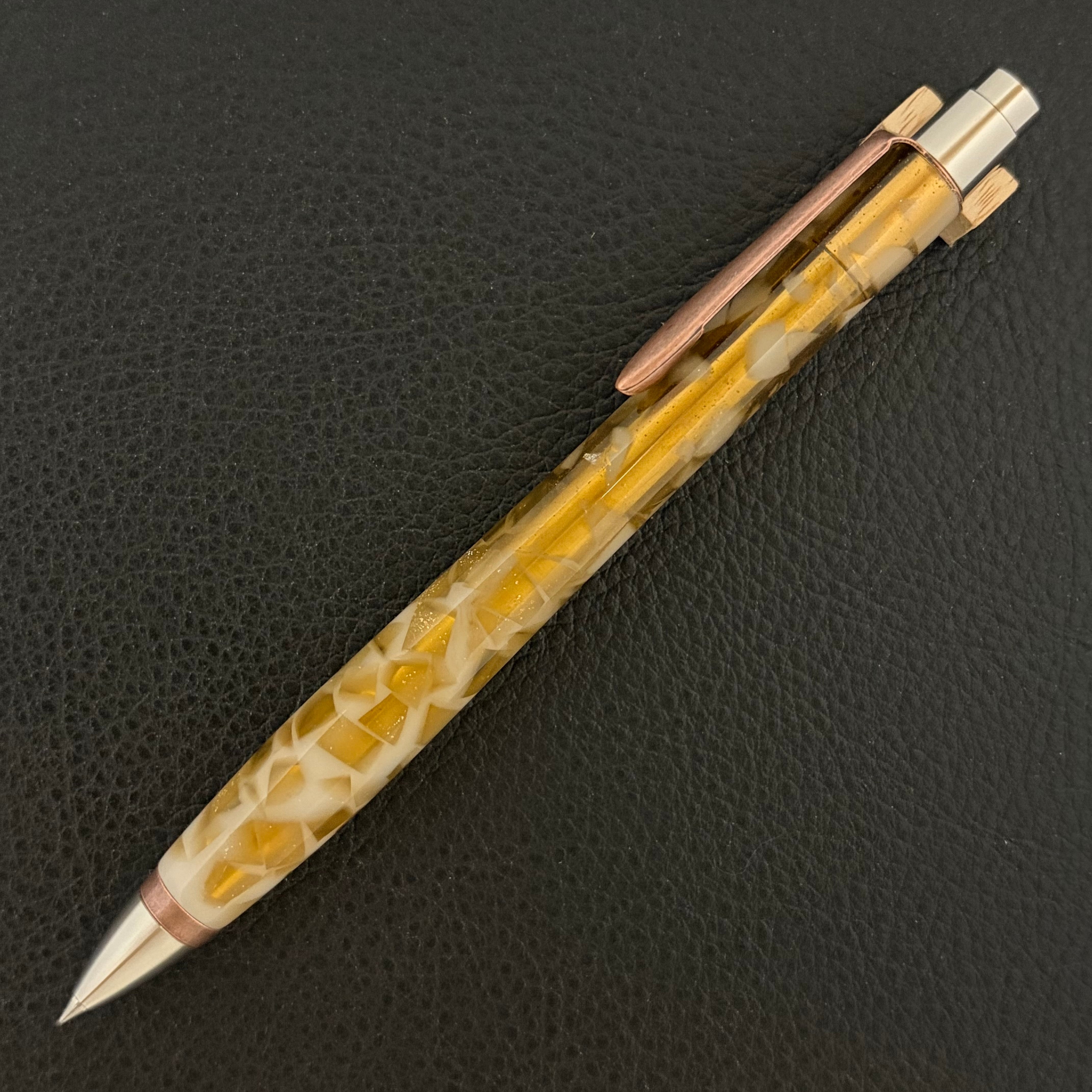 ・レジンの透明感を引き立てるために内部の真鍮にもこだわっています。