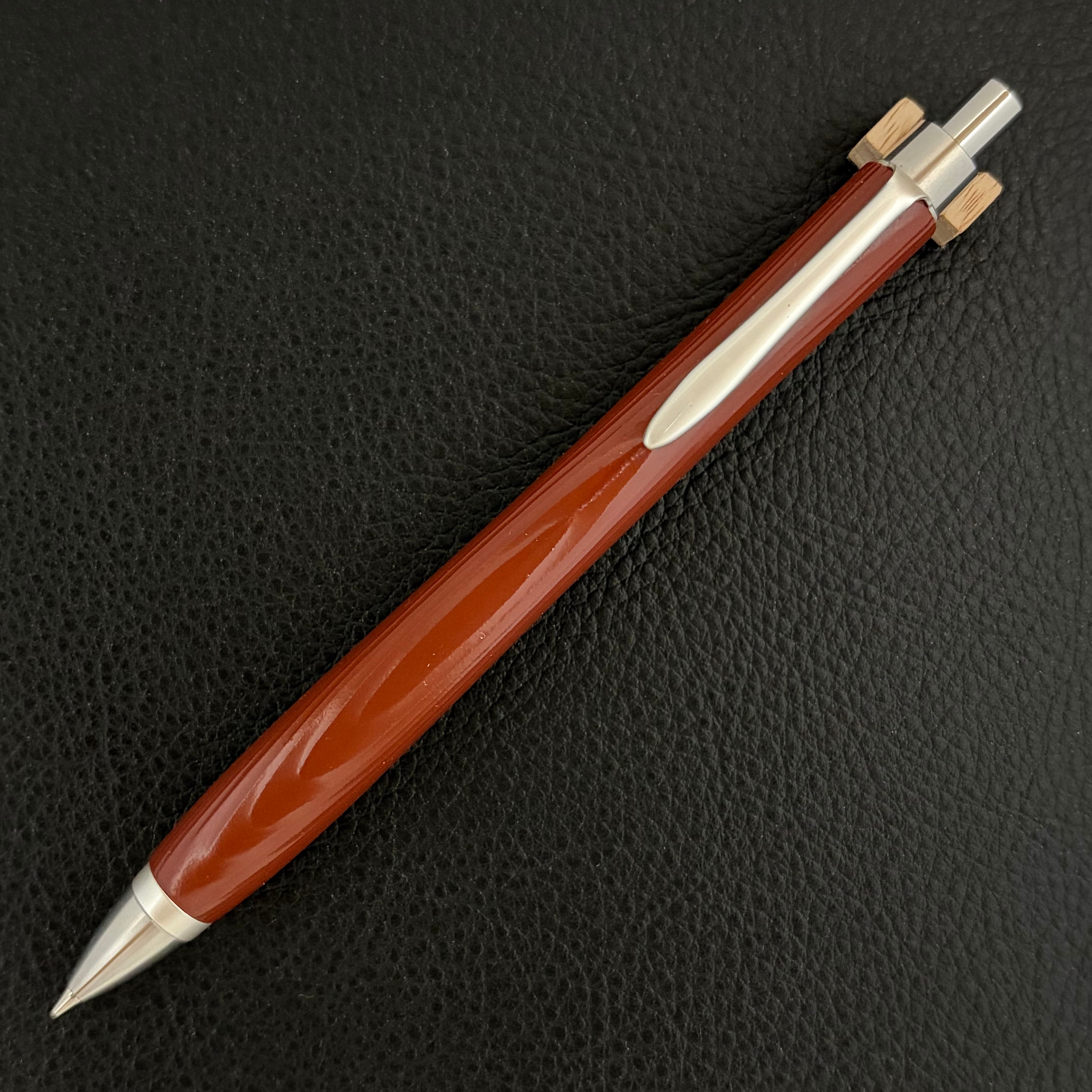 ペンシルは軸ブレが起こりにくい固定式口金を採用し、木の表情を最大限に楽しめる木軸の長さと、書き心地にこだわったバランスで金具を設計してあります。