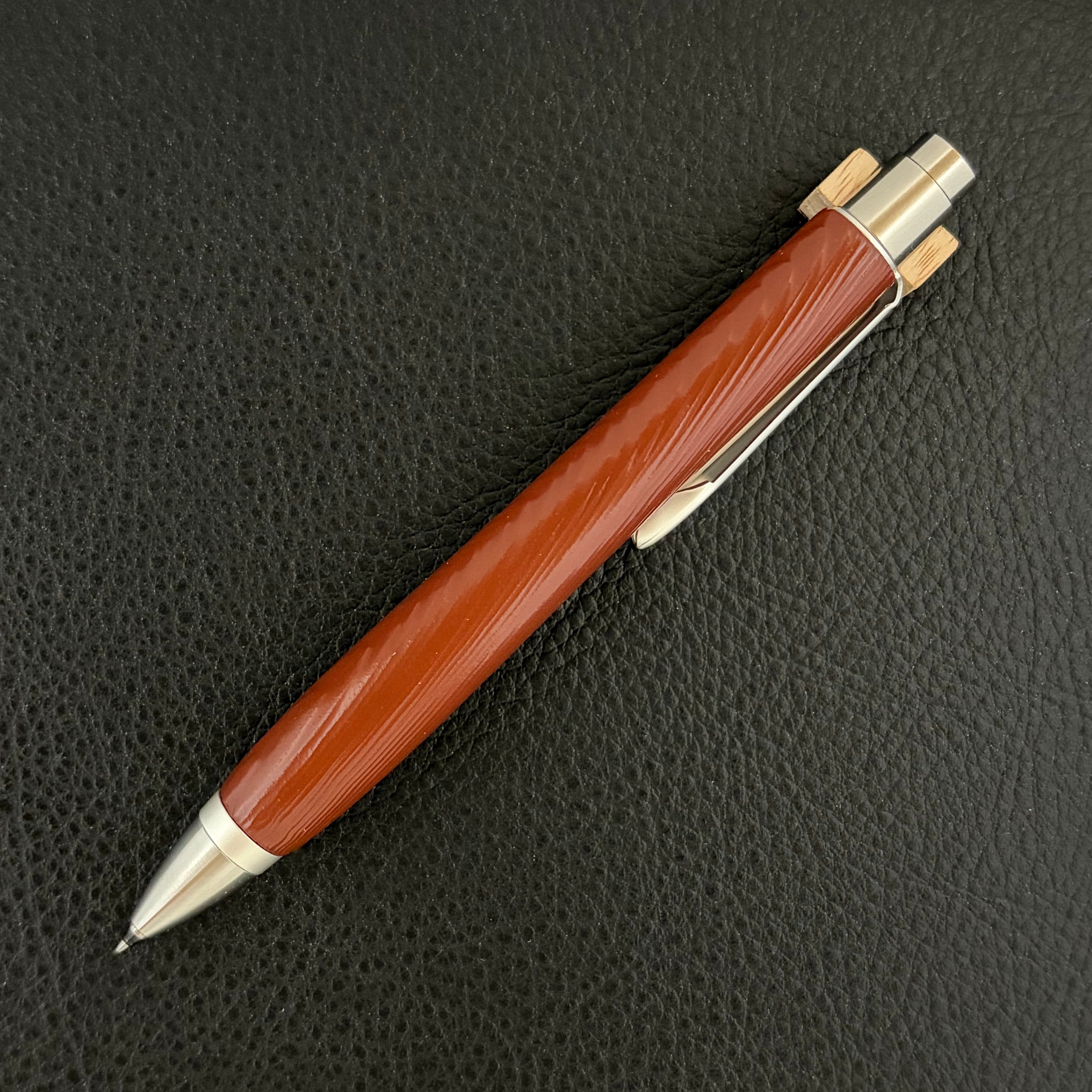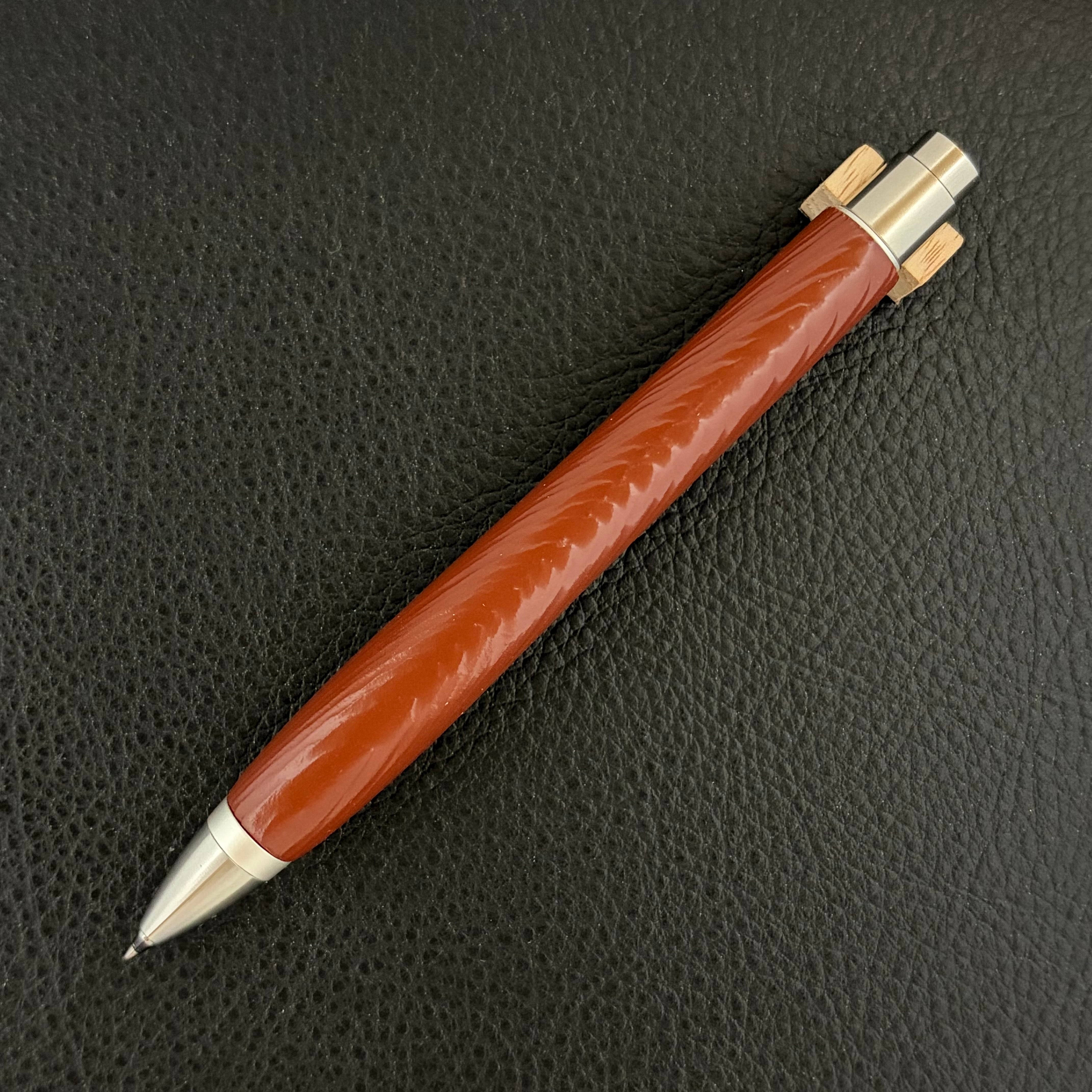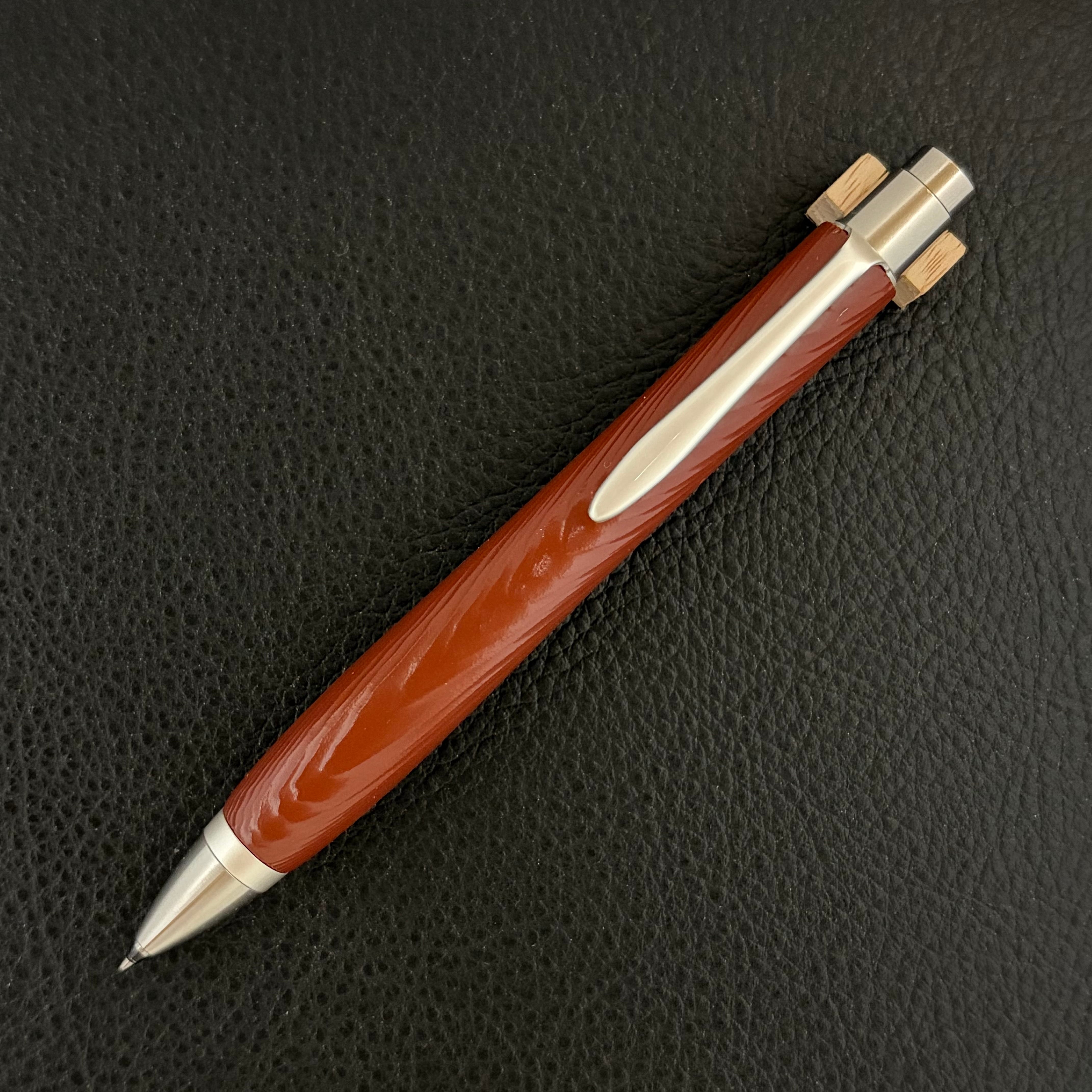 【浮造り国産吹屋弁柄・朱珠(あけしゅ)-107120525】ショートボールペン(M5手帳サイズ)