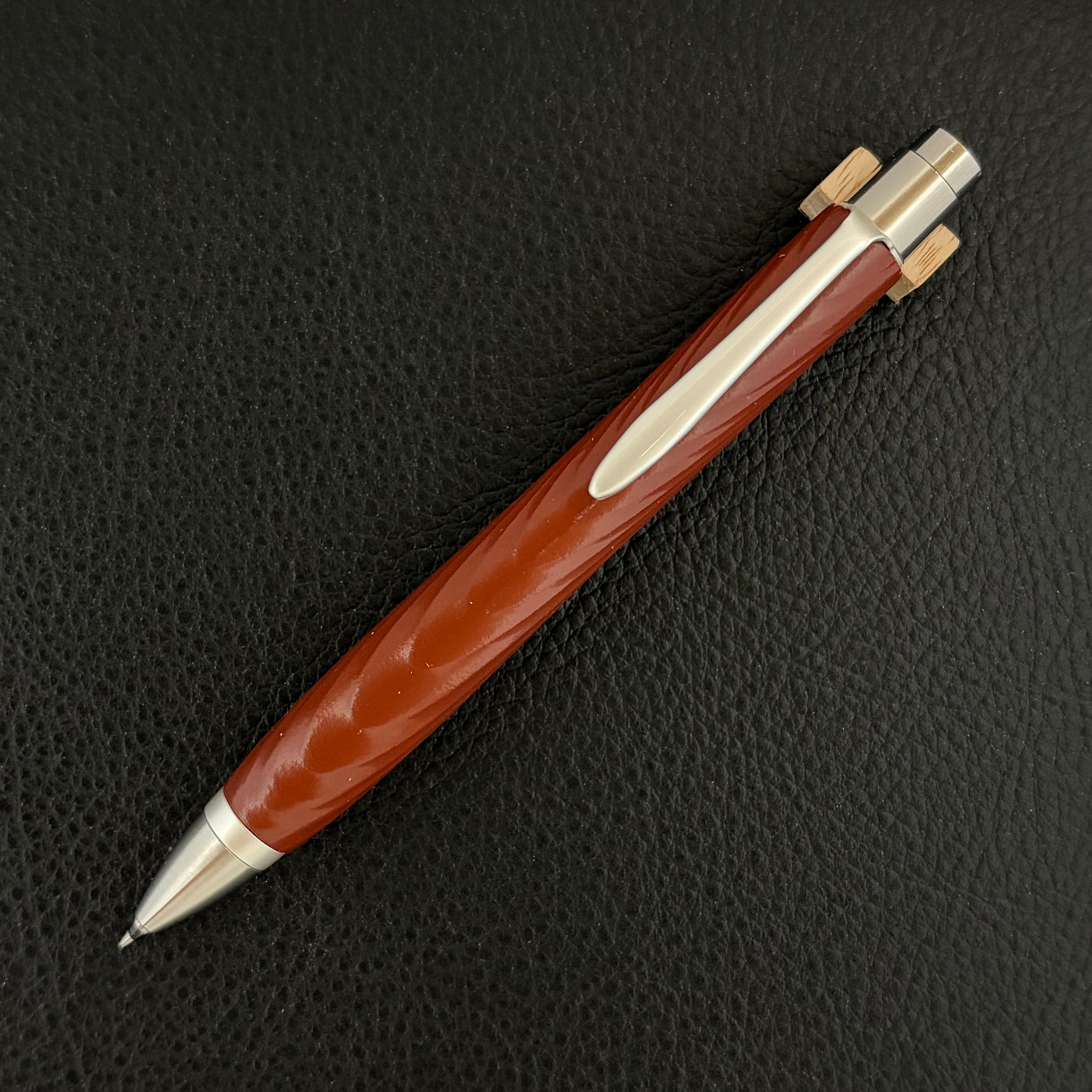 【浮造り国産吹屋弁柄・朱珠(あけしゅ)-107120526】ショートボールペン(M5手帳サイズ)