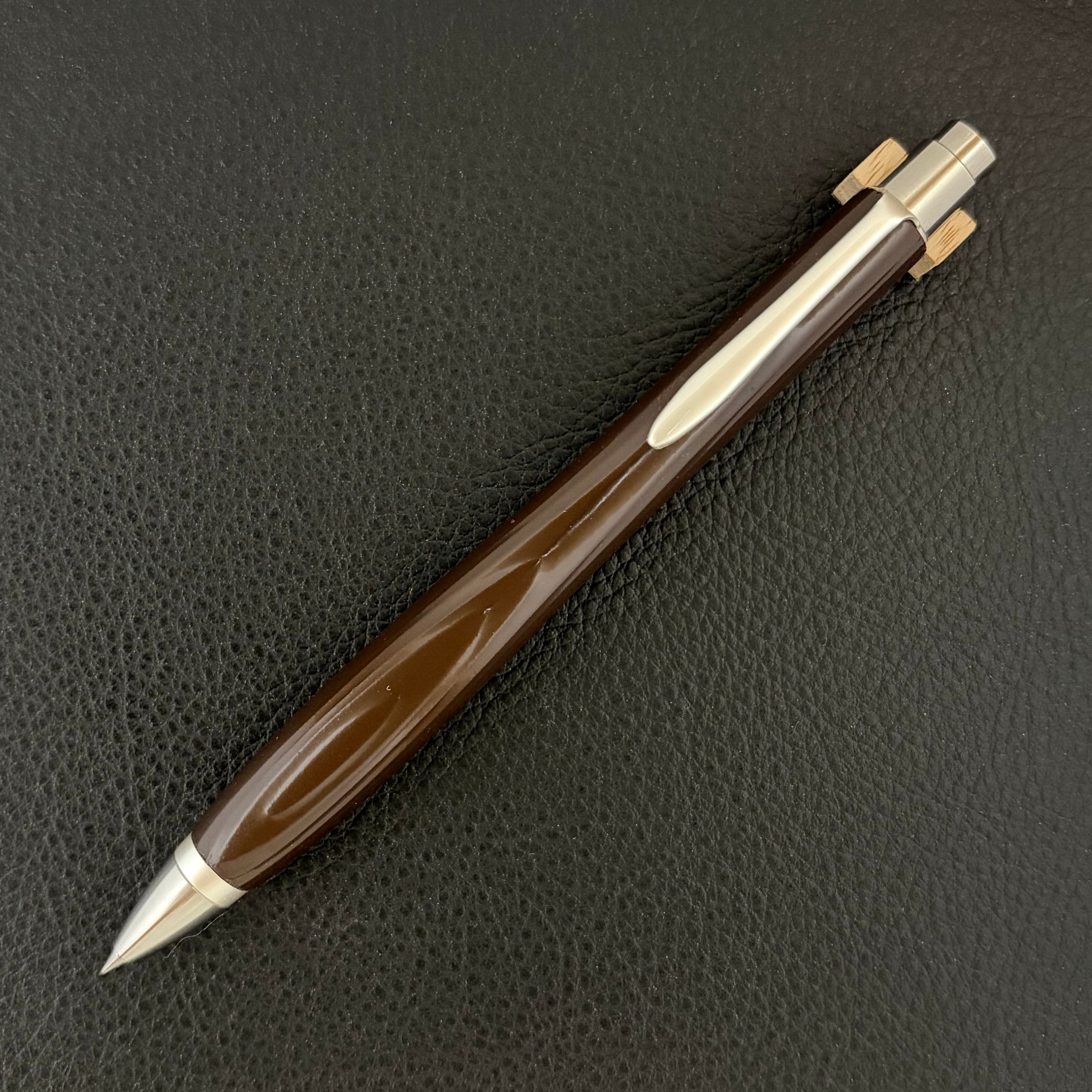 ボールペンのノックシステムは、ドイツ最高のクリックメカニズムを採用してあります。このメカニズムはユニークな機構のため、クリックしたときのカチカチ音が静かで、どんな場所でも気兼ねなく使うことができます。滑らかに動くこのプッシュ感覚を一度味わうと他には戻れなくなってしまうほどの魅力があります。 100分の1単位の加工精度で削り出されたペン先は、軸ブレも全くありません。