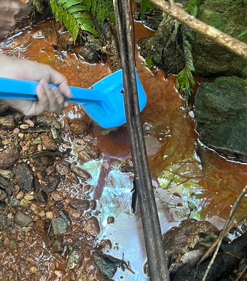 ・浮造りした杉の表面に、川から採取したバクテリアがつくる顔料「パイプ状ベンガラ」と国産漆を合わせて塗り重ねて制作しています。