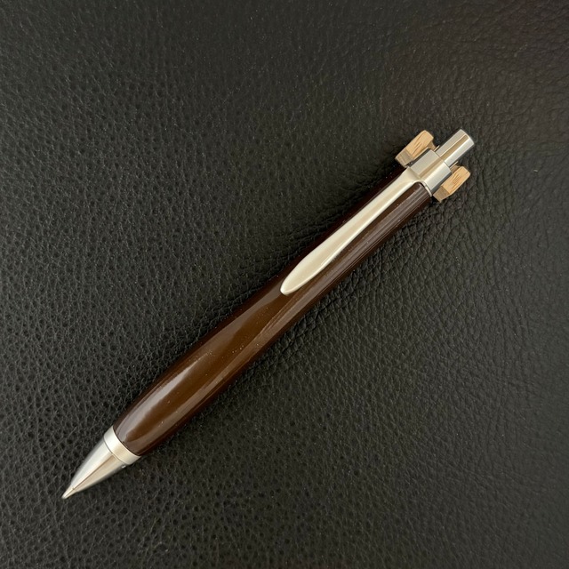 オリジナルペン金具は、大阪に在る金属精密加工会社の職人さんが100分の1㎜単位の加工精度で制作されています。口金・上スリーブ・ノックカバーは高級ステンレス削り出しです。