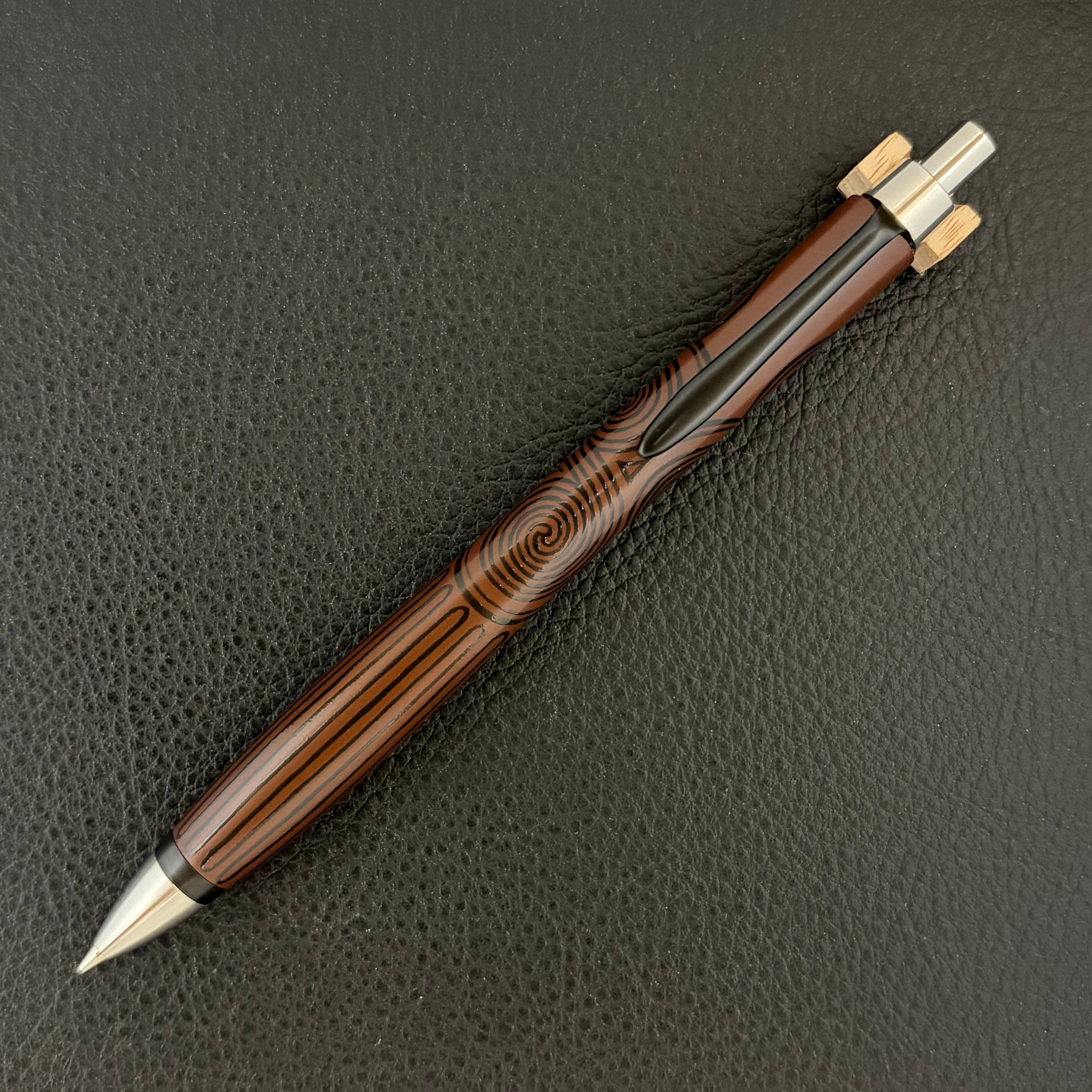 ペンシルは軸ブレが起こりにくい固定式口金を採用し、木の表情を最大限に楽しめる木軸の長さと、書き心地にこだわったバランスで金具を設計してあります。