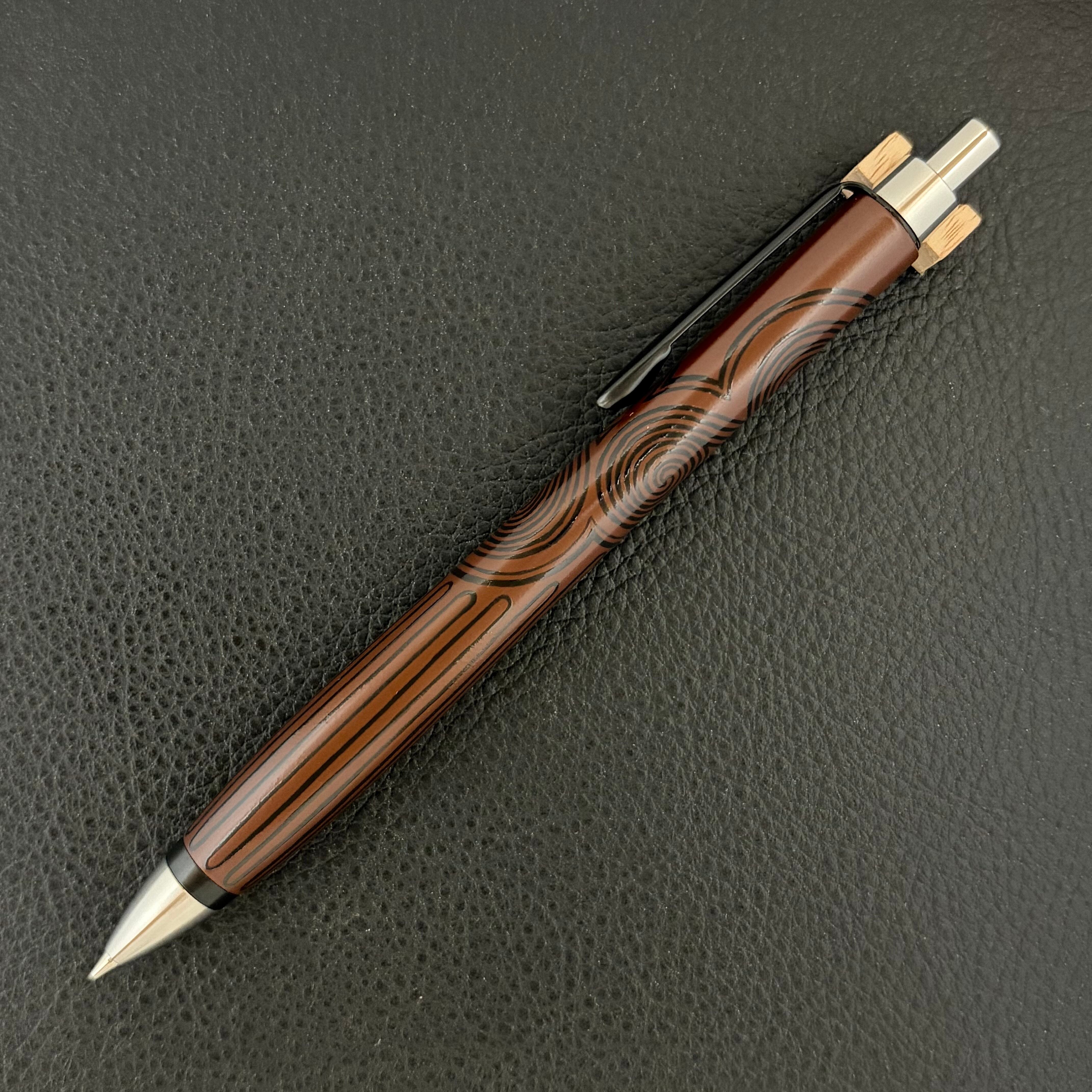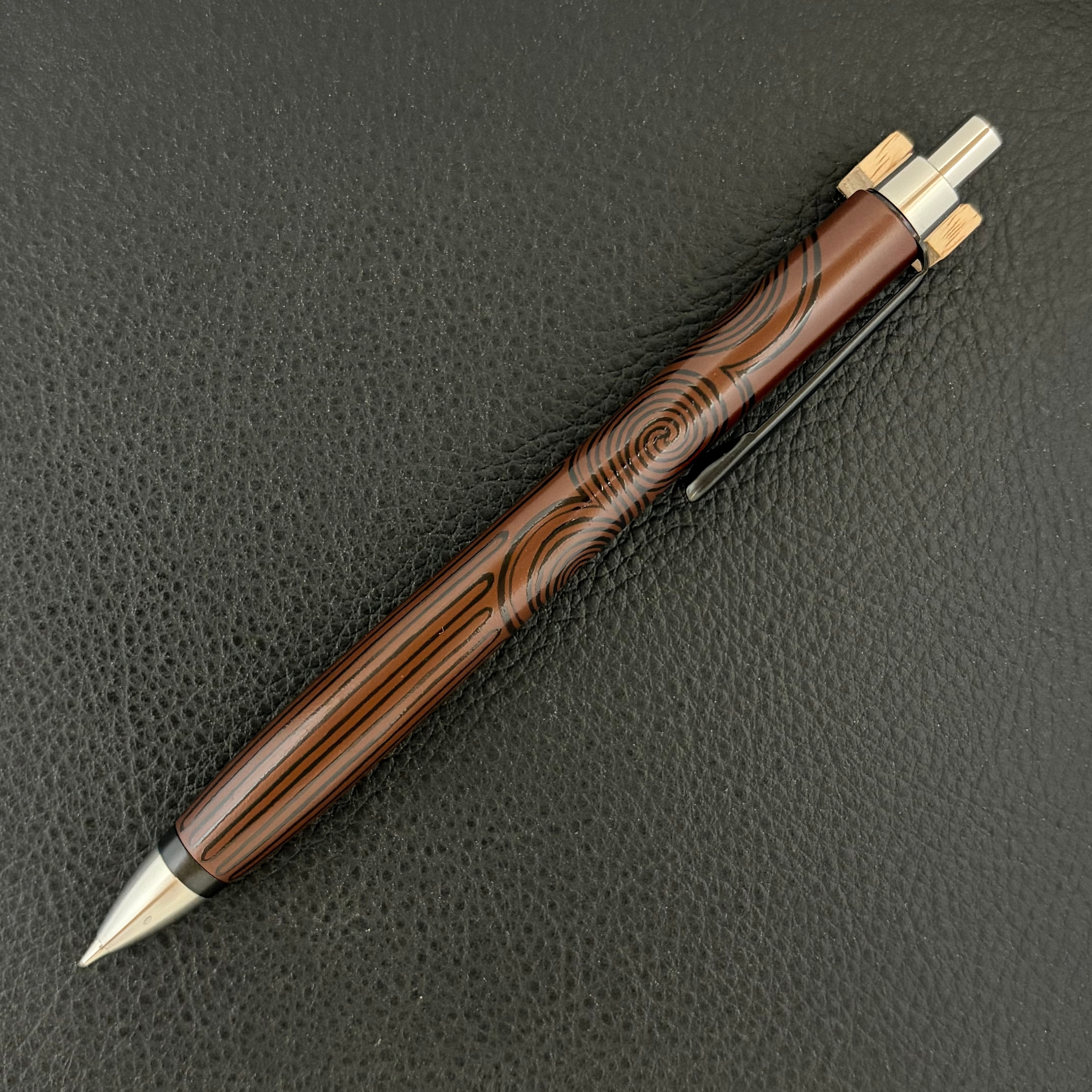 このペンに漆職人の手仕事により、縄文の黒漆を用いて丹念に縄文の文様を刻み上げました。