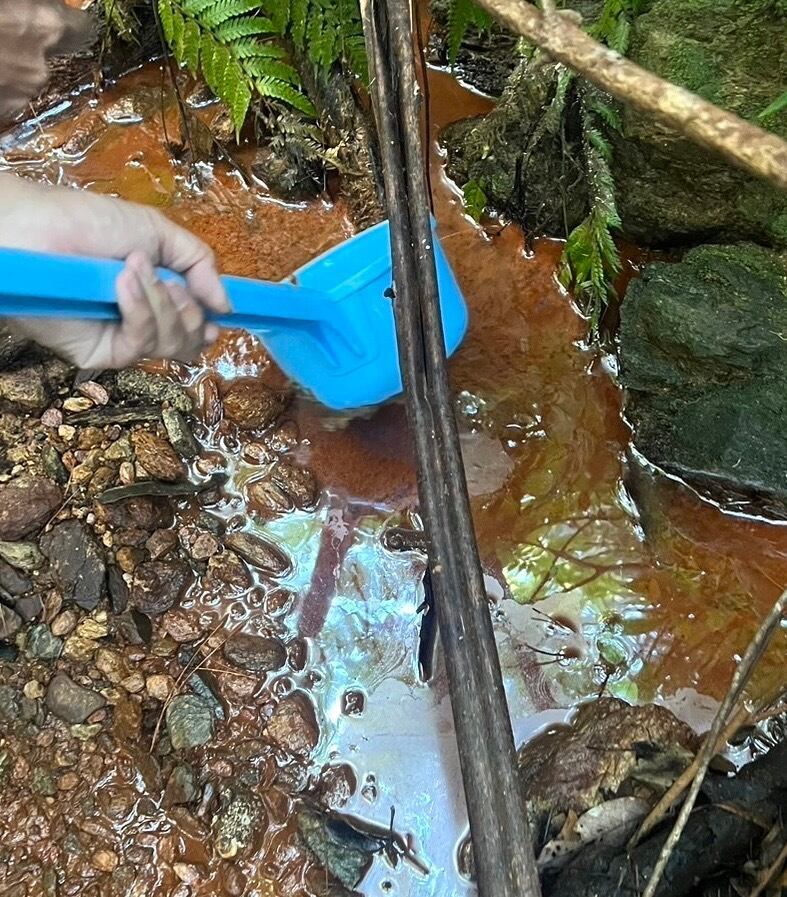 このペンに使った木は、職人が伐採し1年以上天然乾燥させた藪椿を使い、川から採取したバクテリアがつくる顔料「パイプ状ベンガラ」と国産漆を合わせて制作しています。