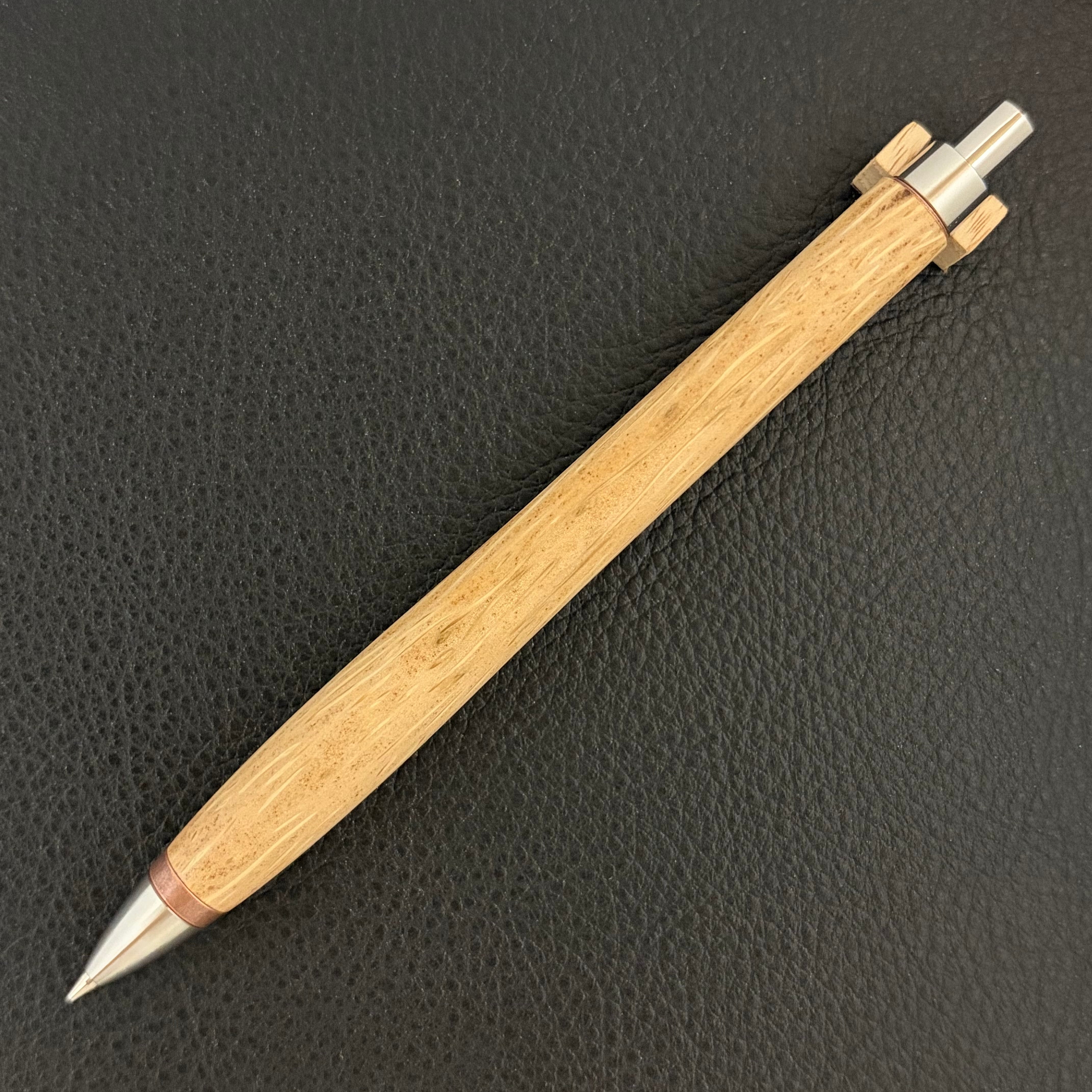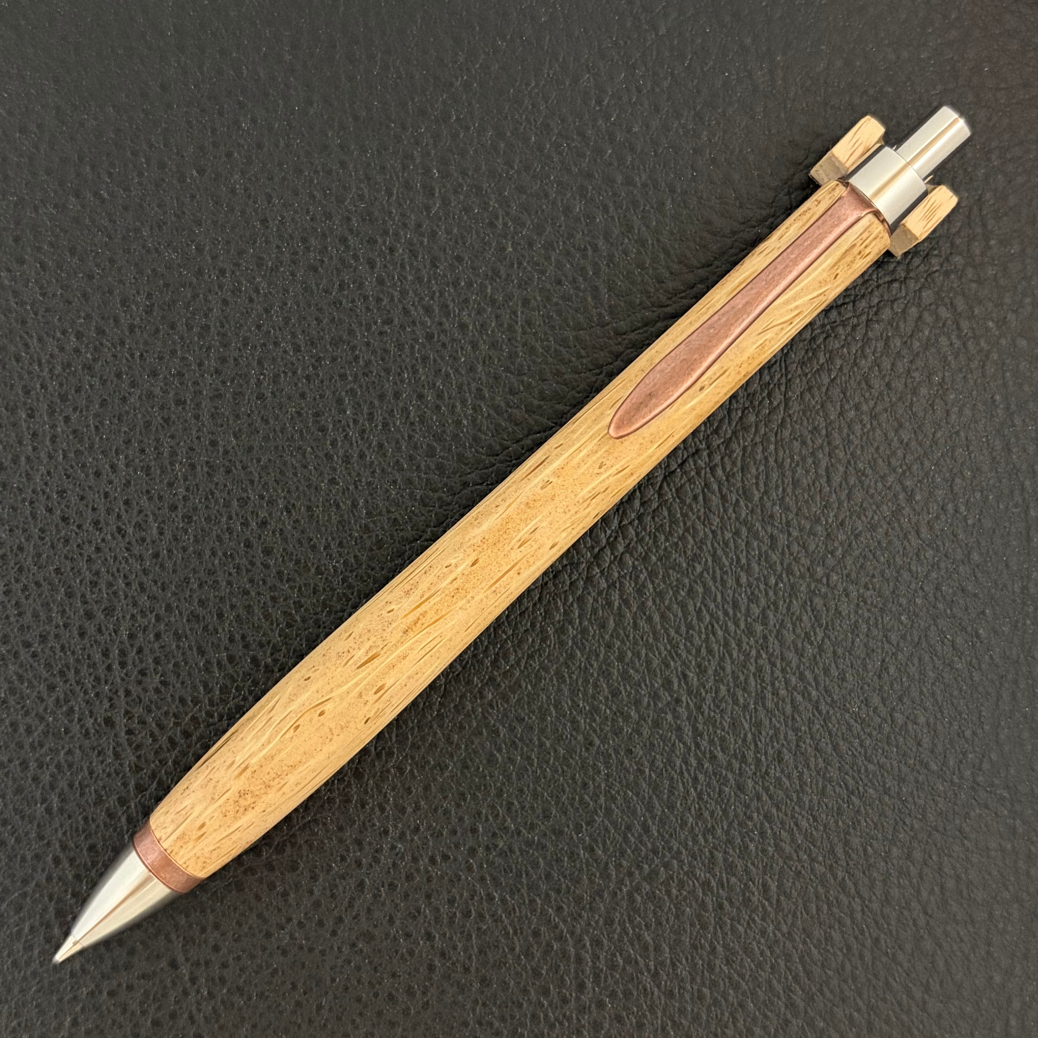 ペンシルは軸ブレが起こりにくい固定式口金を採用し、木の表情を最大限に楽しめる木軸の長さと、書き心地にこだわったバランスで金具を設計してあります。