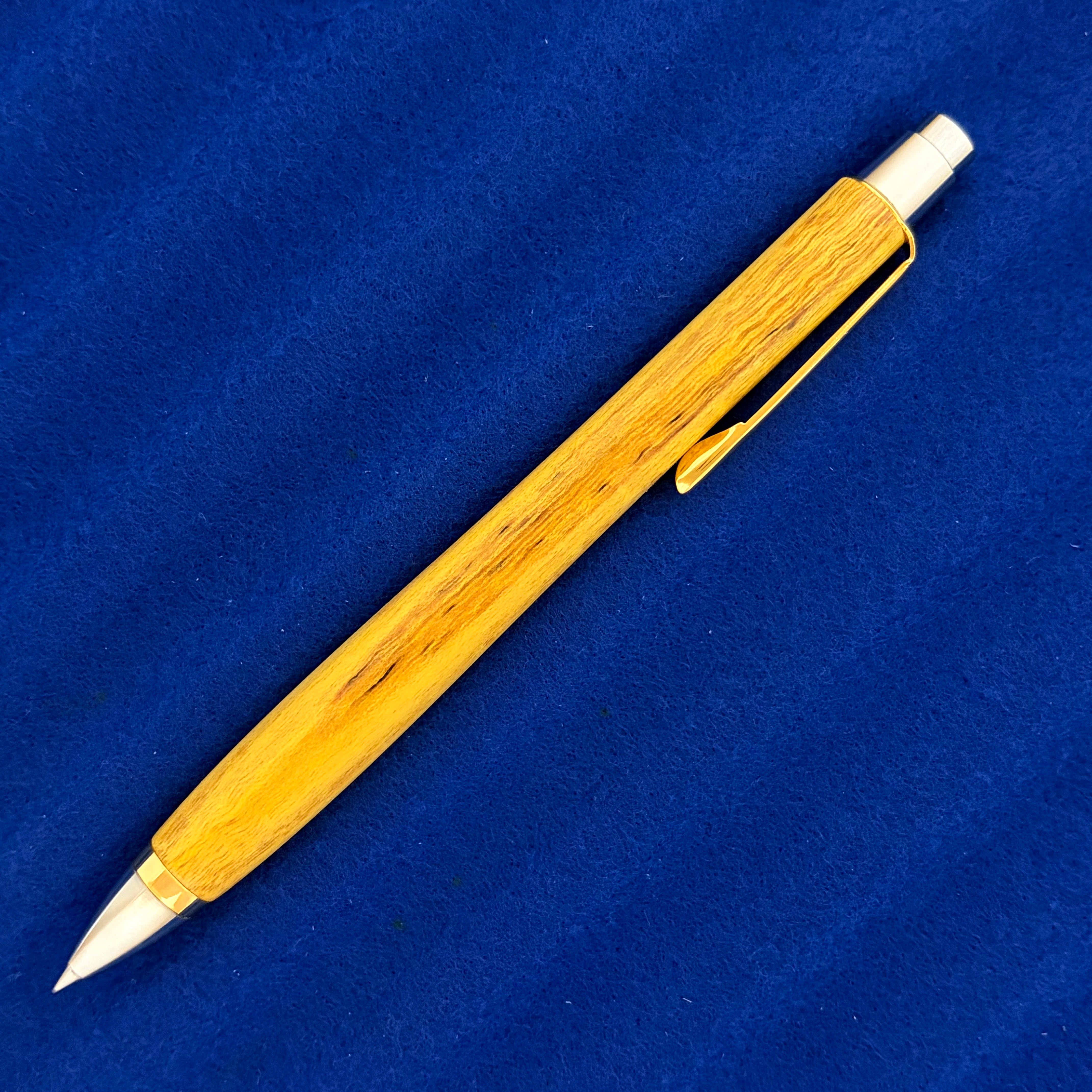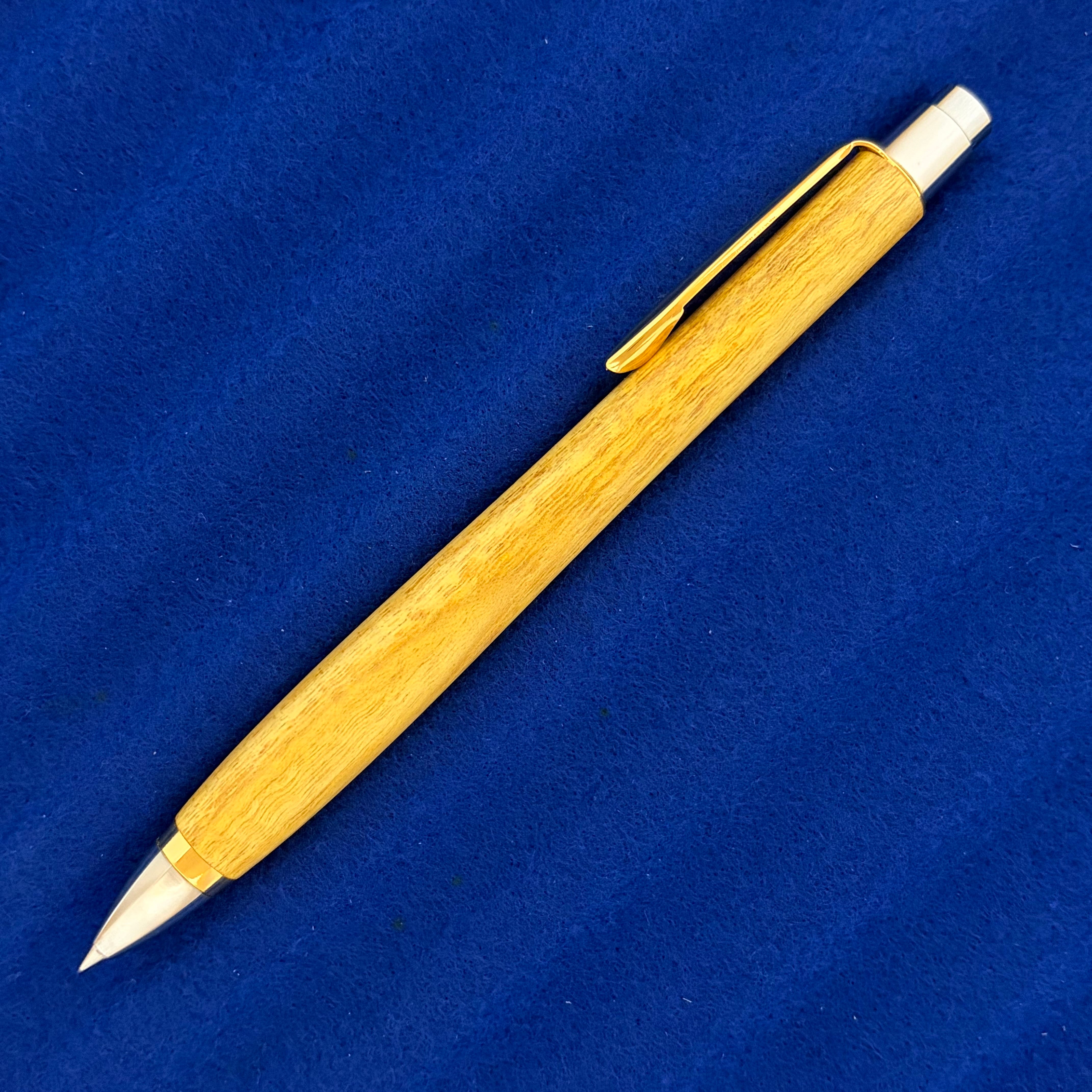 ボールペンのノックシステムは、ドイツ最高のクリックメカニズムを採用してあります。このメカニズムはユニークな機構のため、クリックしたときのカチカチ音が静かで、どんな場所でも気兼ねなく使うことができます。滑らかに動くこのプッシュ感覚を一度味わうと他には戻れなくなってしまうほどの魅力があります。 100分の1単位の加工精度で削り出されたペン先は、軸ブレも全くありません。