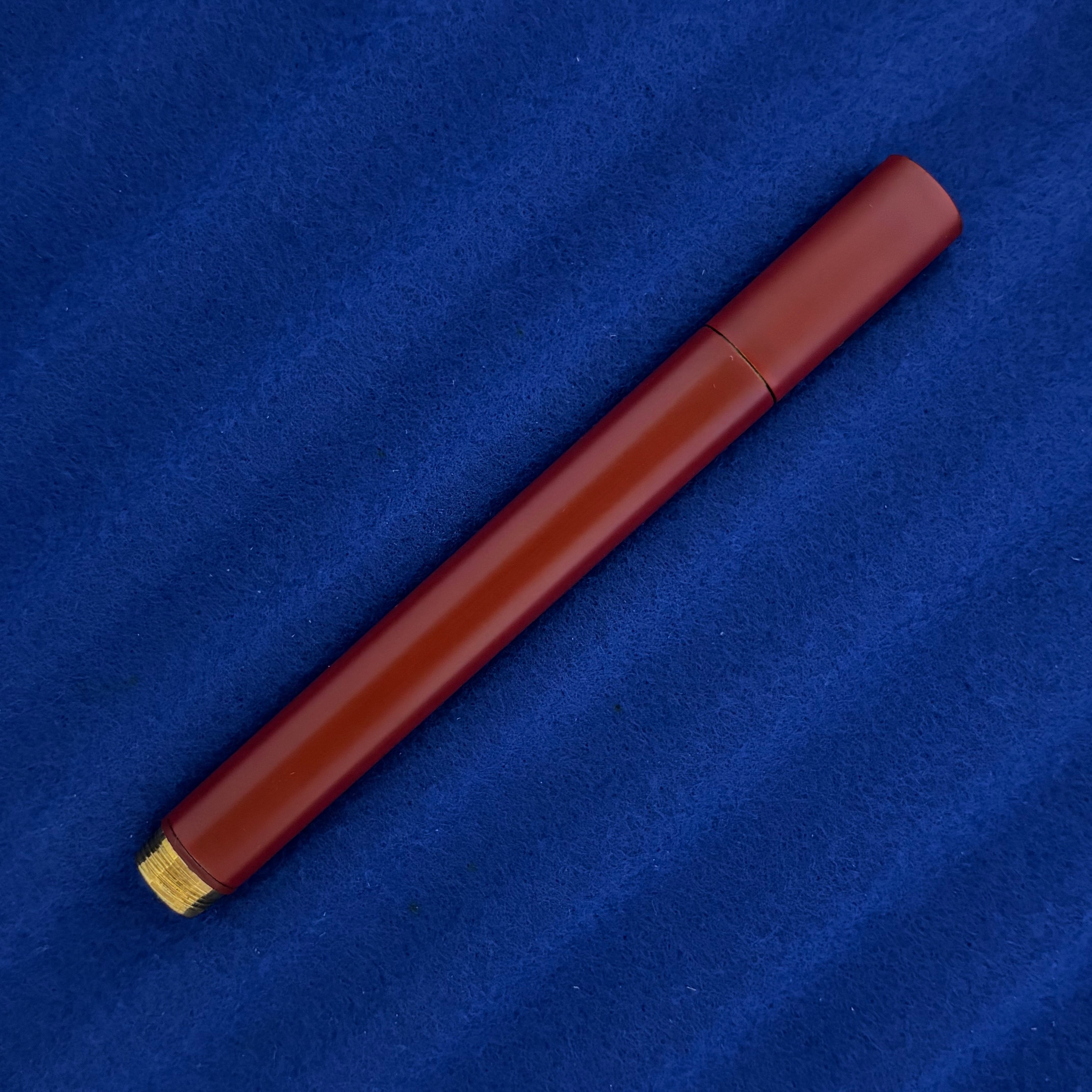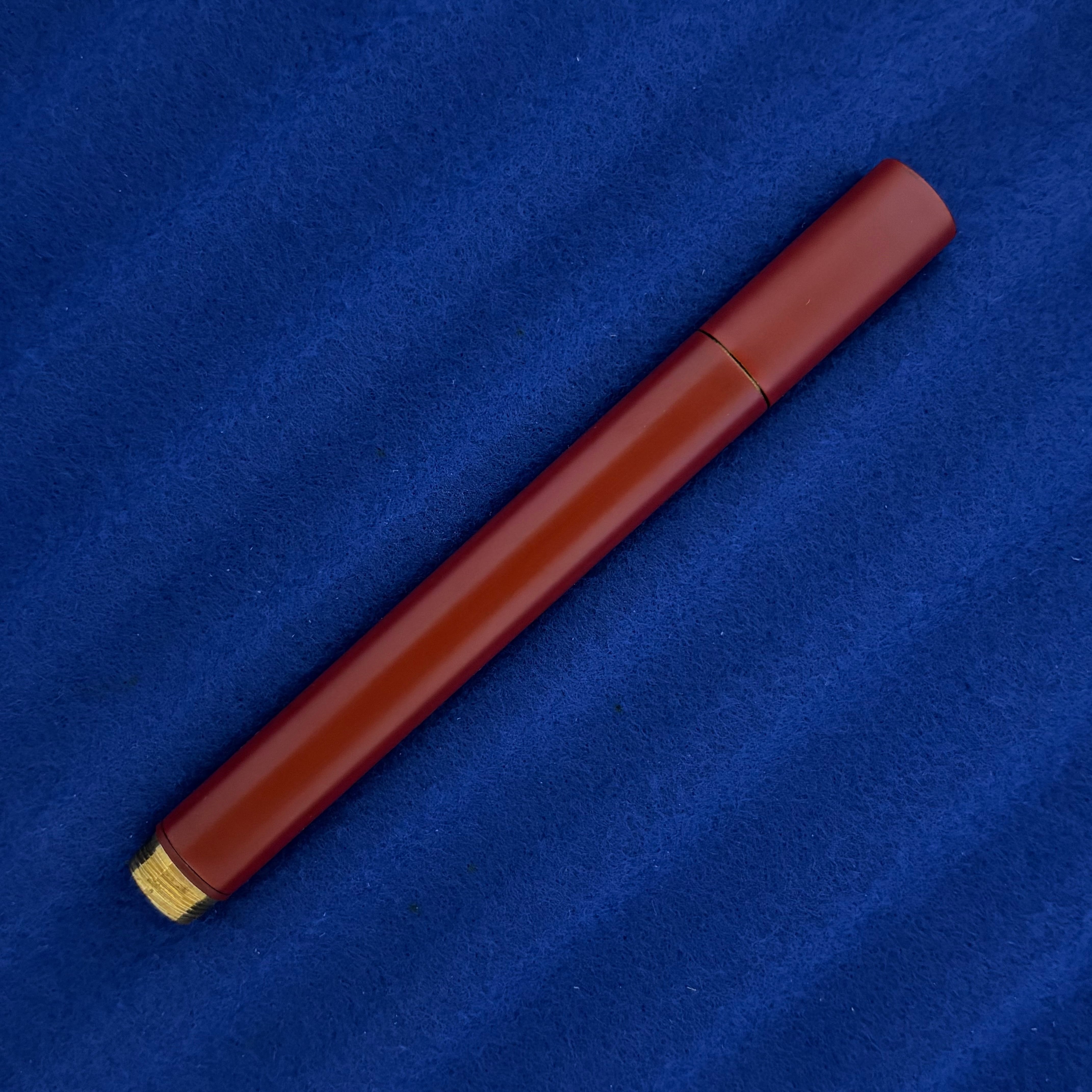 ・金属と漆の組合せに初挑戦したペンです。真鍮を加工した金属ペンに、古代から施朱の風習や土器、漆器の赤色顔料に用いられてきた水銀朱(本朱)を塗り重ねました。