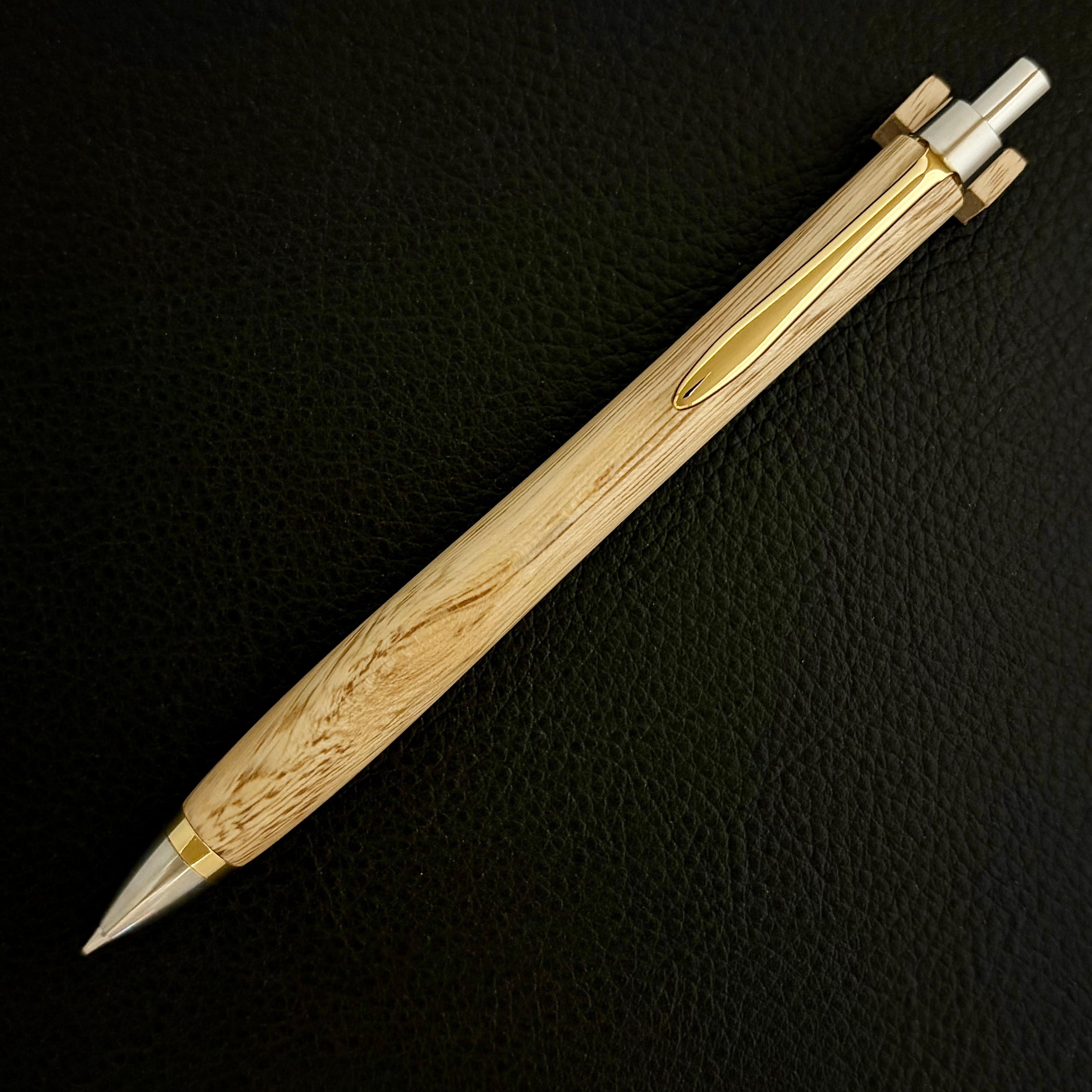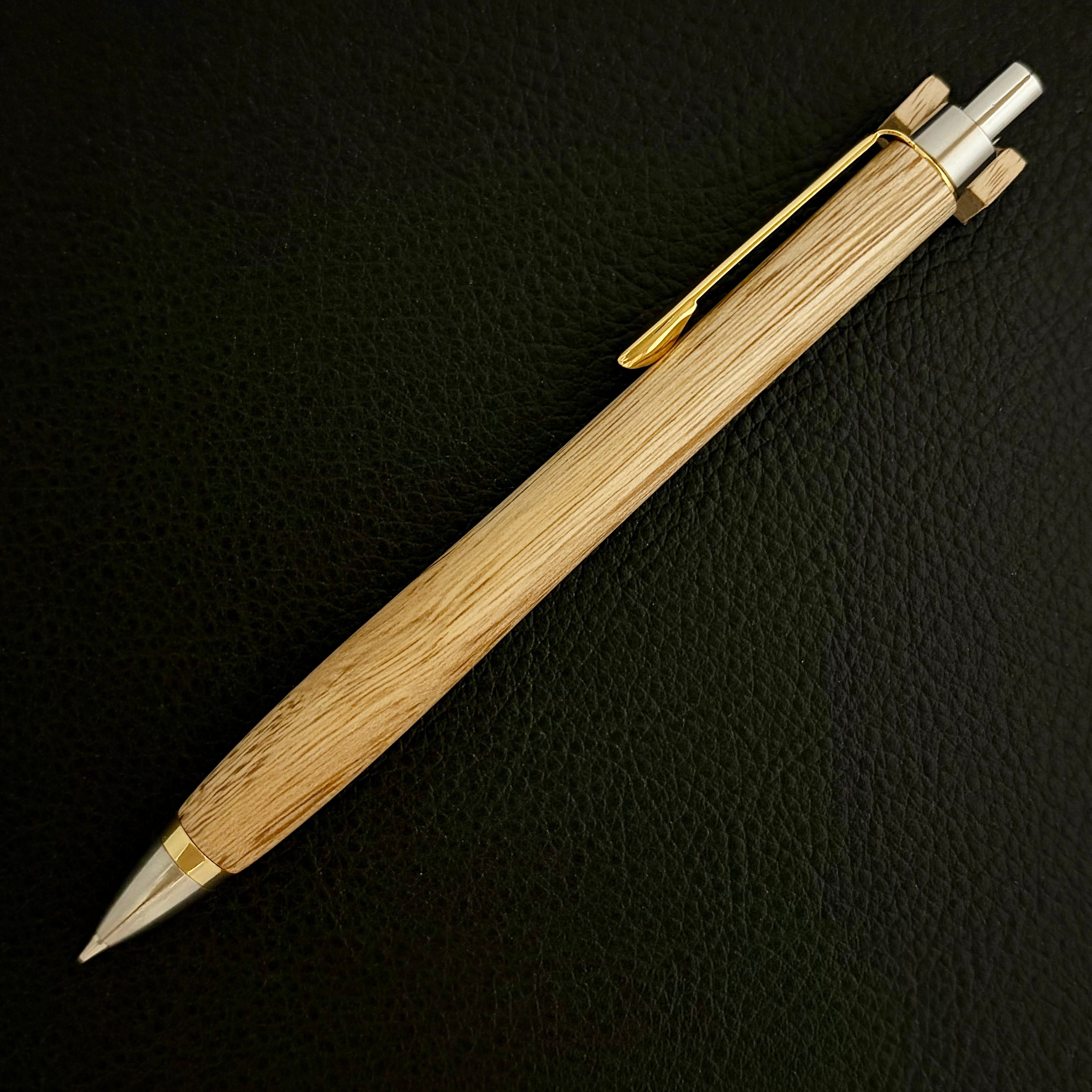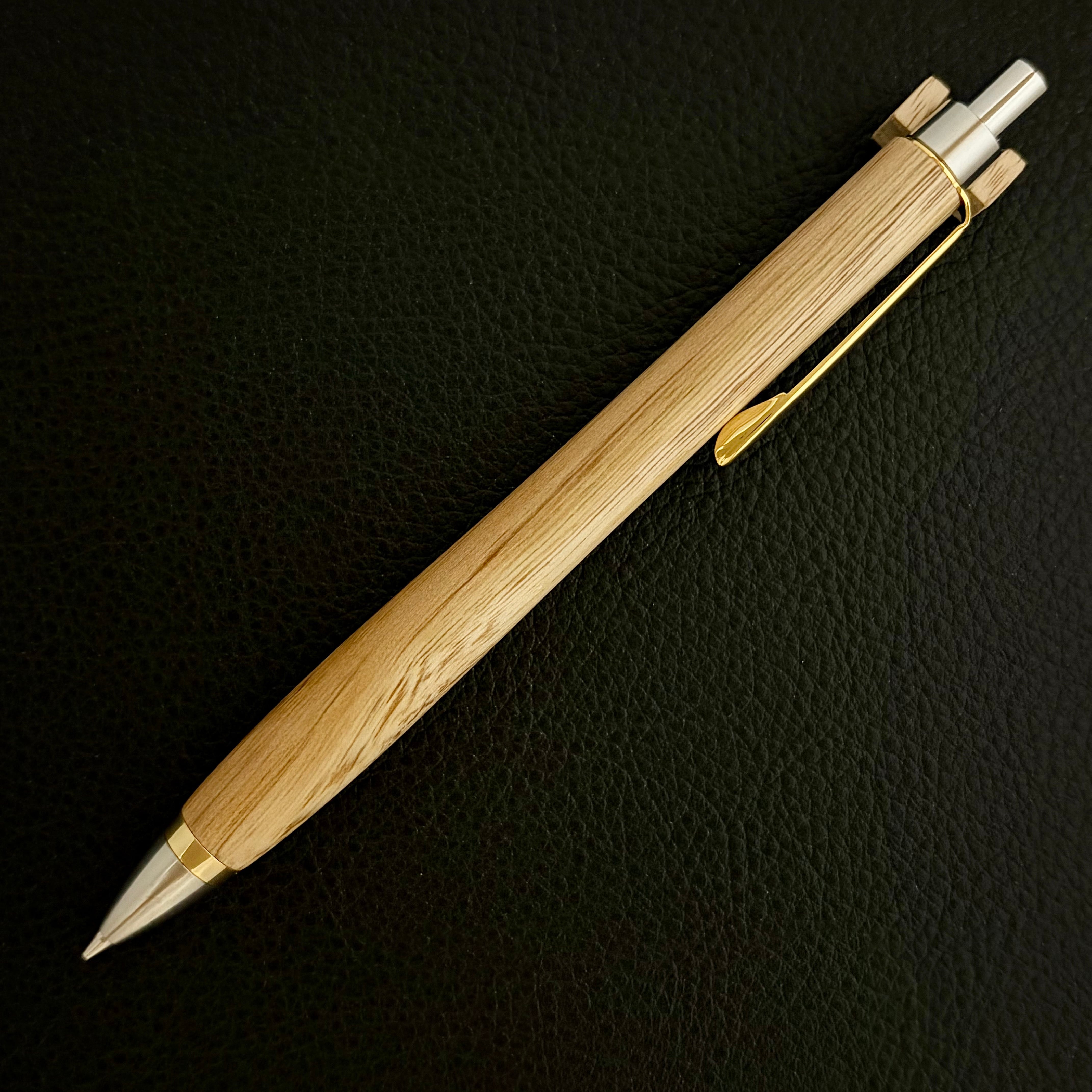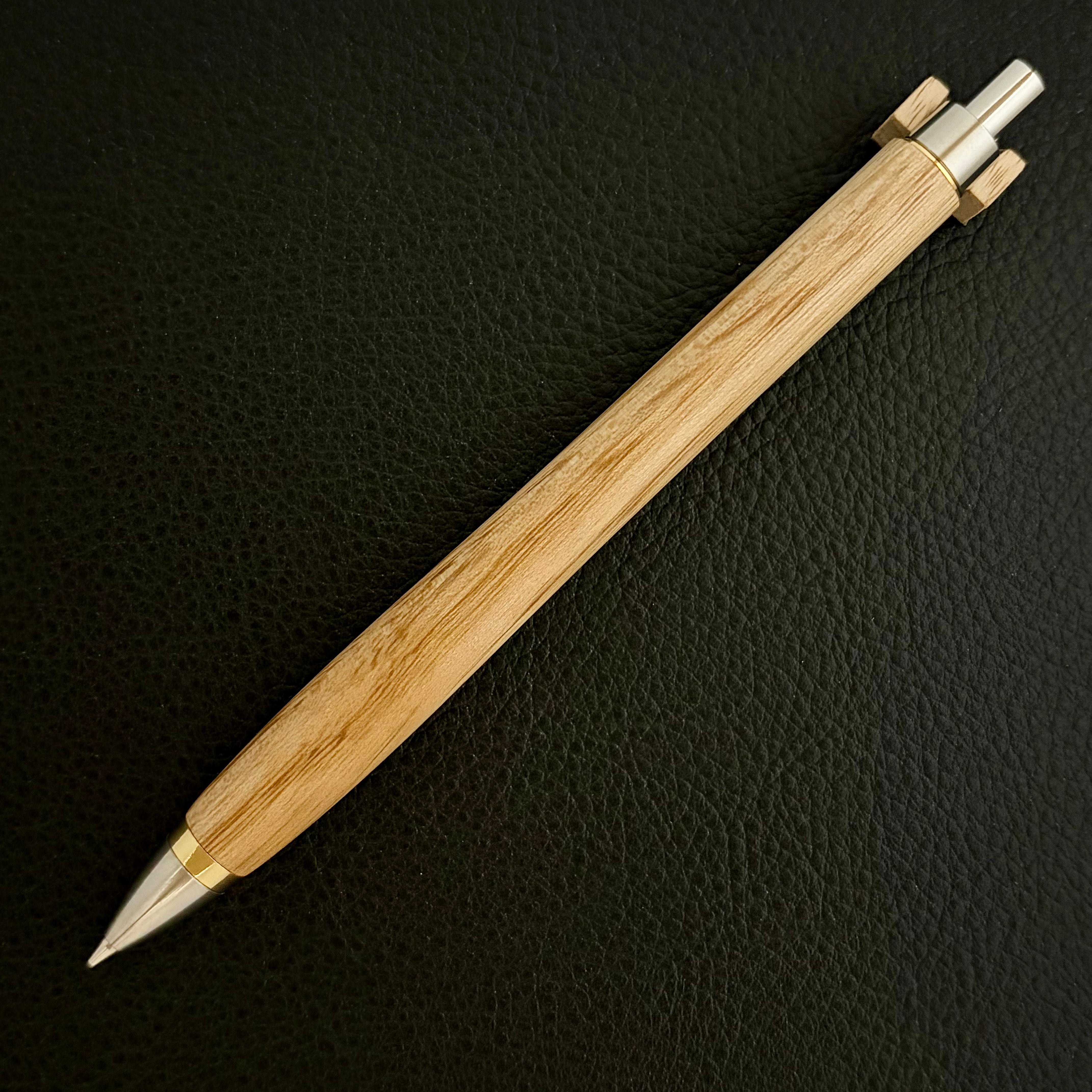 ペンシルは軸ブレが起こりにくい固定式口金を採用し、木の表情を最大限に楽しめる木軸の長さと、書き心地にこだわったバランスで金具を設計してあります。