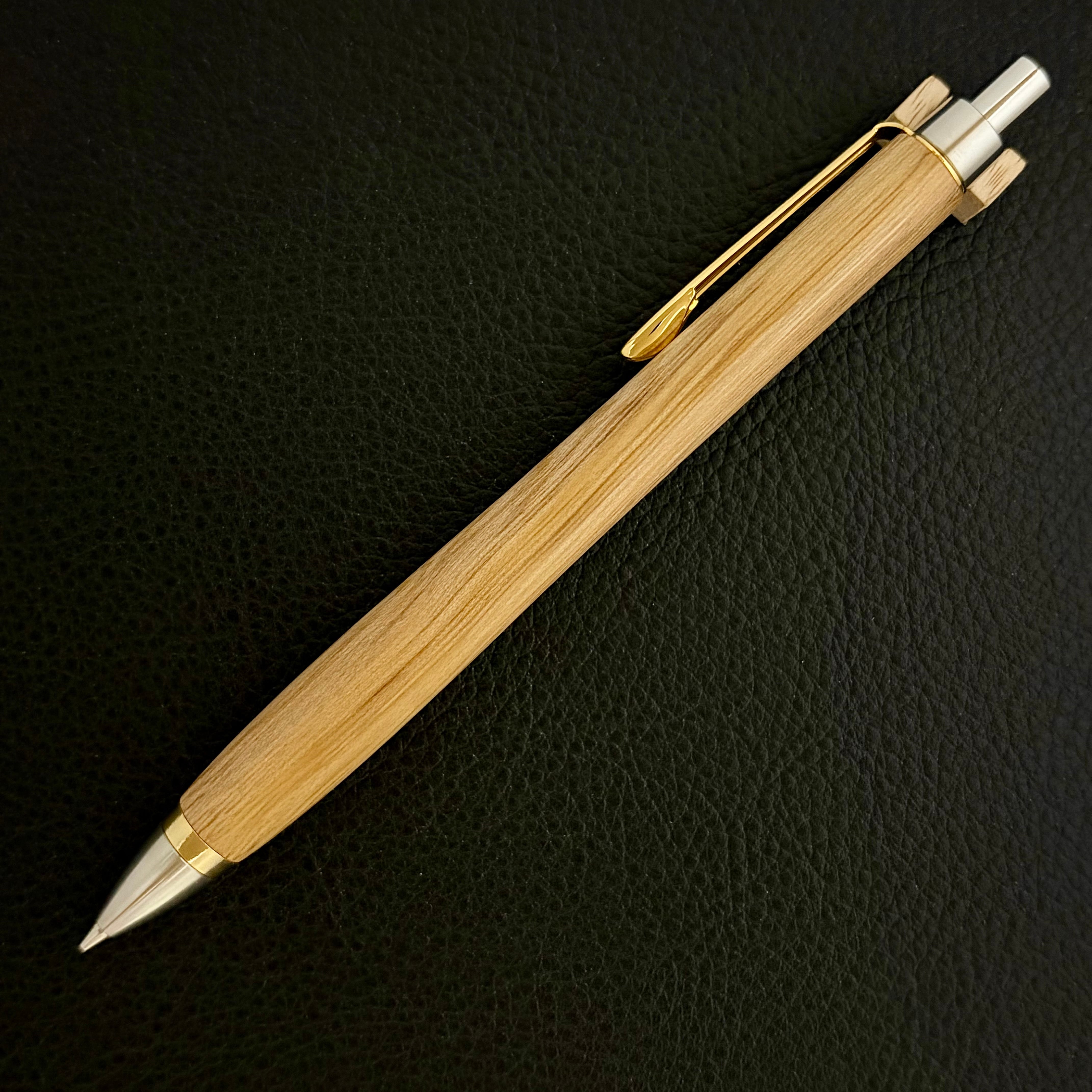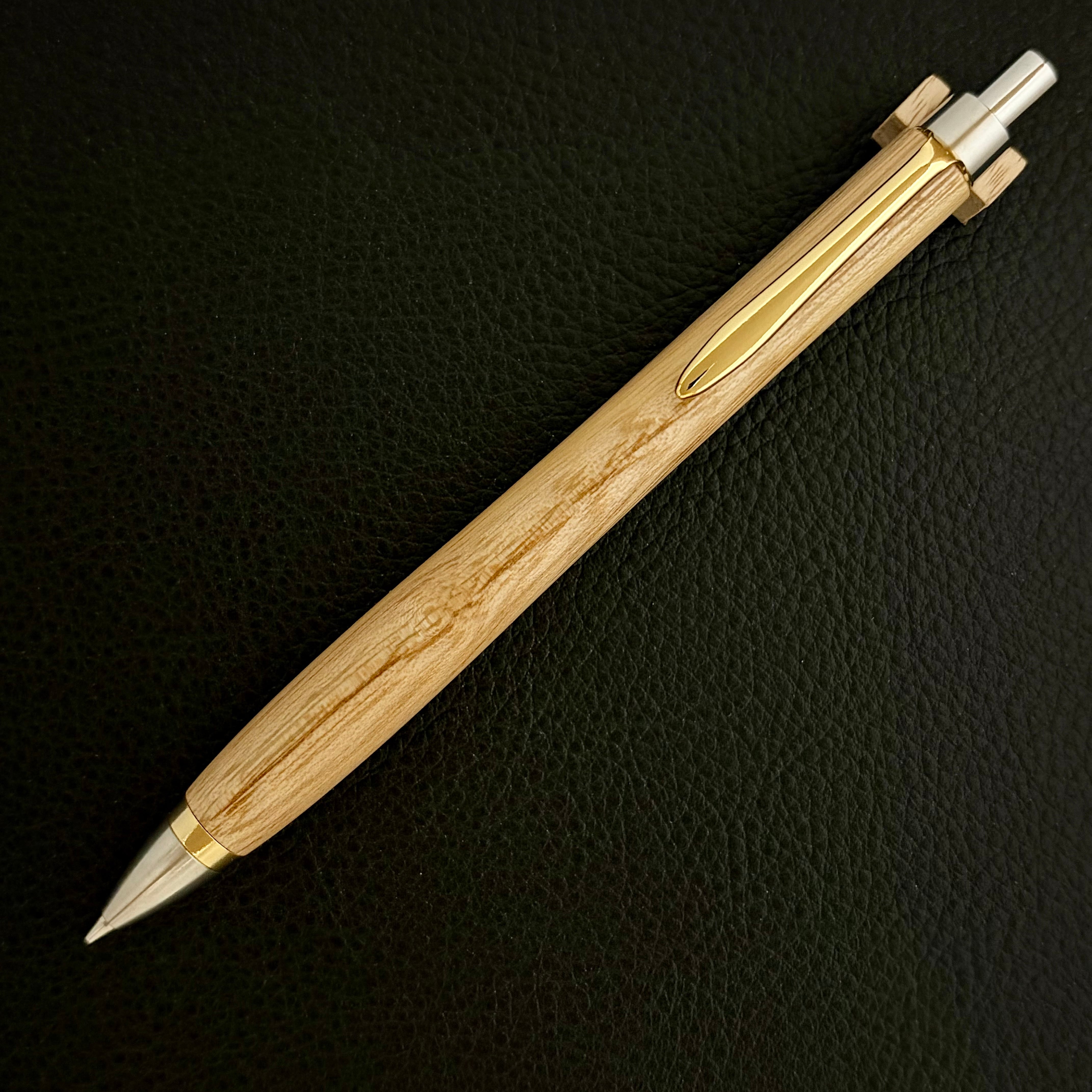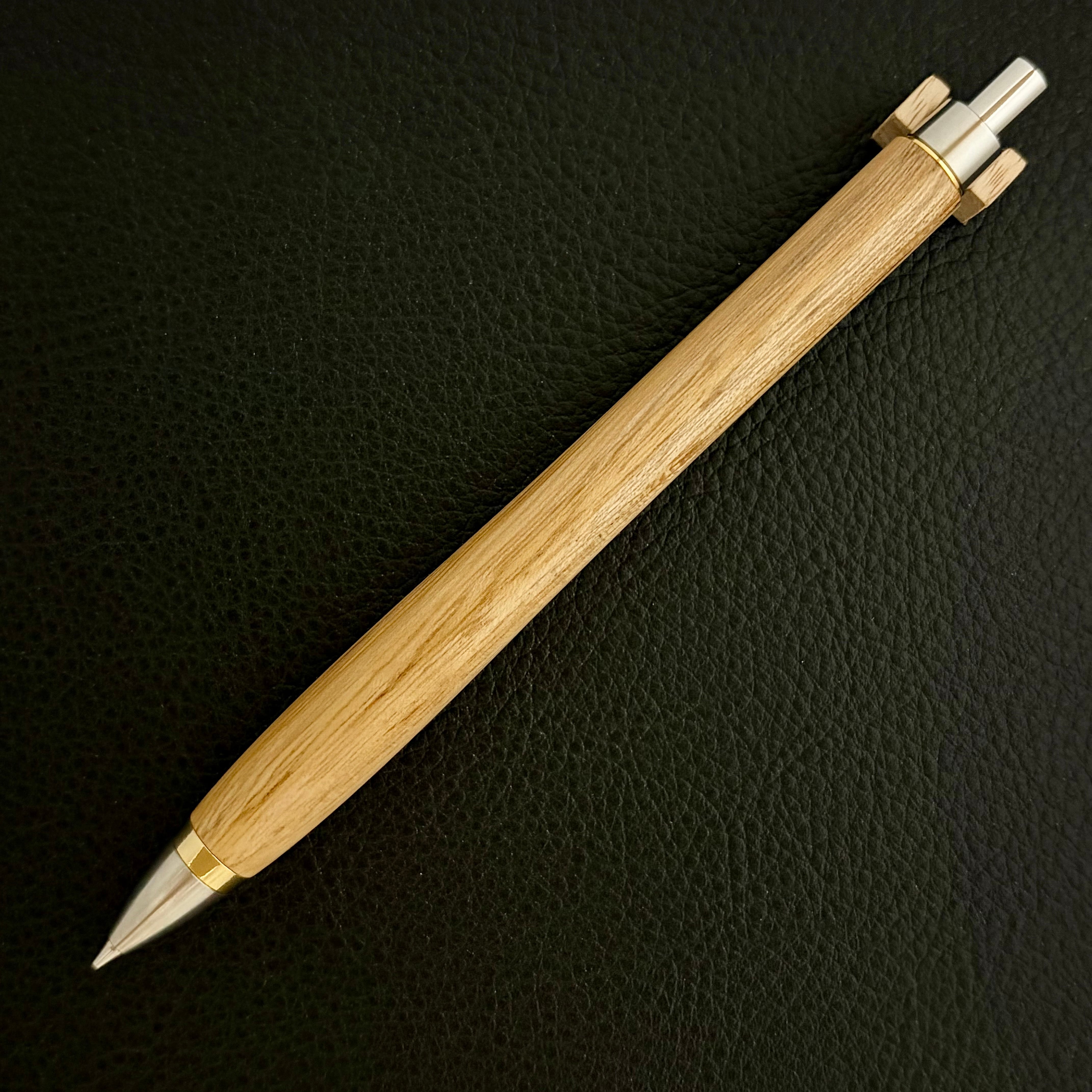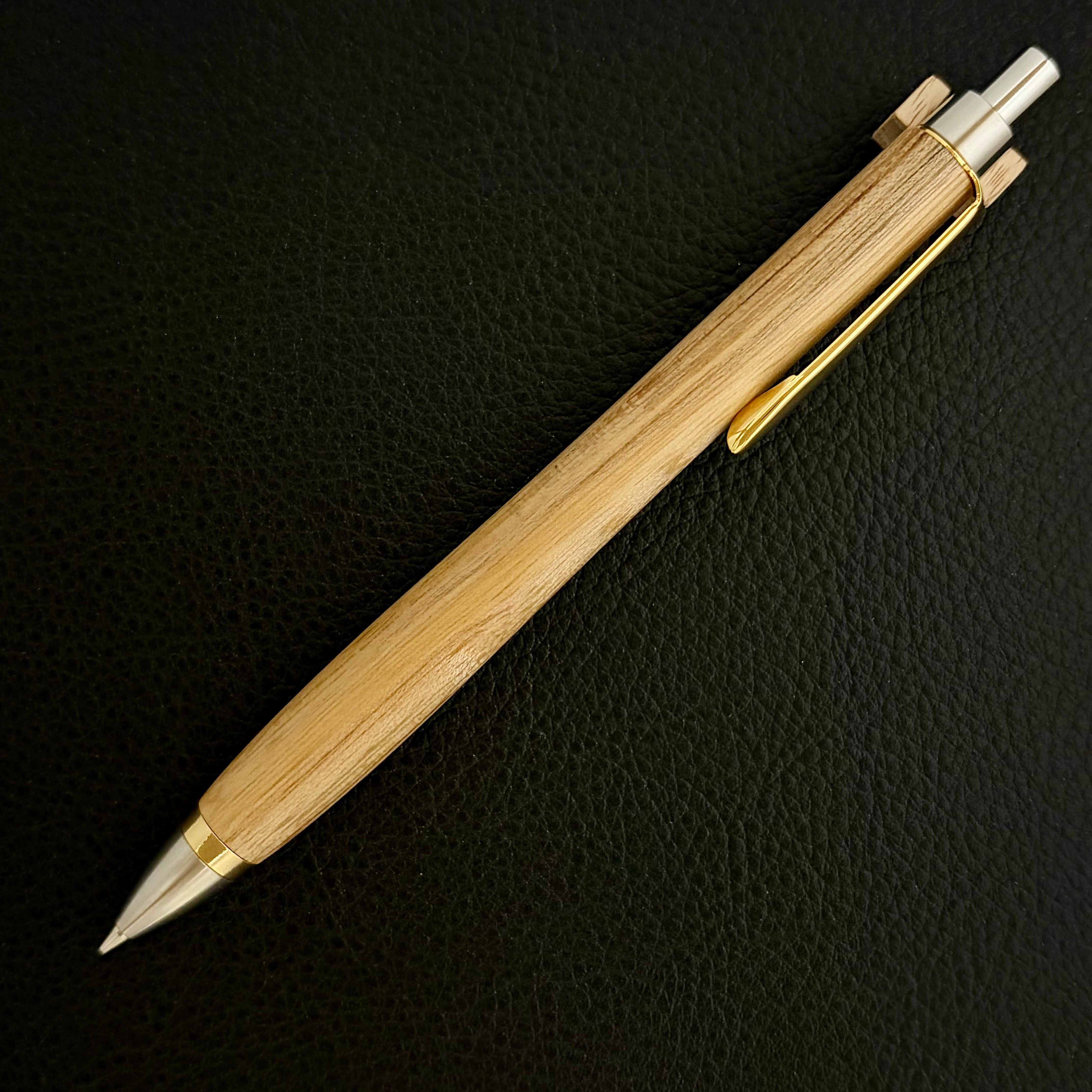 ペンシルは軸ブレが起こりにくい固定式口金を採用し、木の表情を最大限に楽しめる木軸の長さと、書き心地にこだわったバランスで金具を設計してあります。