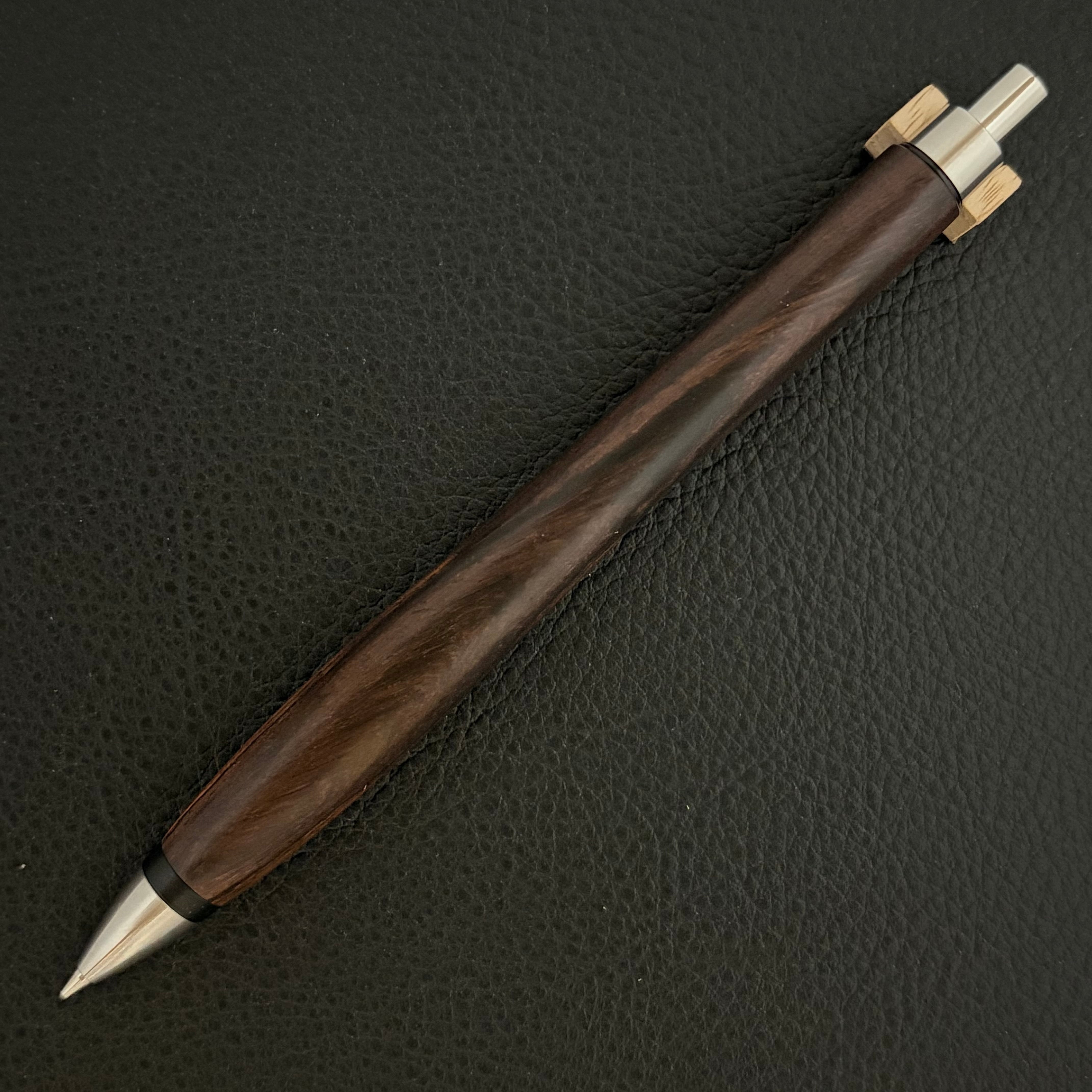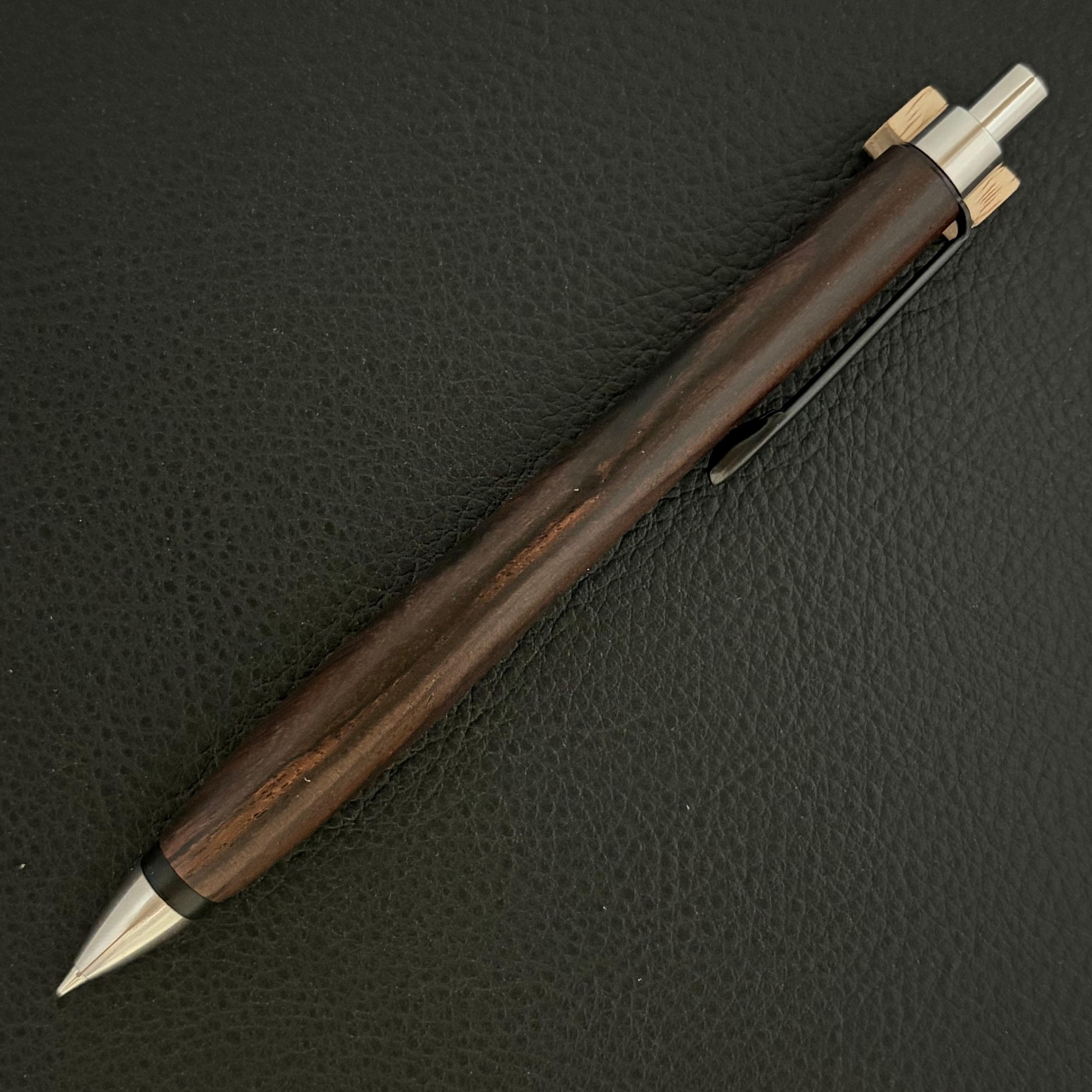 ペンシルは軸ブレが起こりにくい固定式口金を採用し、木の表情を最大限に楽しめる木軸の長さと、書き心地にこだわったバランスで金具を設計してあります。