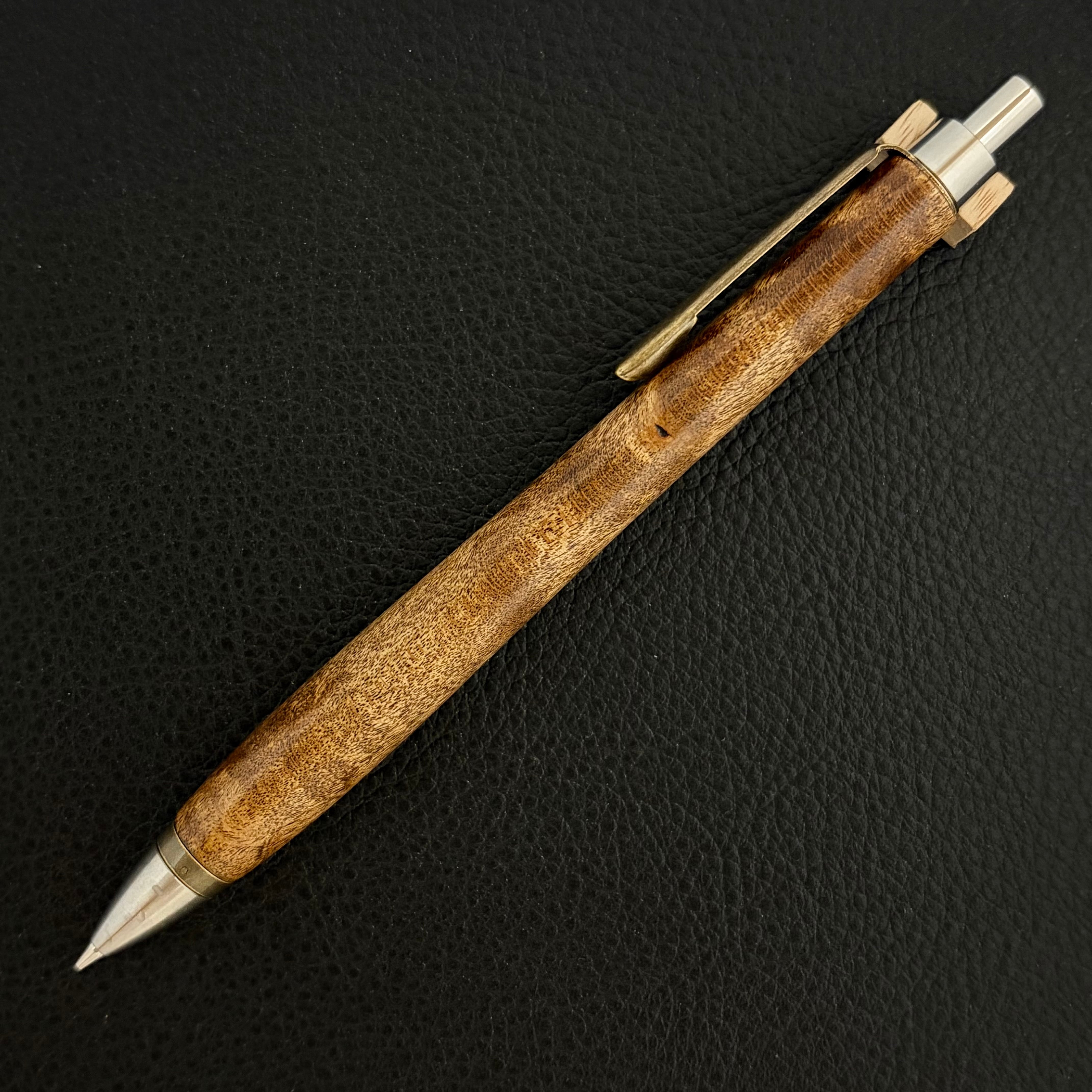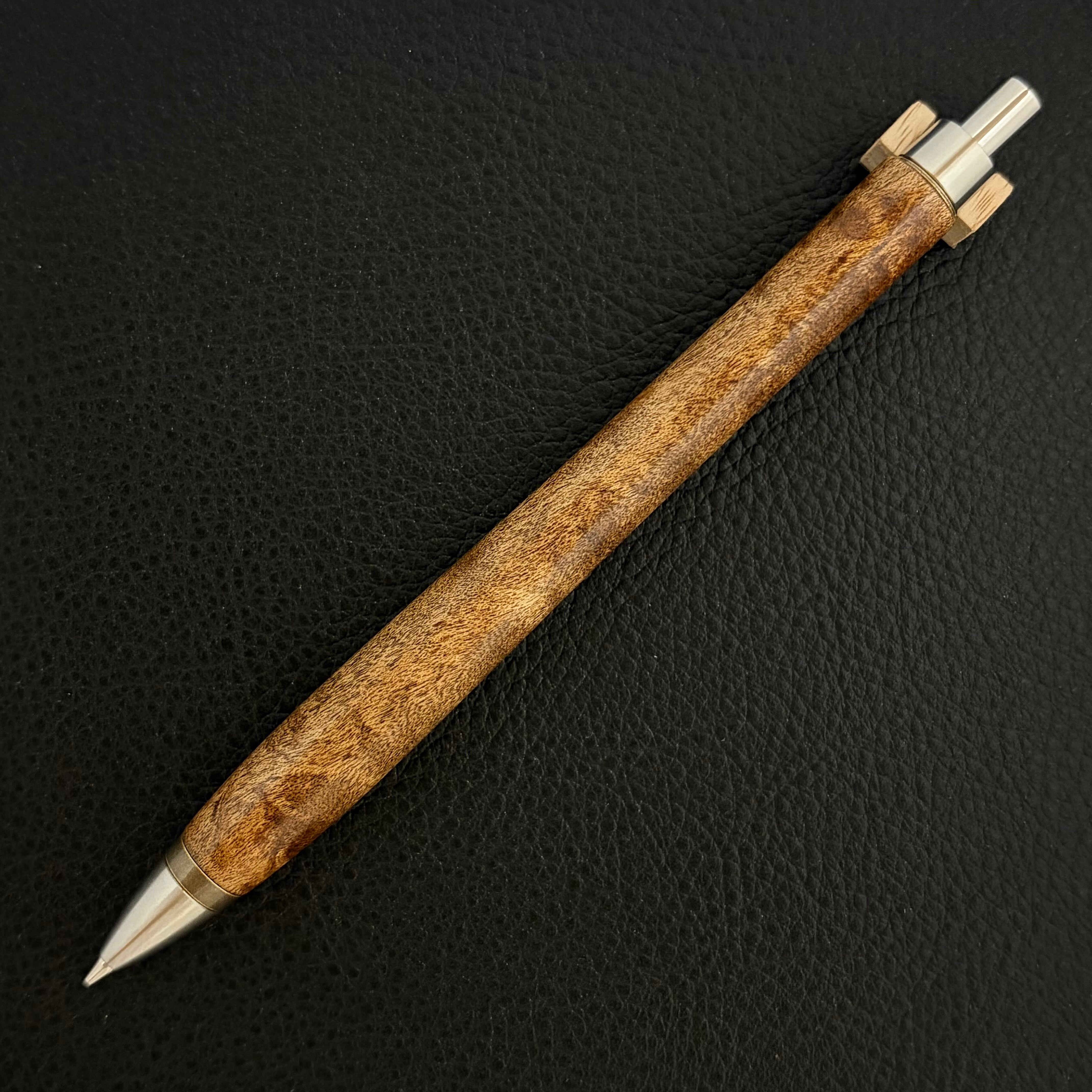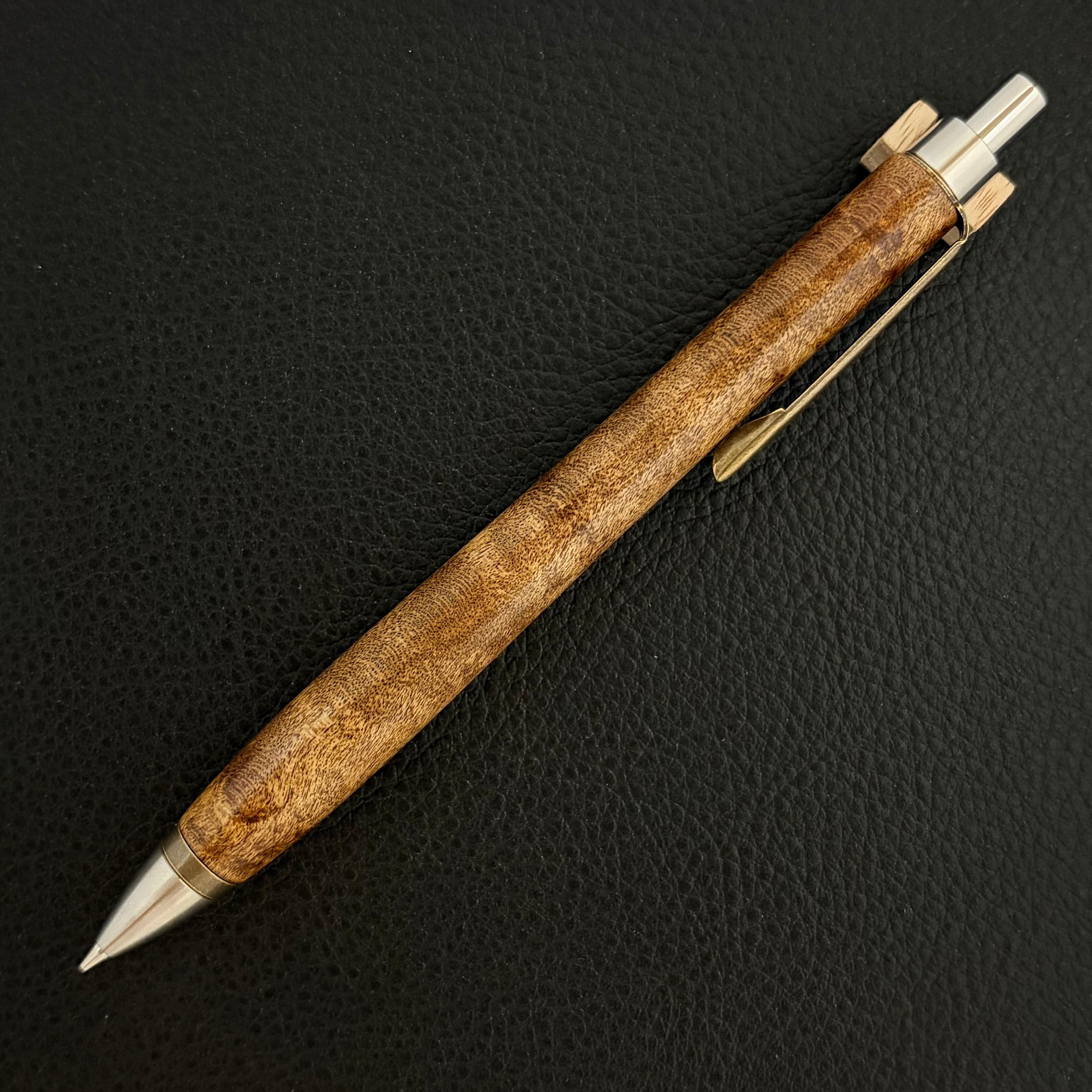 ペンシルは軸ブレが起こりにくい固定式口金を採用し、木の表情を最大限に楽しめる木軸の長さと、書き心地にこだわったバランスで金具を設計してあります。