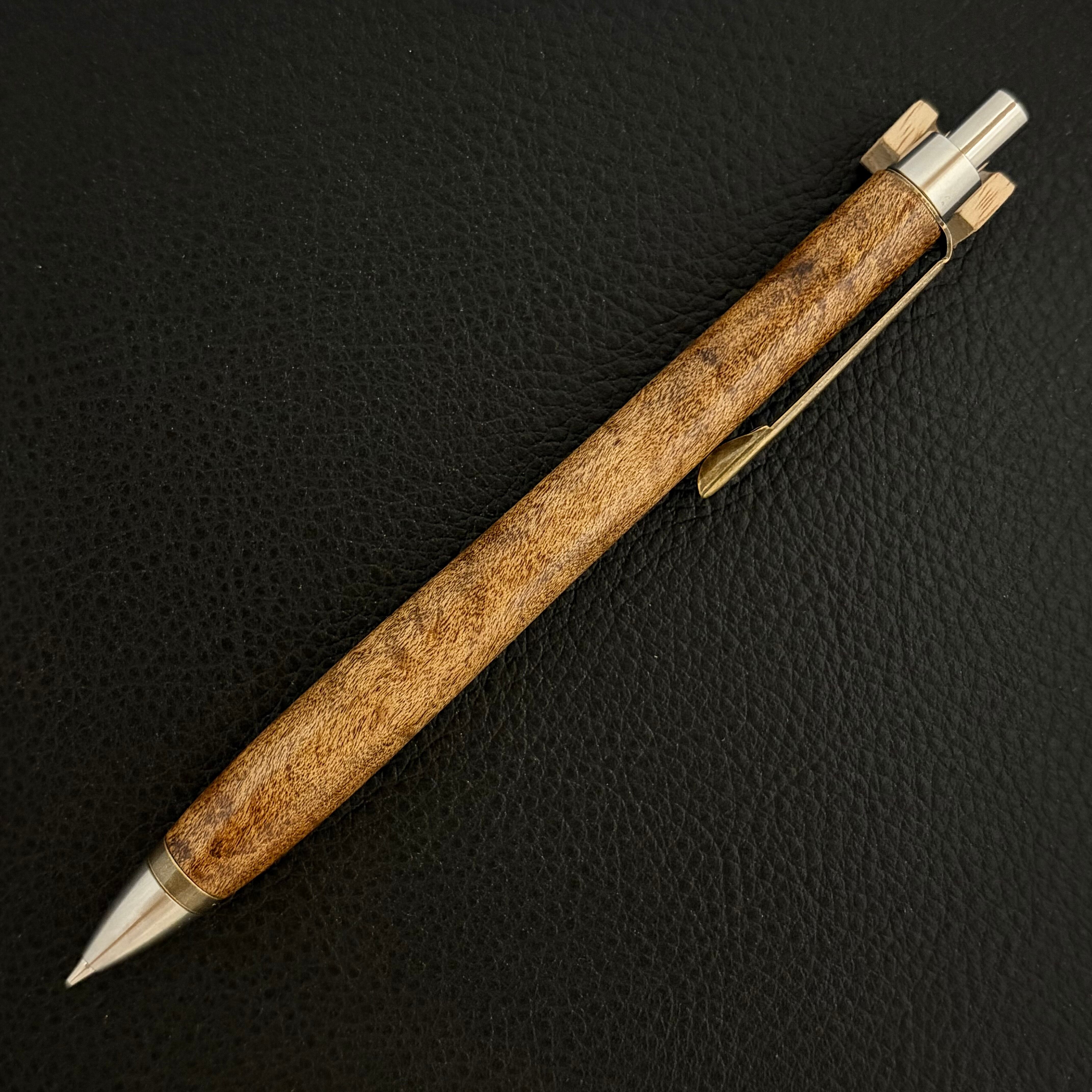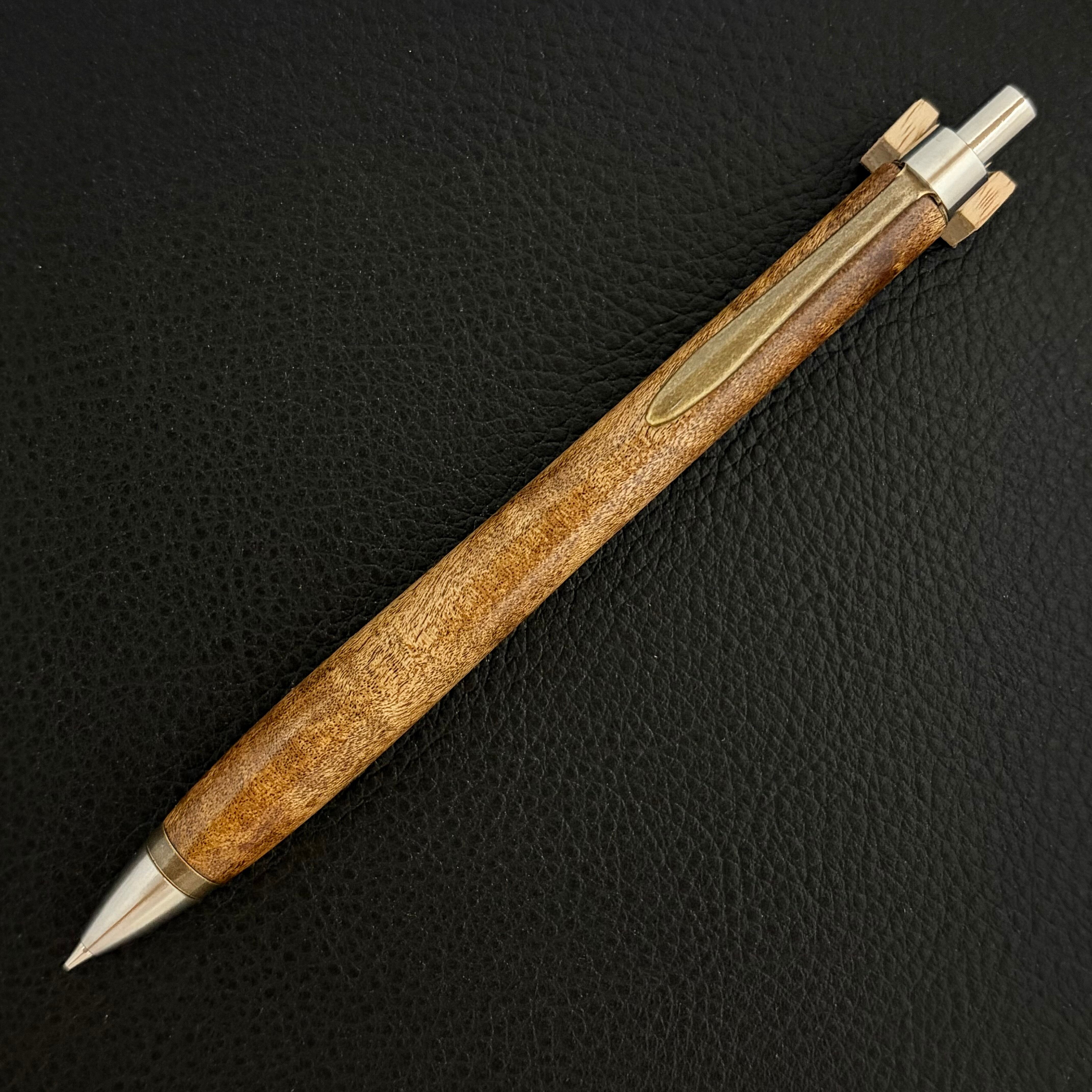 ペンシルは軸ブレが起こりにくい固定式口金を採用し、木の表情を最大限に楽しめる木軸の長さと、書き心地にこだわったバランスで金具を設計してあります。