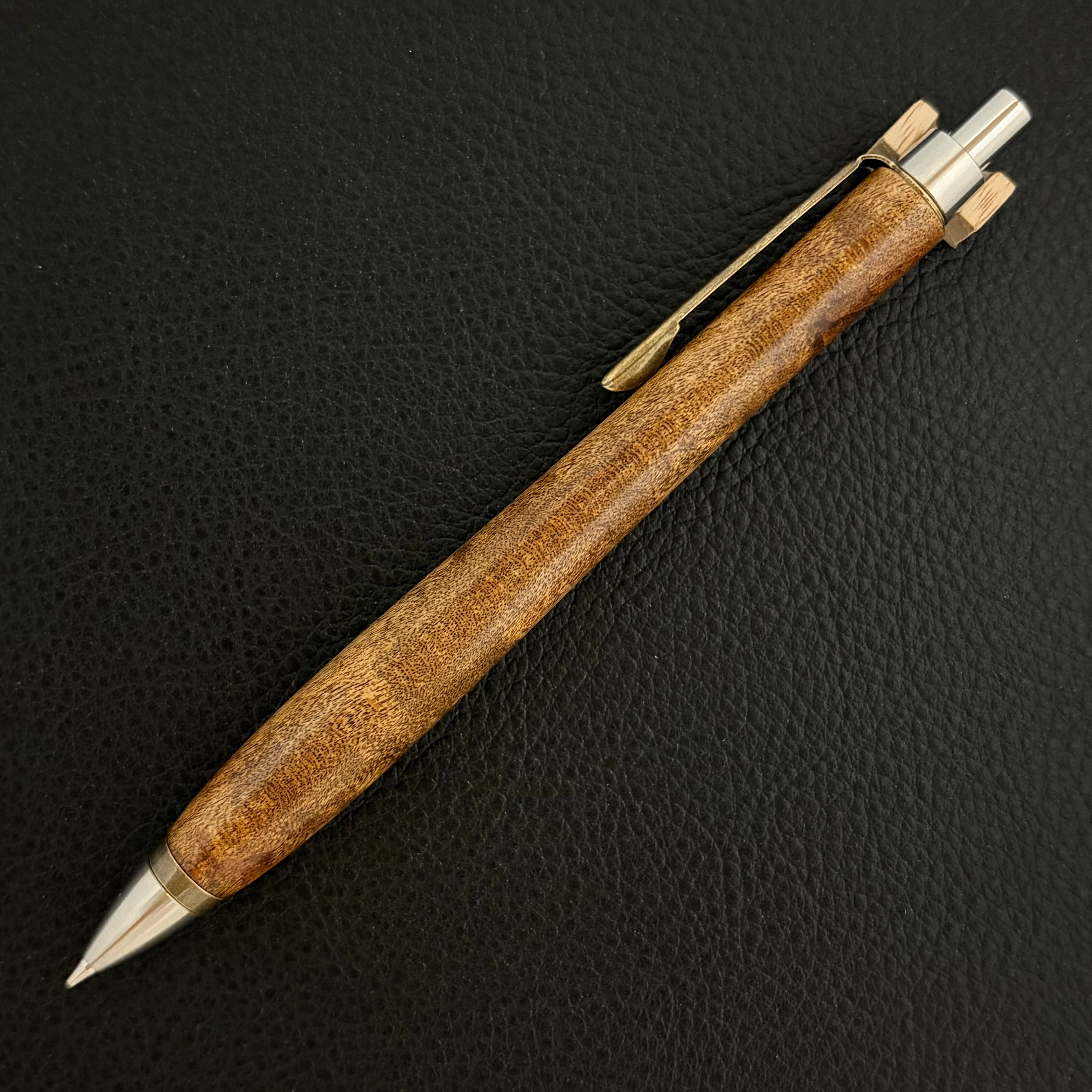 ペンシルは軸ブレが起こりにくい固定式口金を採用し、木の表情を最大限に楽しめる木軸の長さと、書き心地にこだわったバランスで金具を設計してあります。