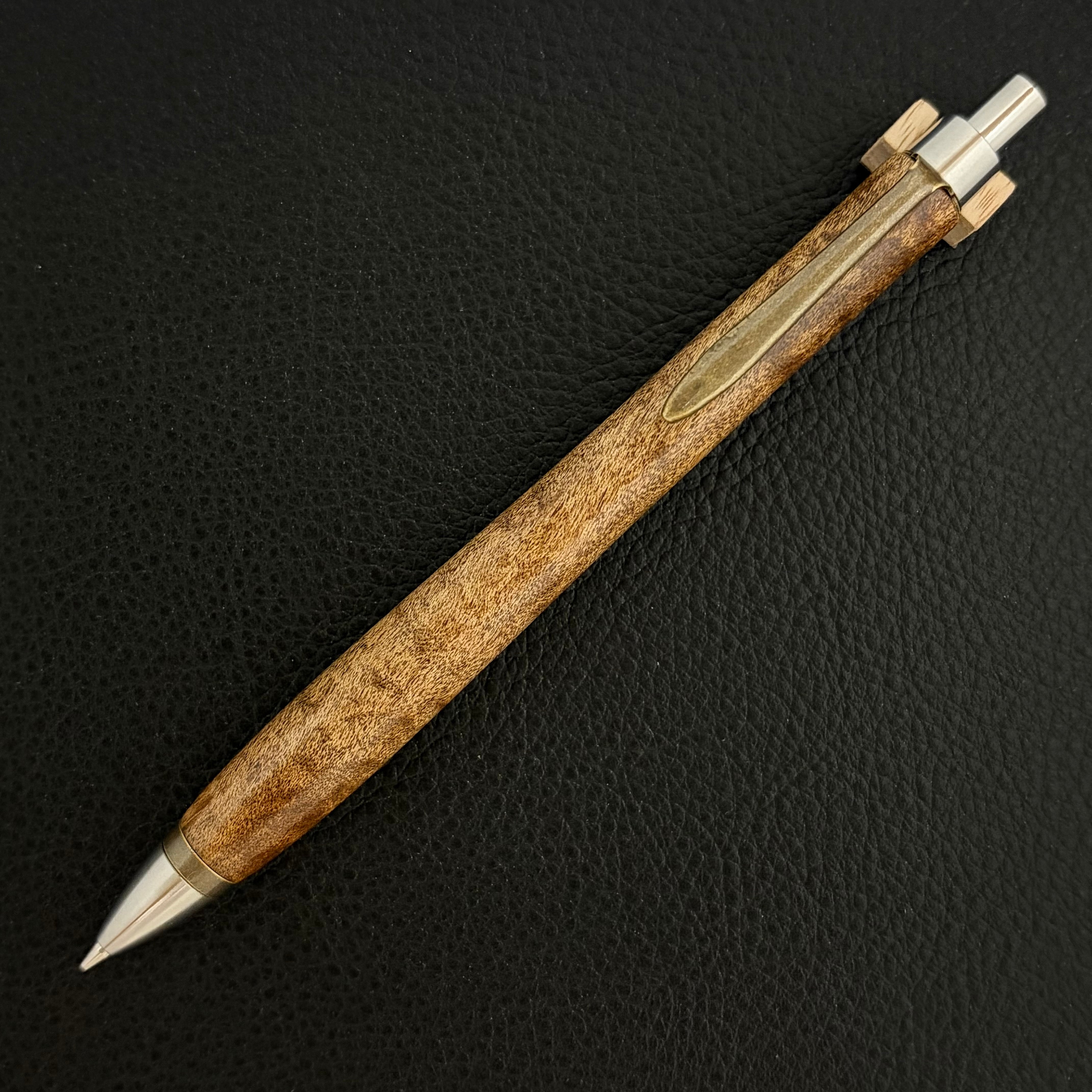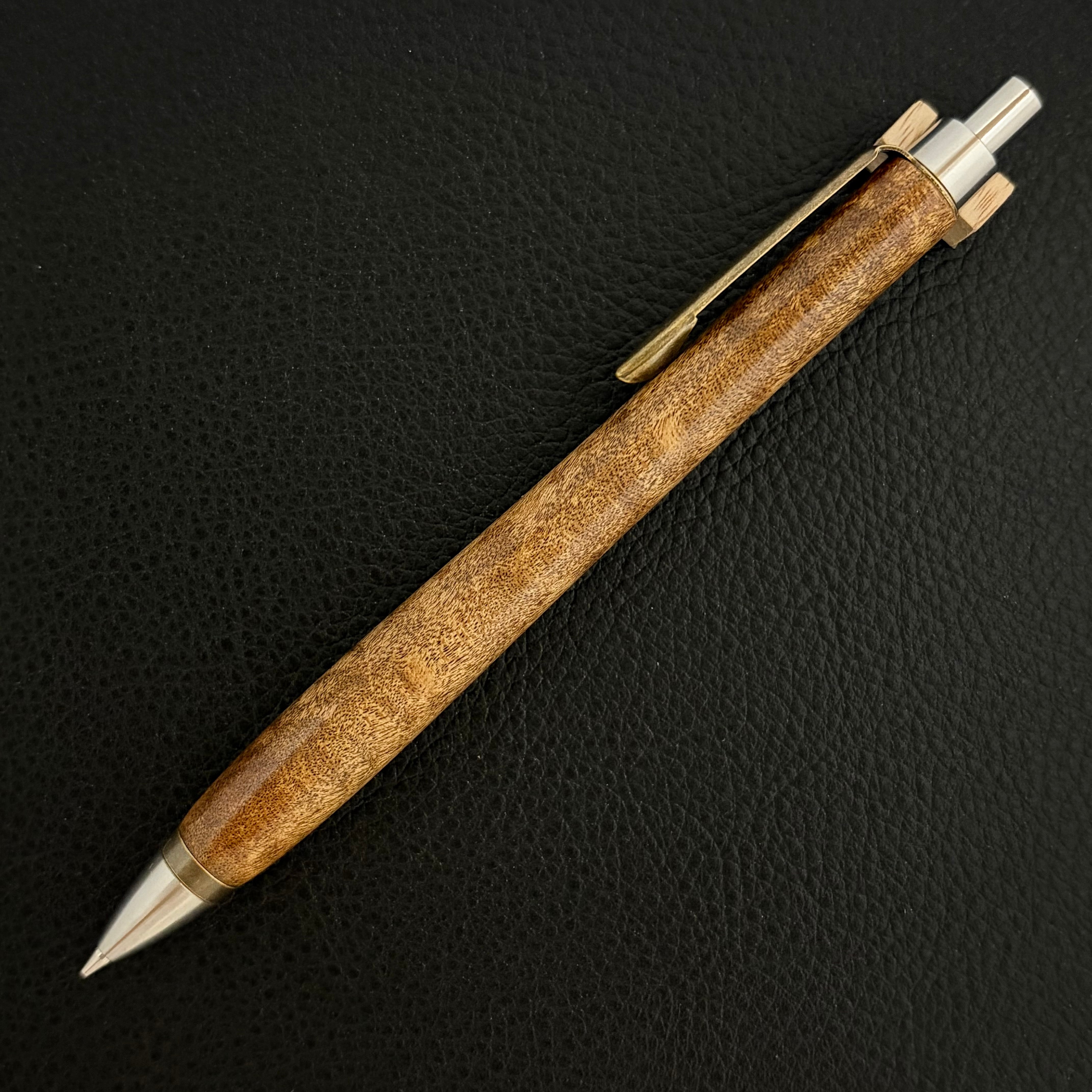 ペンシルは軸ブレが起こりにくい固定式口金を採用し、木の表情を最大限に楽しめる木軸の長さと、書き心地にこだわったバランスで金具を設計してあります。