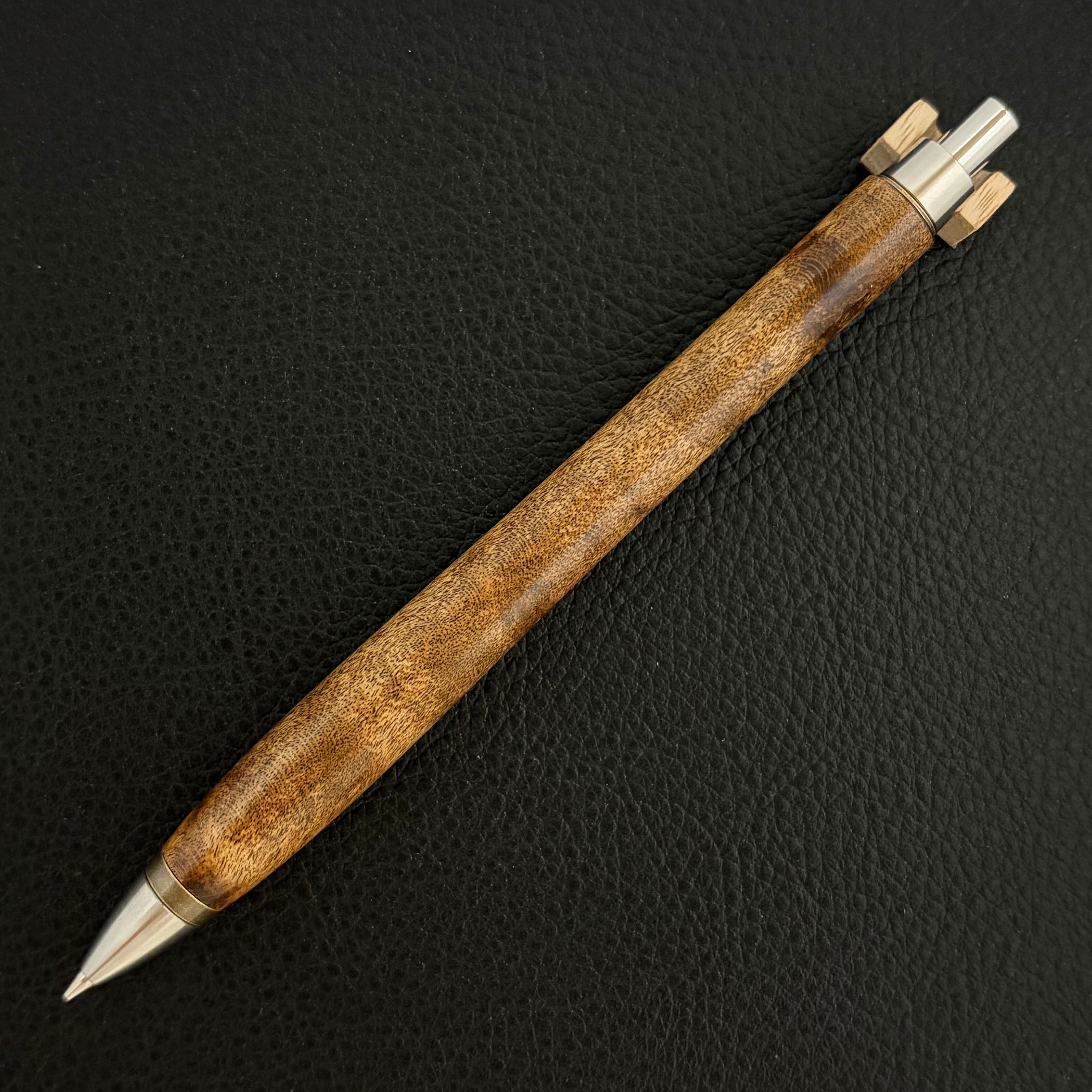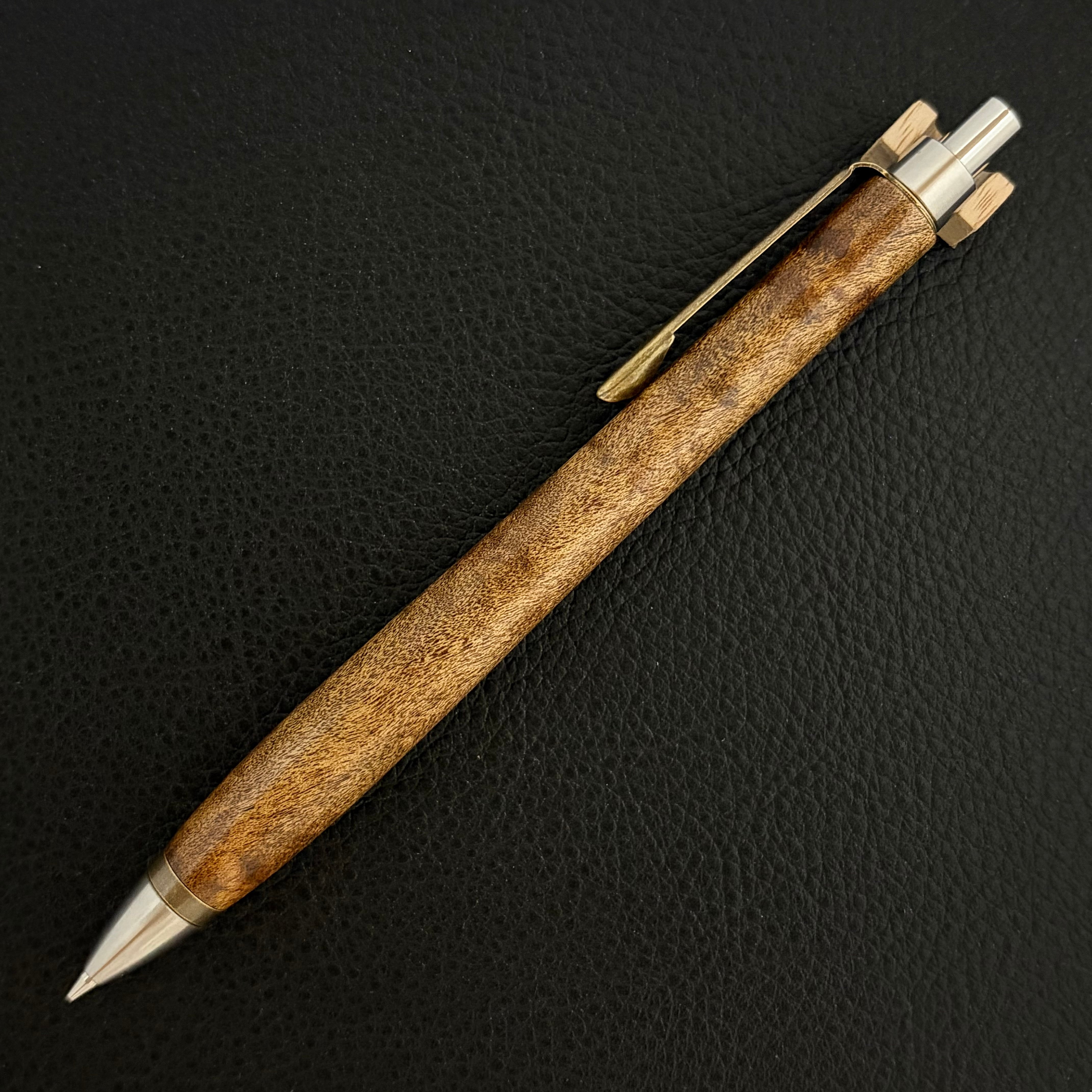 ペンシルは軸ブレが起こりにくい固定式口金を採用し、木の表情を最大限に楽しめる木軸の長さと、書き心地にこだわったバランスで金具を設計してあります。