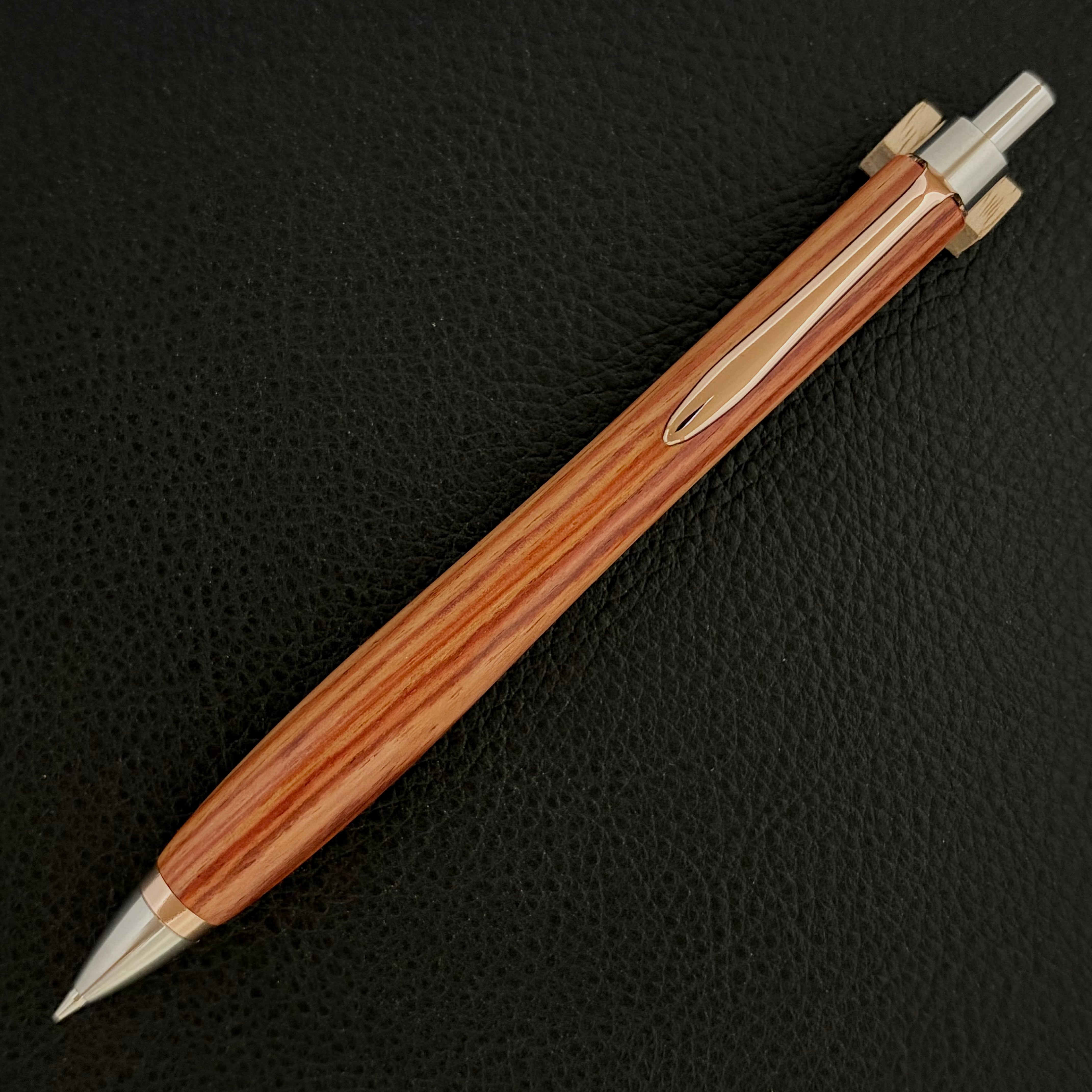 ペンシルは軸ブレが起こりにくい固定式口金を採用し、木の表情を最大限に楽しめる木軸の長さと、書き心地にこだわったバランスで金具を設計してあります。