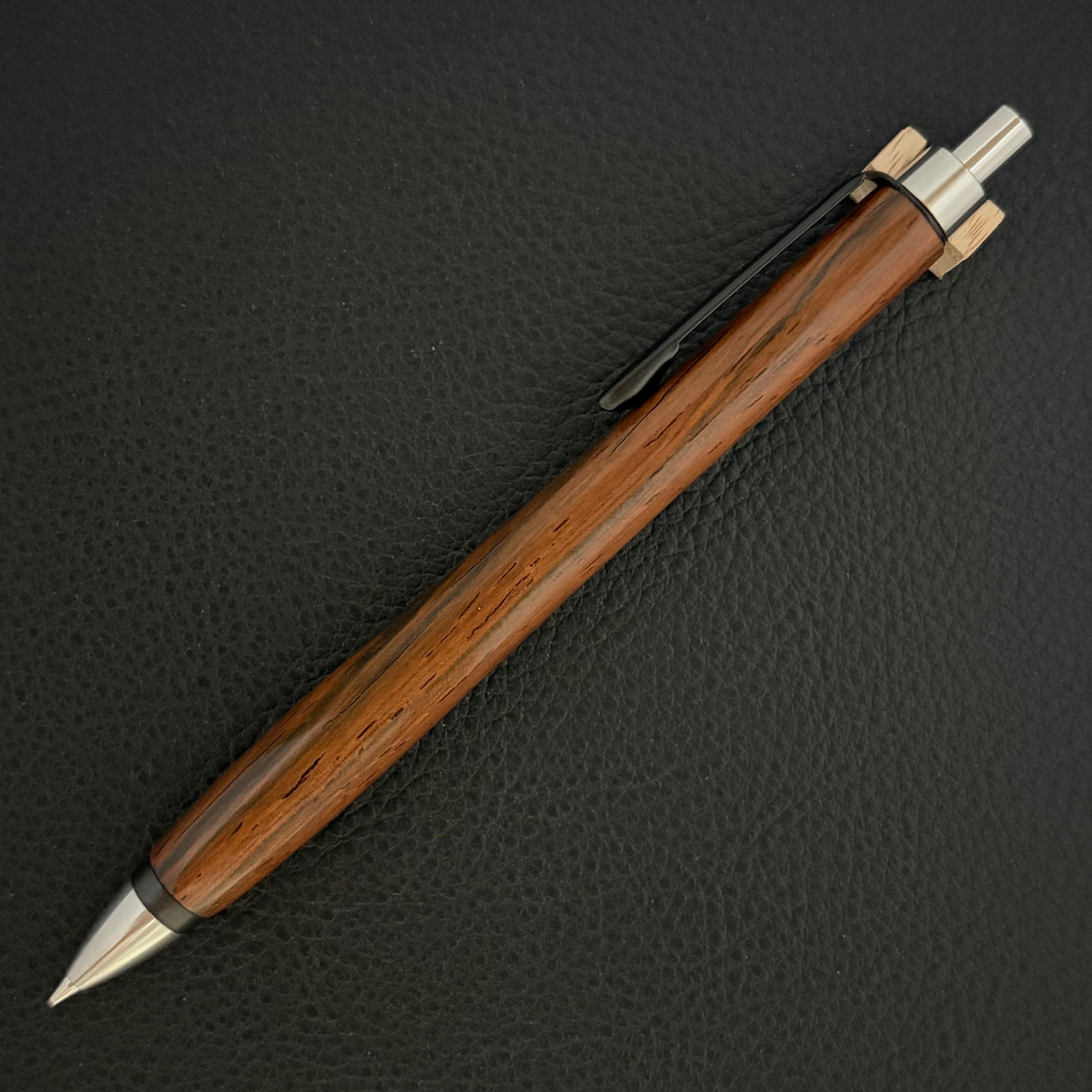 ペンシルは軸ブレが起こりにくい固定式口金を採用し、木の表情を最大限に楽しめる木軸の長さと、書き心地にこだわったバランスで金具を設計してあります。