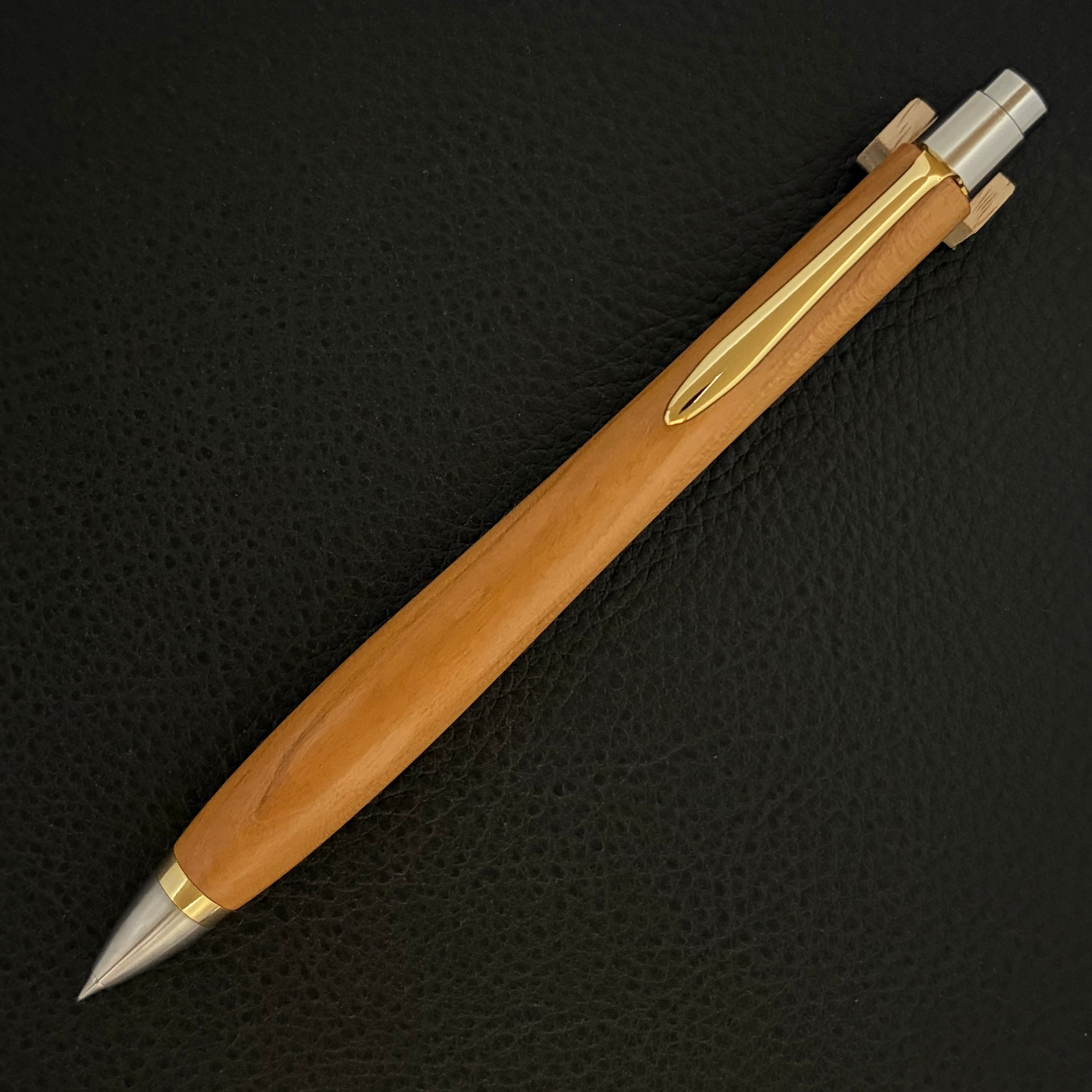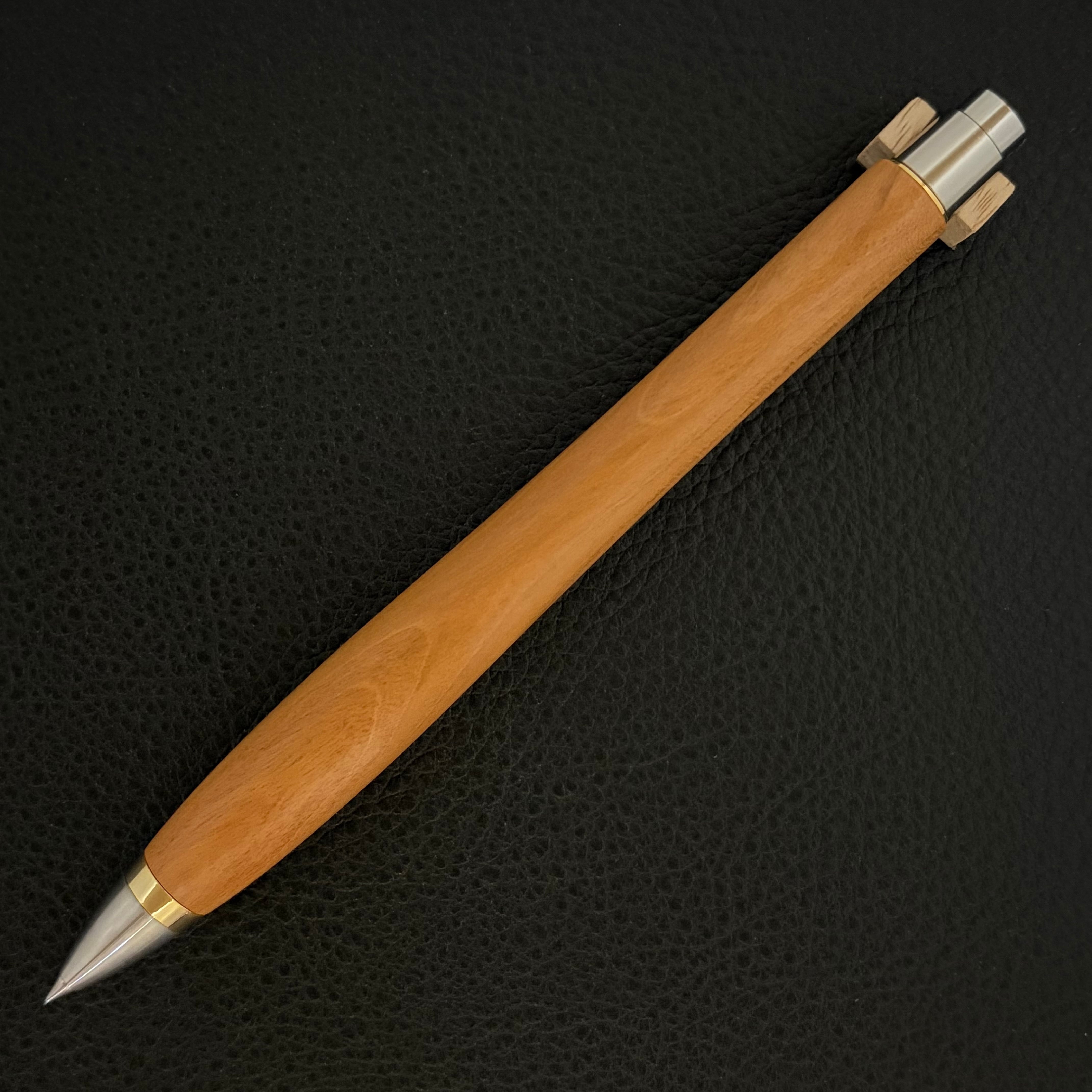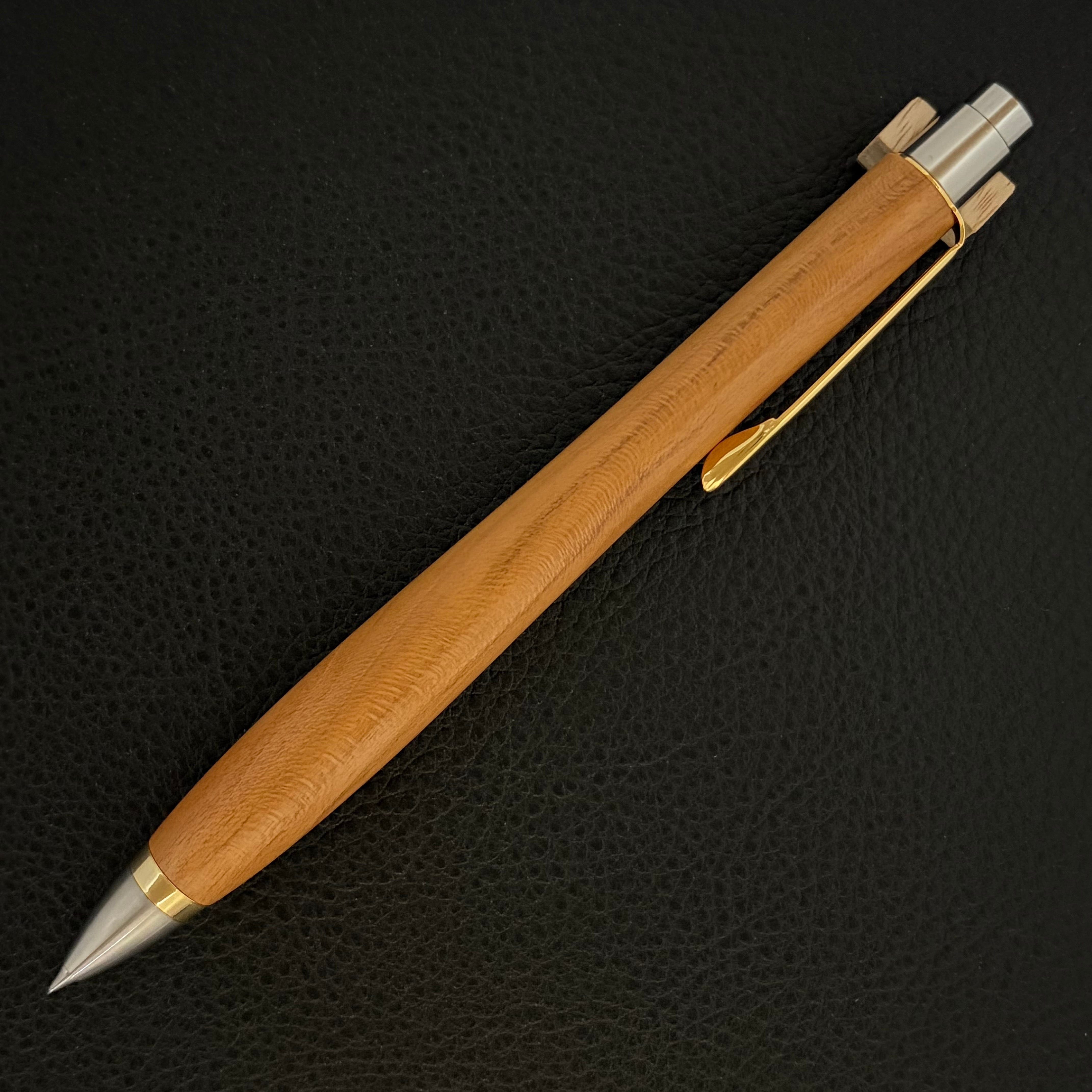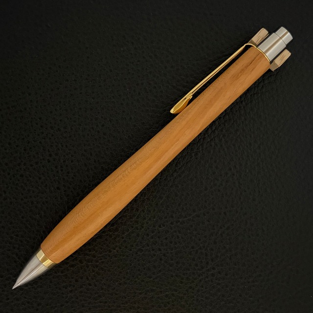 ボールペンのノックシステムは、ドイツ最高のクリックメカニズムを採用してあります。このメカニズムはユニークな機構のため、クリックしたときのカチカチ音が静かで、どんな場所でも気兼ねなく使うことができます。滑らかに動くこのプッシュ感覚を一度味わうと他には戻れなくなってしまうほどの魅力があります。 100分の1単位の加工精度で削り出されたペン先は、軸ブレも全くありません。