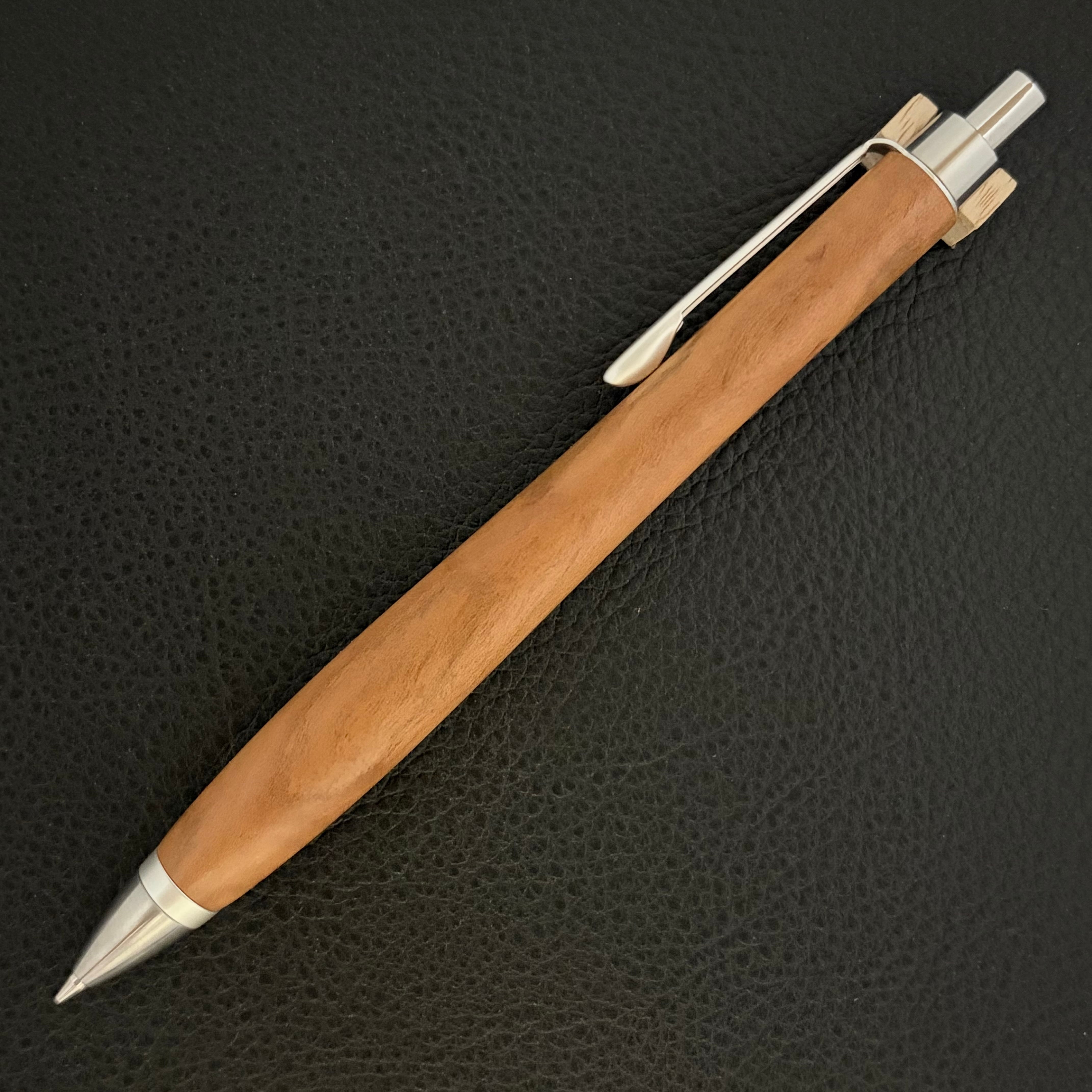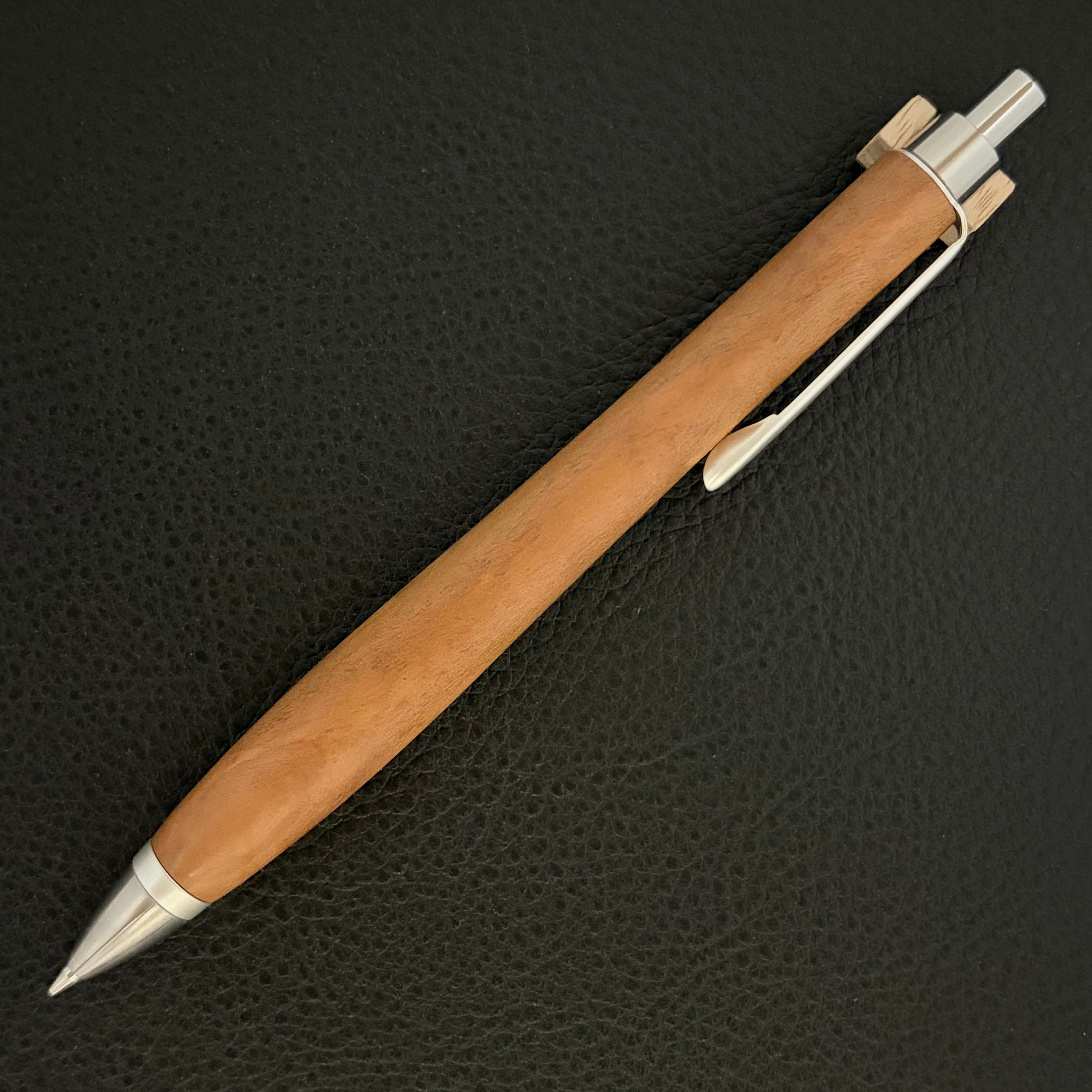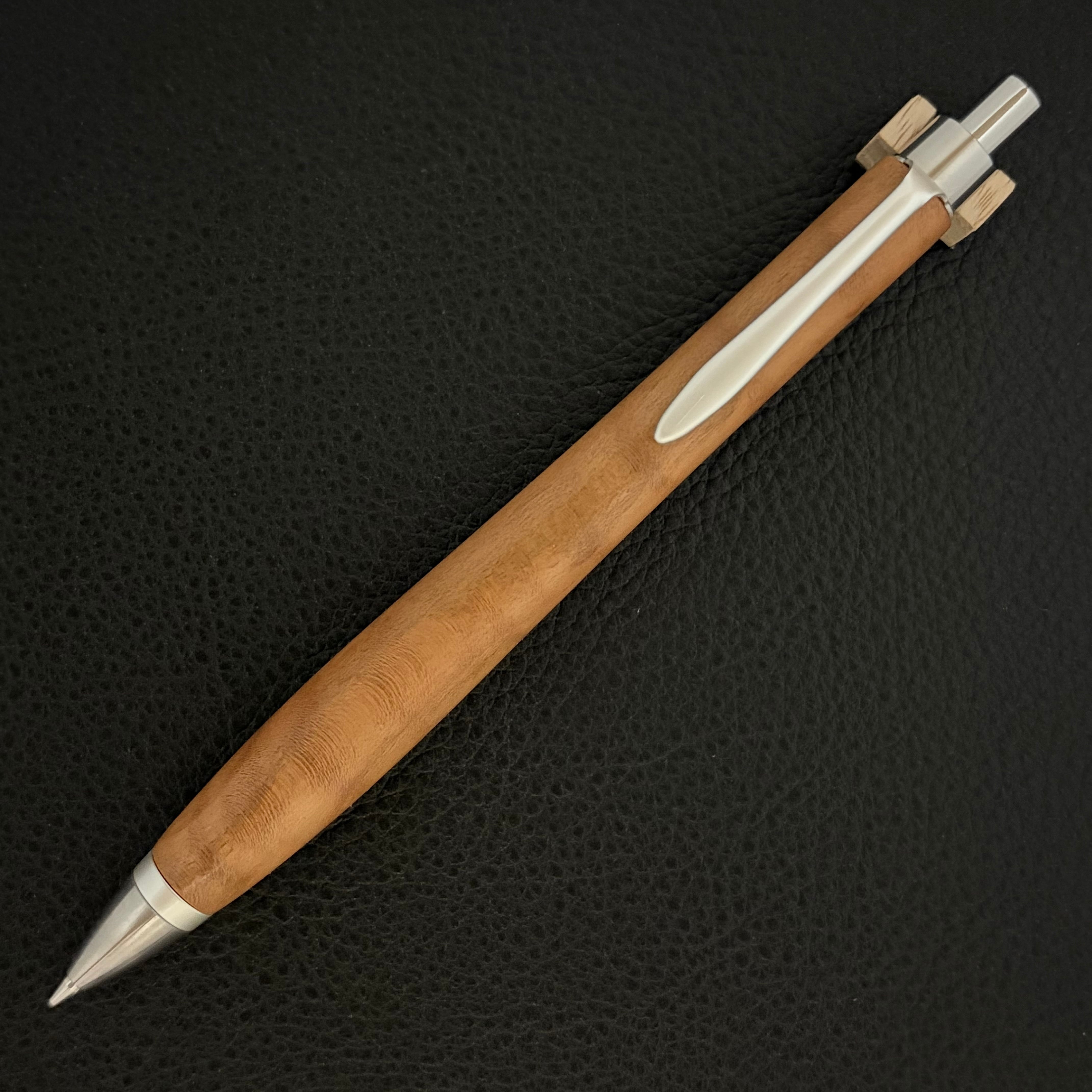 ペンシルは軸ブレが起こりにくい固定式口金を採用し、木の表情を最大限に楽しめる木軸の長さと、書き心地にこだわったバランスで金具を設計してあります。