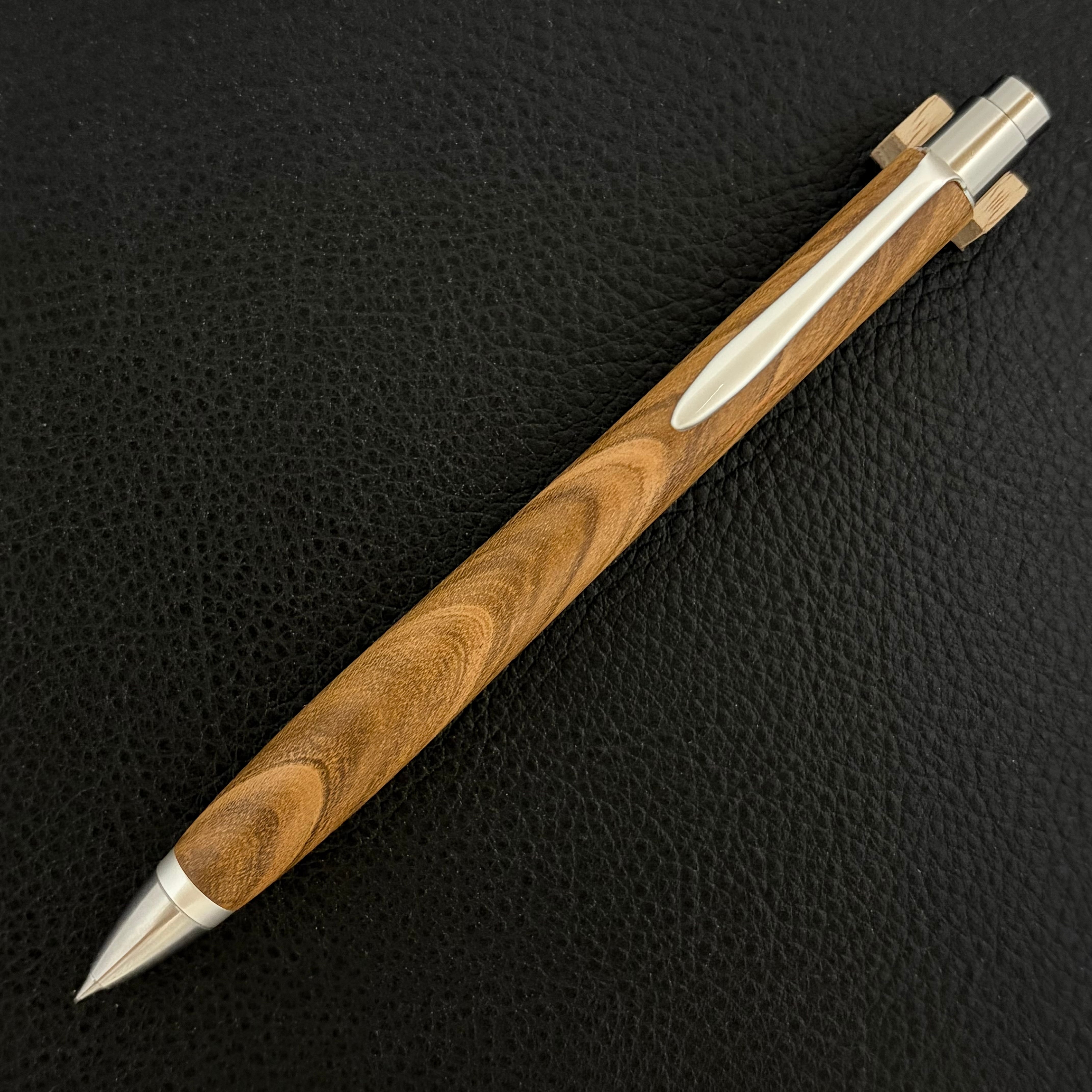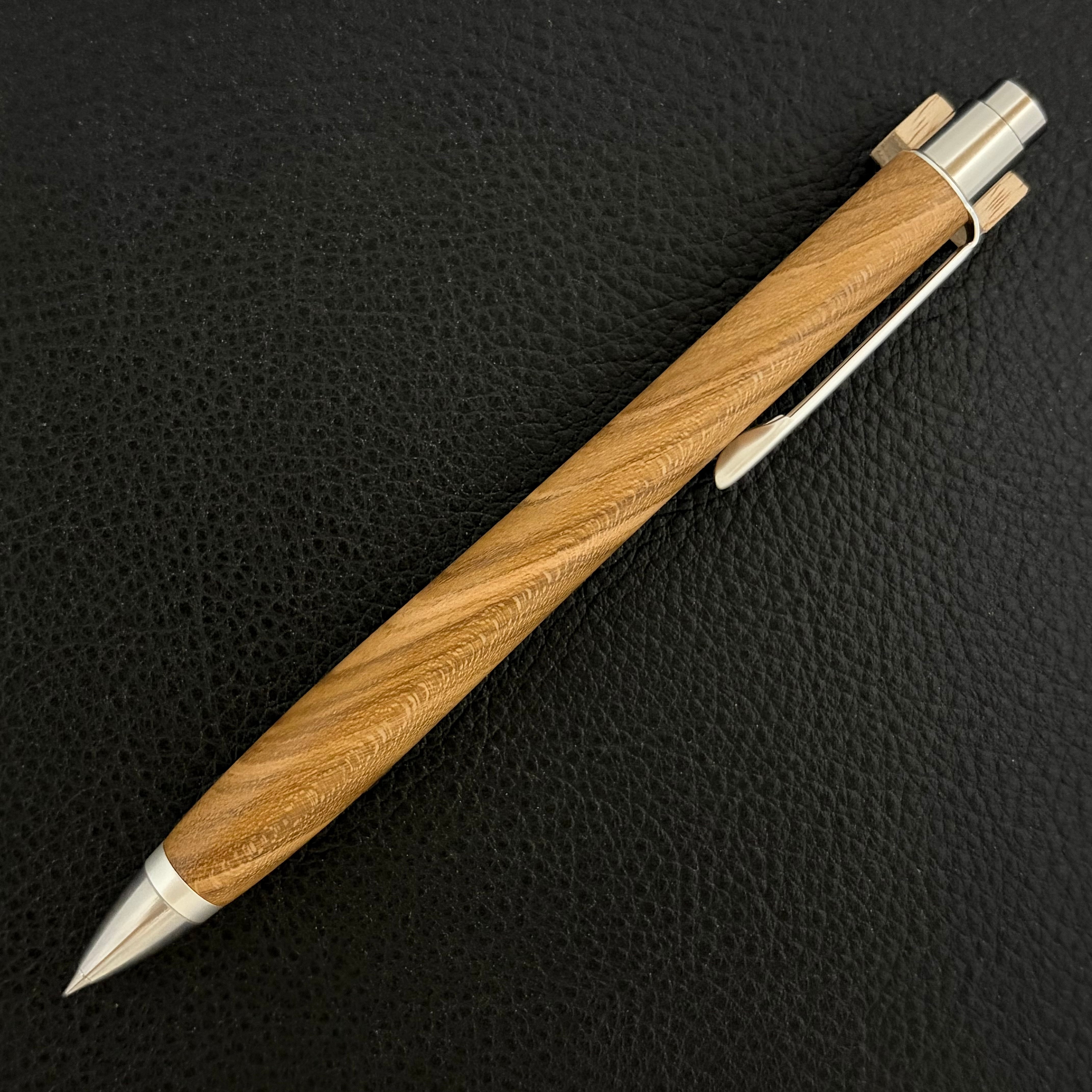 ボールペンのノックシステムは、ドイツ最高のクリックメカニズムを採用してあります。このメカニズムはユニークな機構のため、クリックしたときのカチカチ音が静かで、どんな場所でも気兼ねなく使うことができます。滑らかに動くこのプッシュ感覚を一度味わうと他には戻れなくなってしまうほどの魅力があります。 100分の1単位の加工精度で削り出されたペン先は、軸ブレも全くありません。