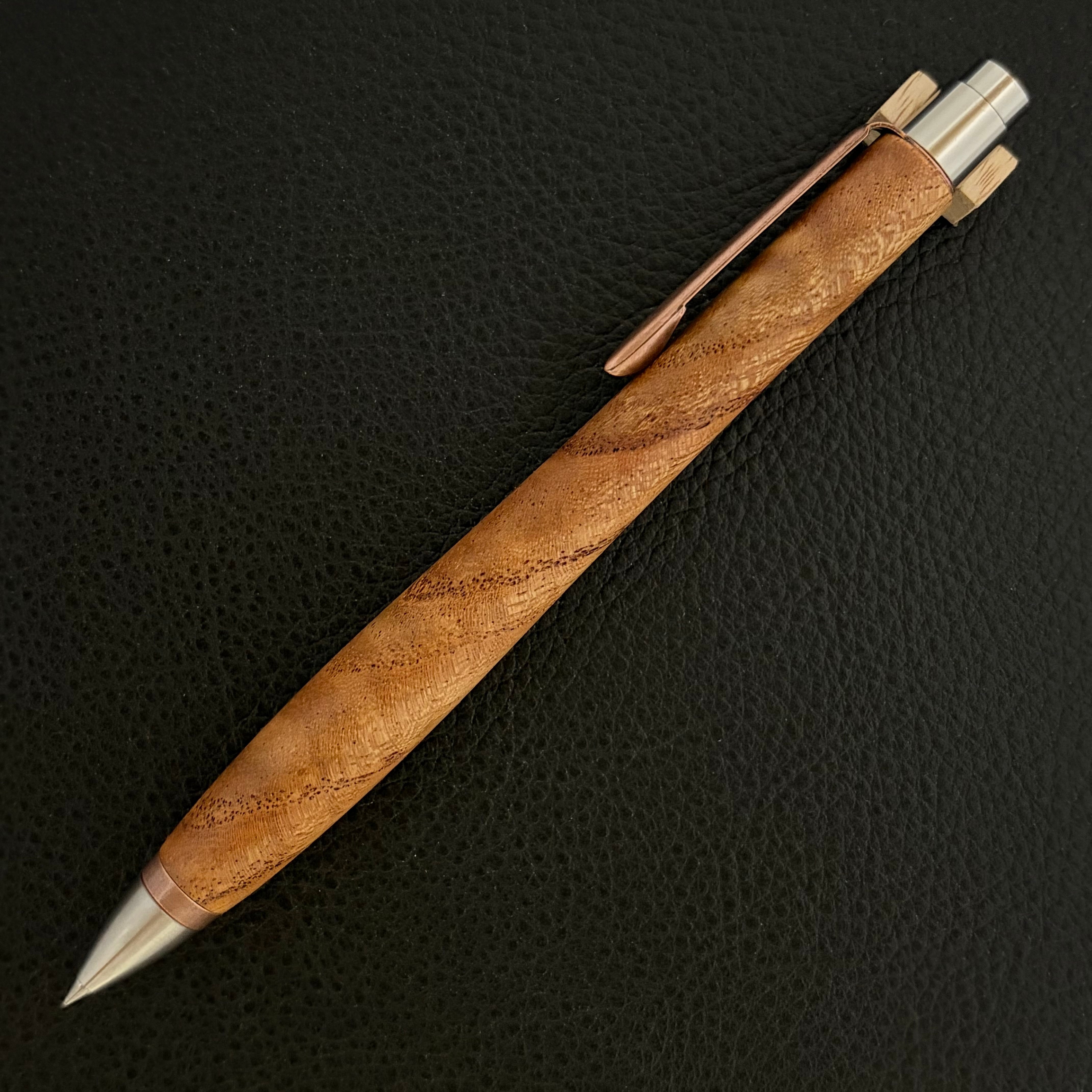 梅の花を見に訪れた際、栴檀の樹に数多く実る魅力的な姿に心を動かされ、今回のペンを制作したいと思いました。杢の輝きとその表情もお楽しみください。