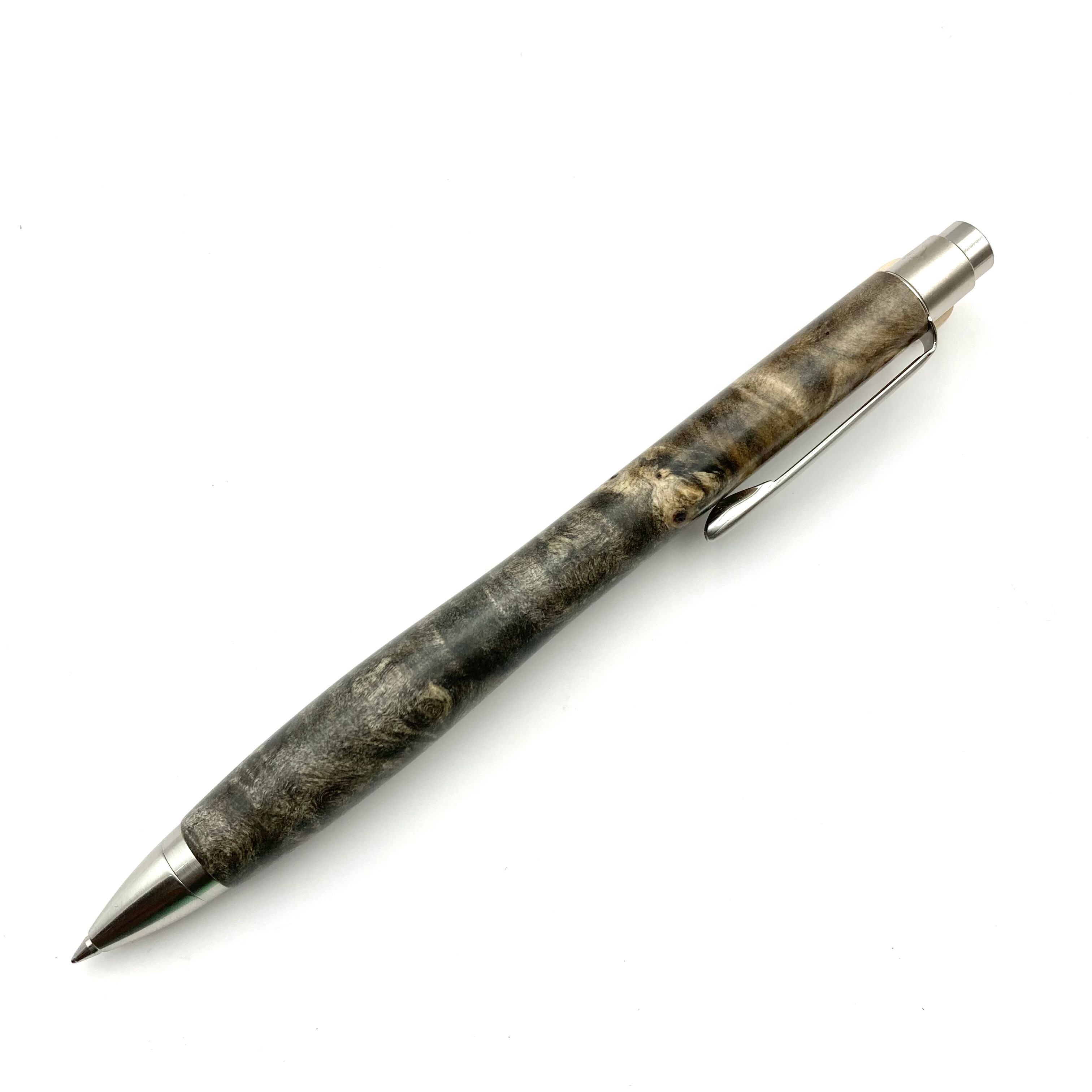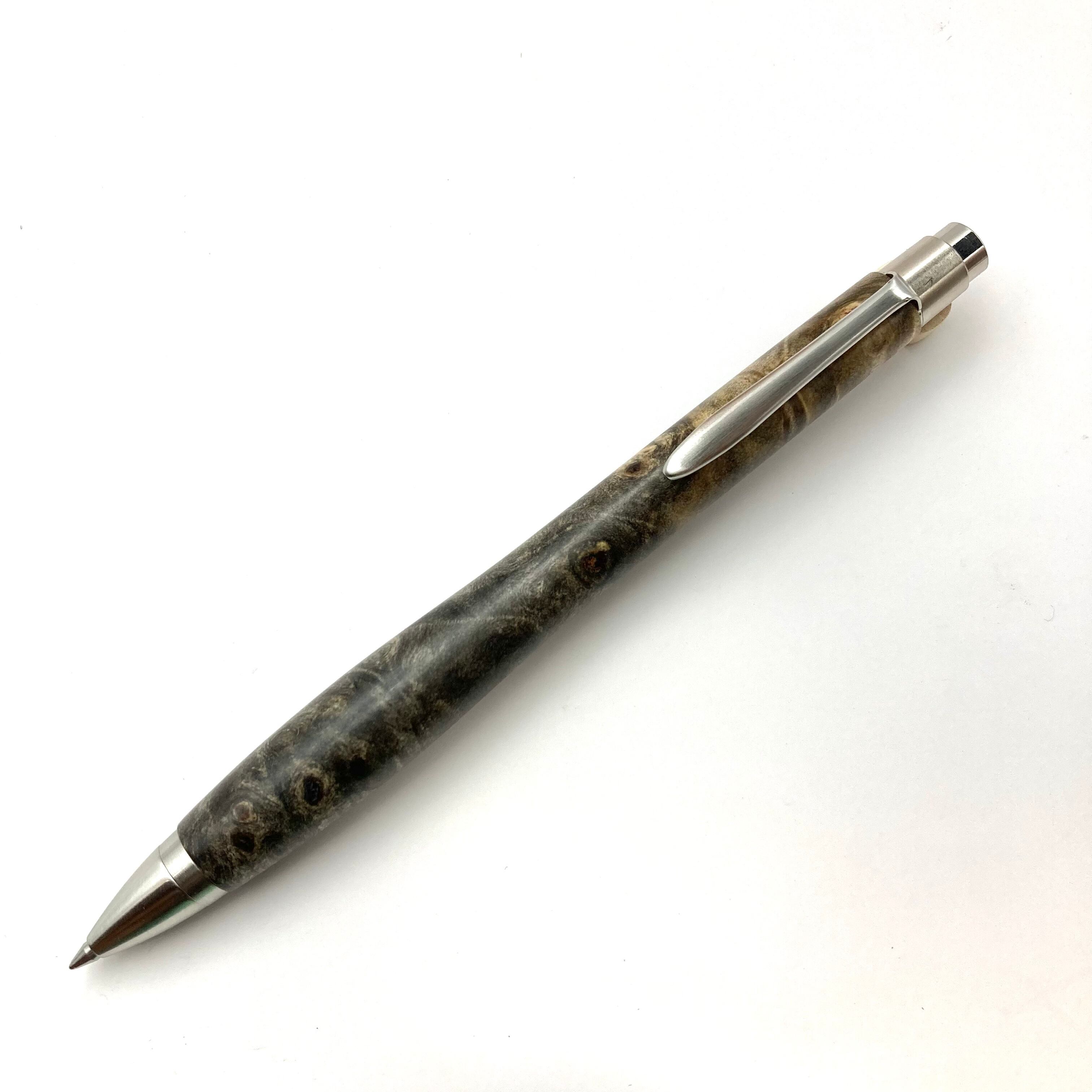 ボールペンのノックシステムは、ドイツ最高のクリックメカニズムを採用してあります。このメカニズムはユニークな機構のため、クリックしたときのカチカチ音が静かで、どんな場所でも気兼ねなく使うことができます。滑らかに動くこのプッシュ感覚を一度味わうと他には戻れなくなってしまうほどの魅力があります。 100分の1単位の加工精度で削り出されたペン先は、軸ブレも全くありません。