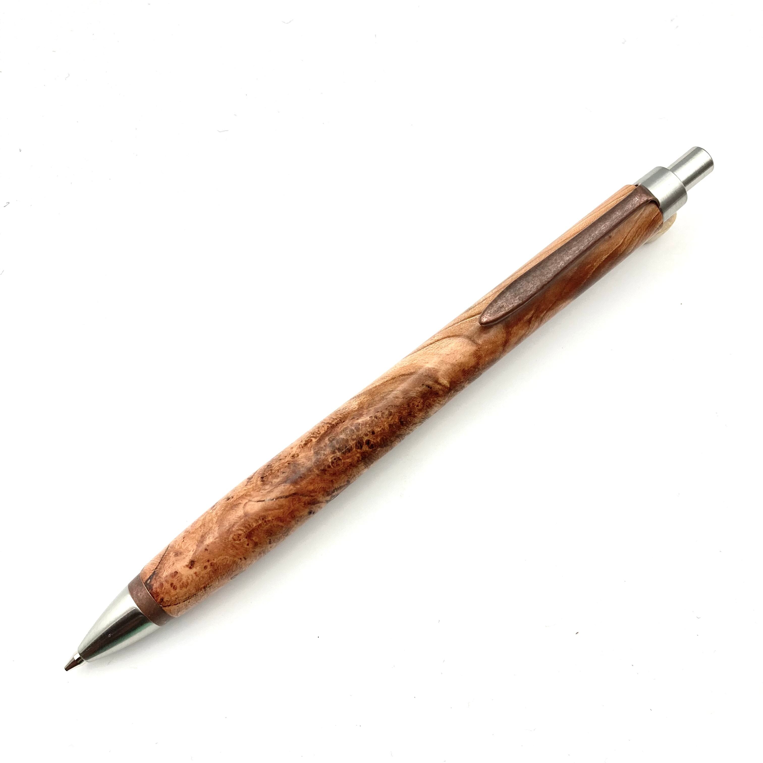 ペンシルは軸ブレが起こりにくい固定式口金を採用し、木の表情を最大限に楽しめる木軸の長さと、書き心地にこだわったバランスで金具を設計してあります。