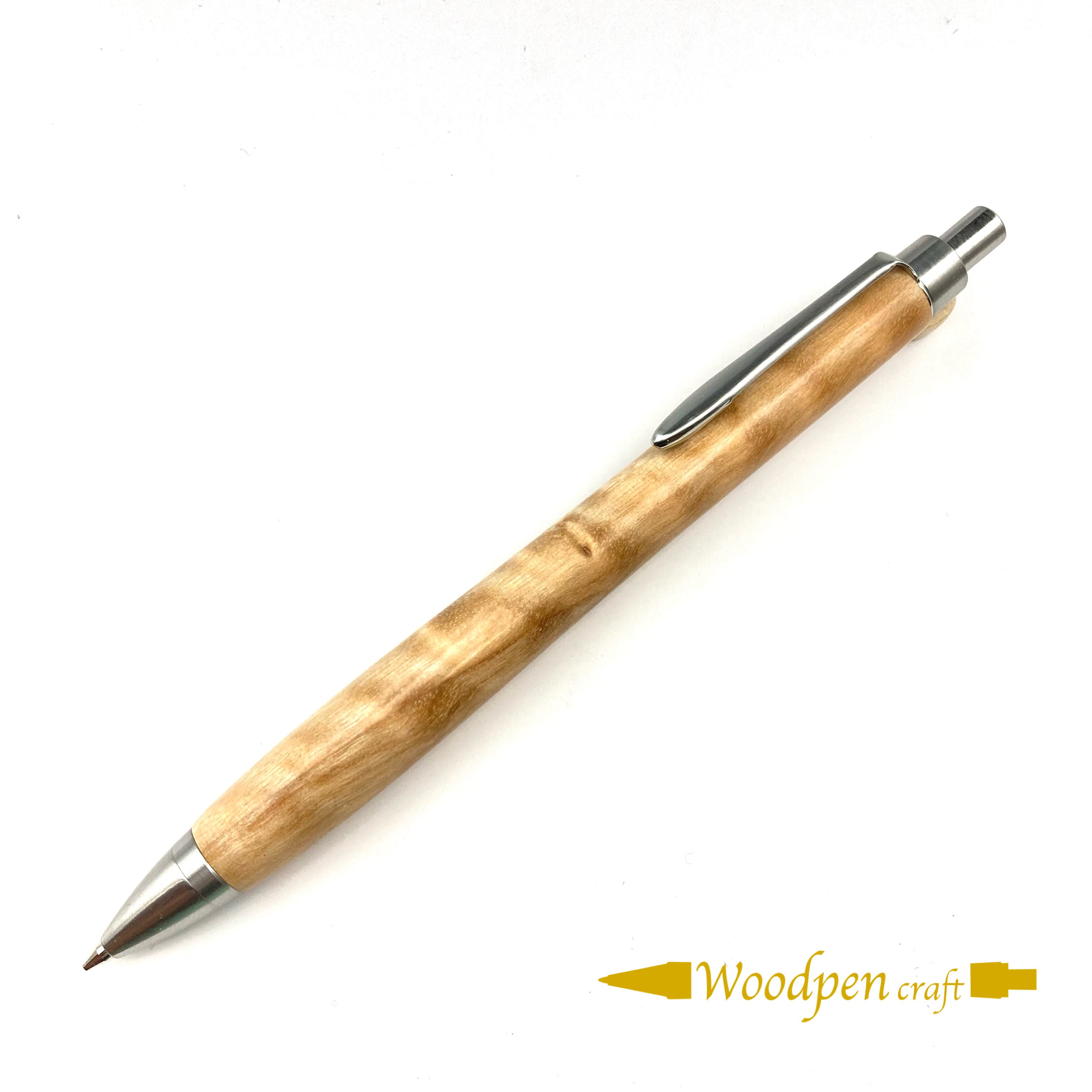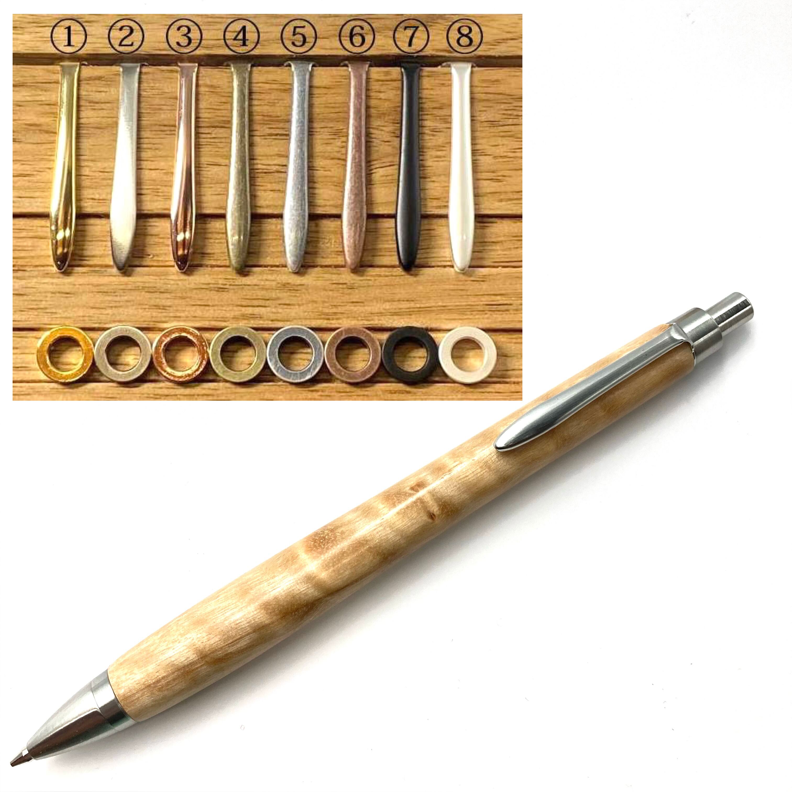 ペンシルは軸ブレが起こりにくい固定式口金を採用し、木の表情を最大限に楽しめる木軸の長さと、書き心地にこだわったバランスで金具を設計してあります。