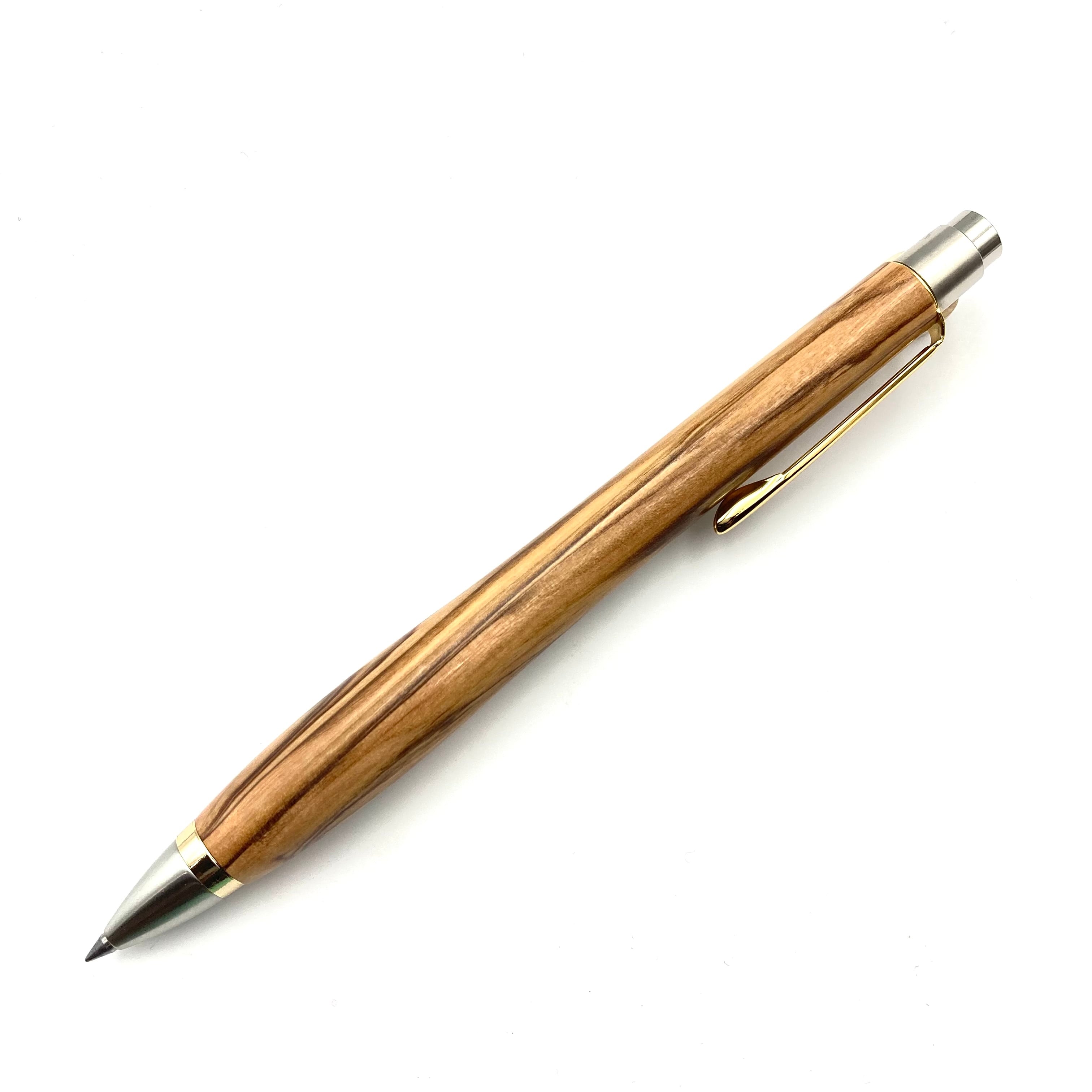 ボールペンのノックシステムは、ドイツ最高のクリックメカニズムを採用してあります。このメカニズムはユニークな機構のため、クリックしたときのカチカチ音が静かで、どんな場所でも気兼ねなく使うことができます。滑らかに動くこのプッシュ感覚を一度味わうと他には戻れなくなってしまうほどの魅力があります。 100分の1単位の加工精度で削り出されたペン先は、軸ブレも全くありません。