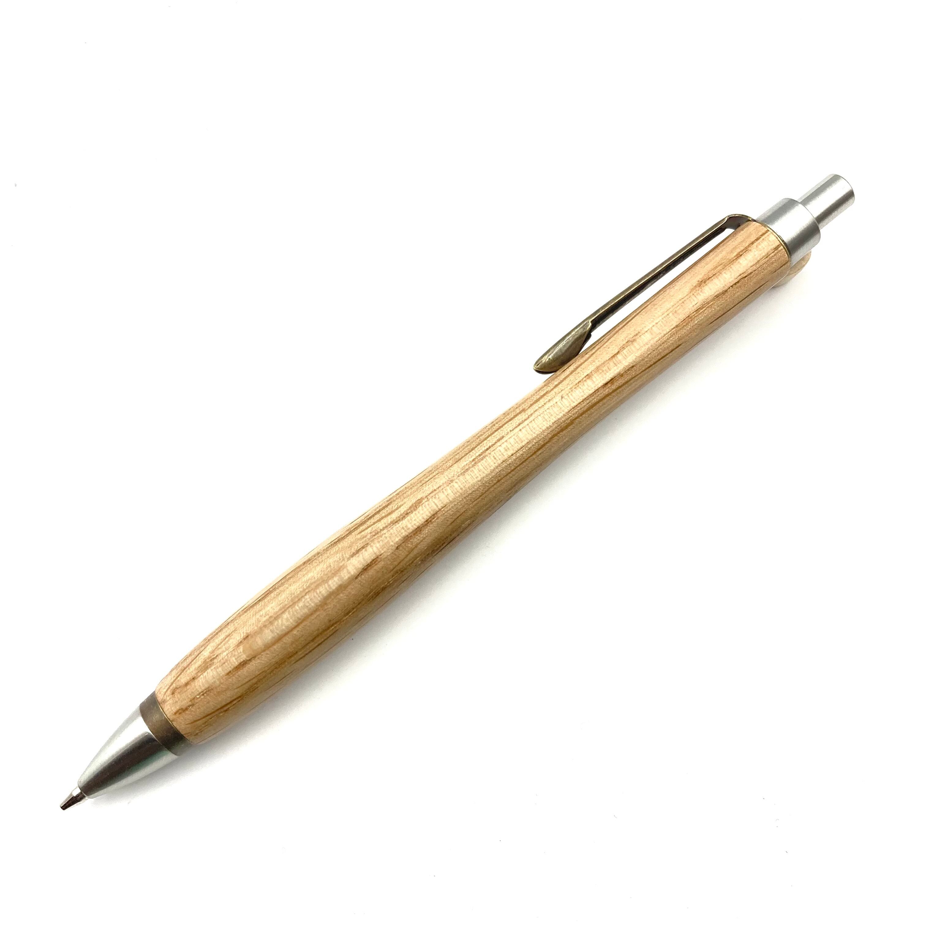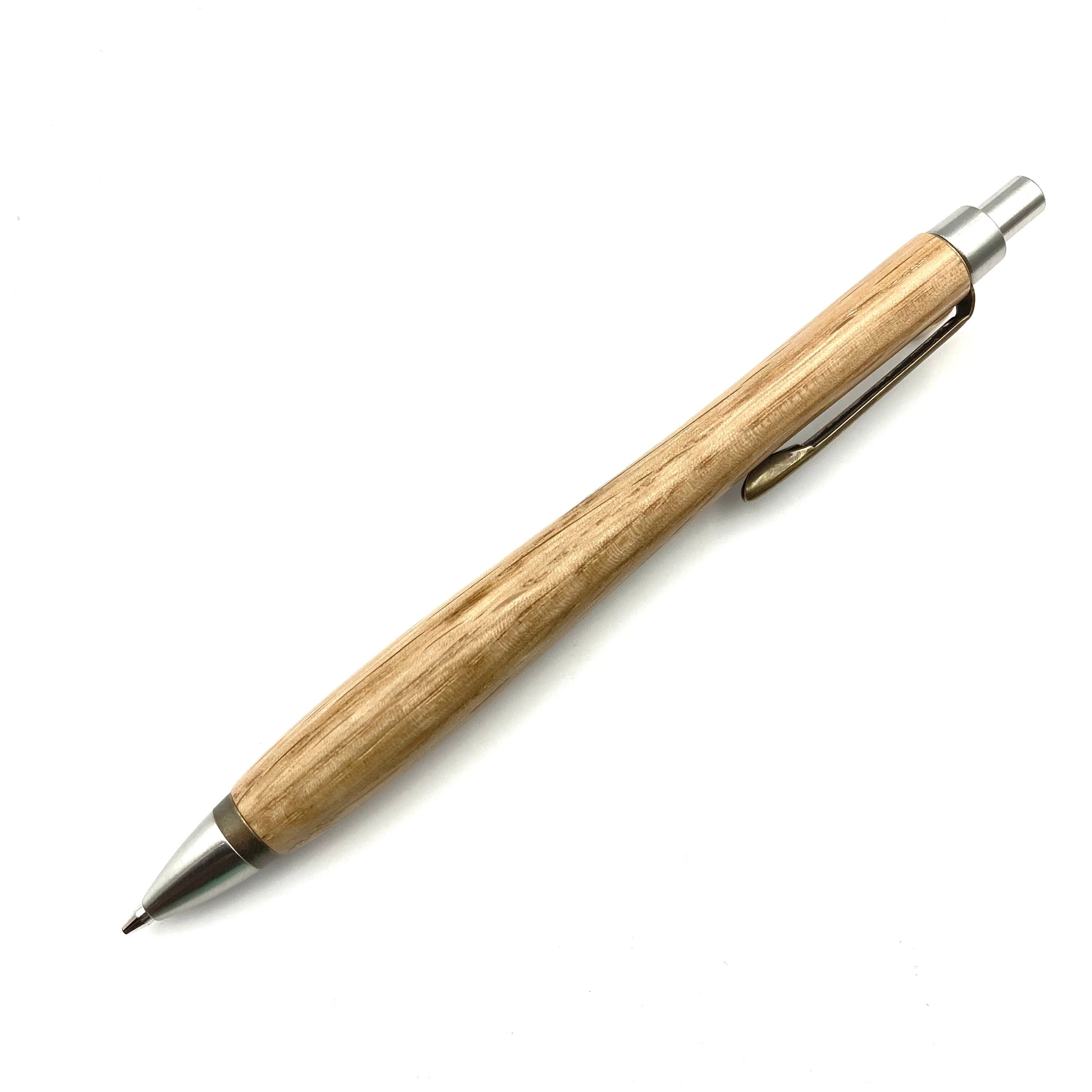 ペンシルは軸ブレが起こりにくい固定式口金を採用し、木の表情を最大限に楽しめる木軸の長さと、書き心地にこだわったバランスで金具を設計してあります。