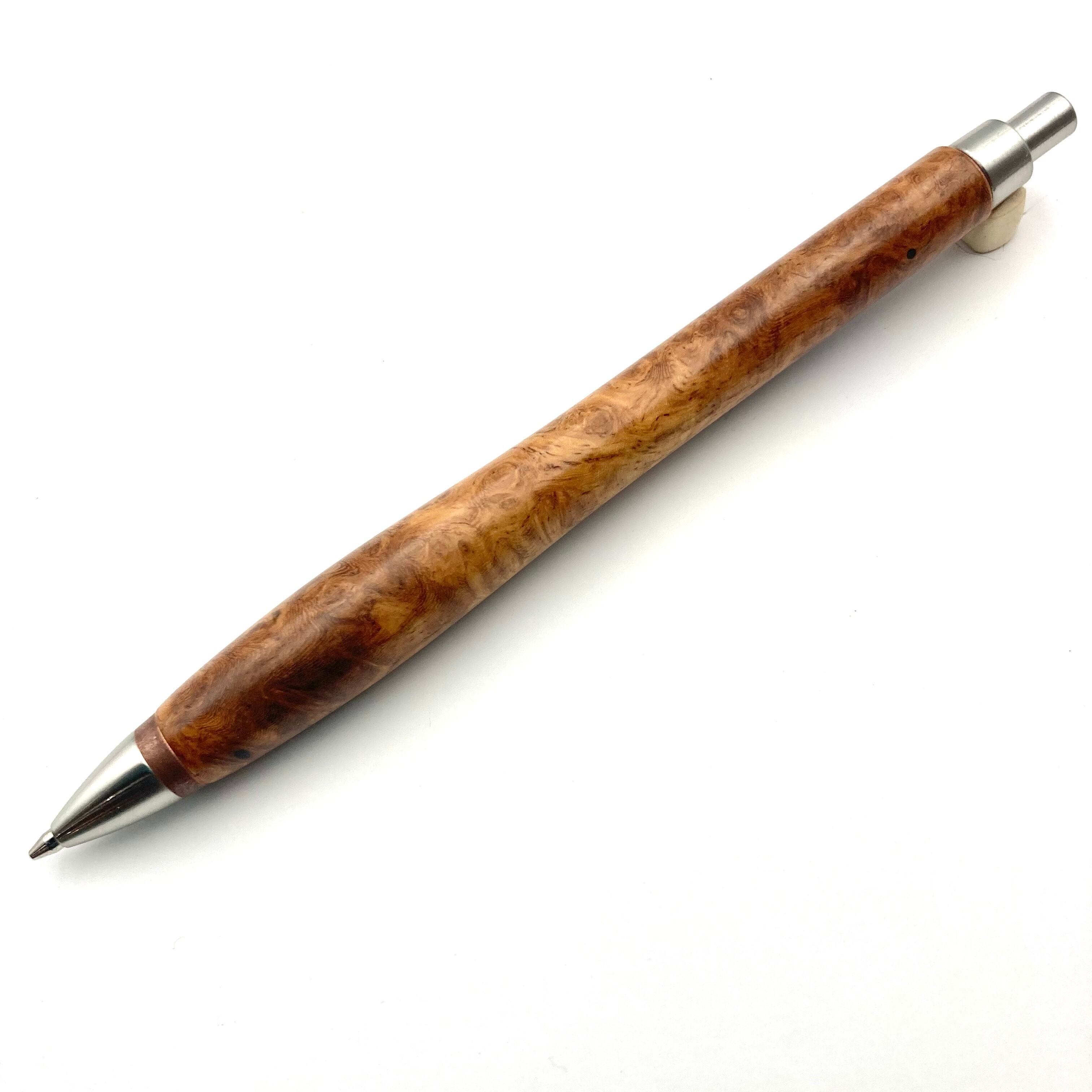 ペンシルは軸ブレが起こりにくい固定式口金を採用し、木の表情を最大限に楽しめる木軸の長さと、書き心地にこだわったバランスで金具を設計してあります。