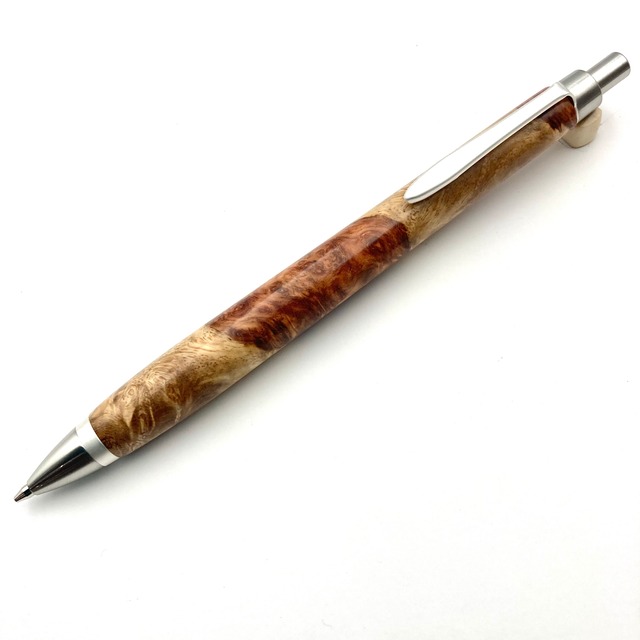 ペンシルは軸ブレが起こりにくい固定式口金を採用し、木の表情を最大限に楽しめる木軸の長さと、書き心地にこだわったバランスで金具を設計してあります。