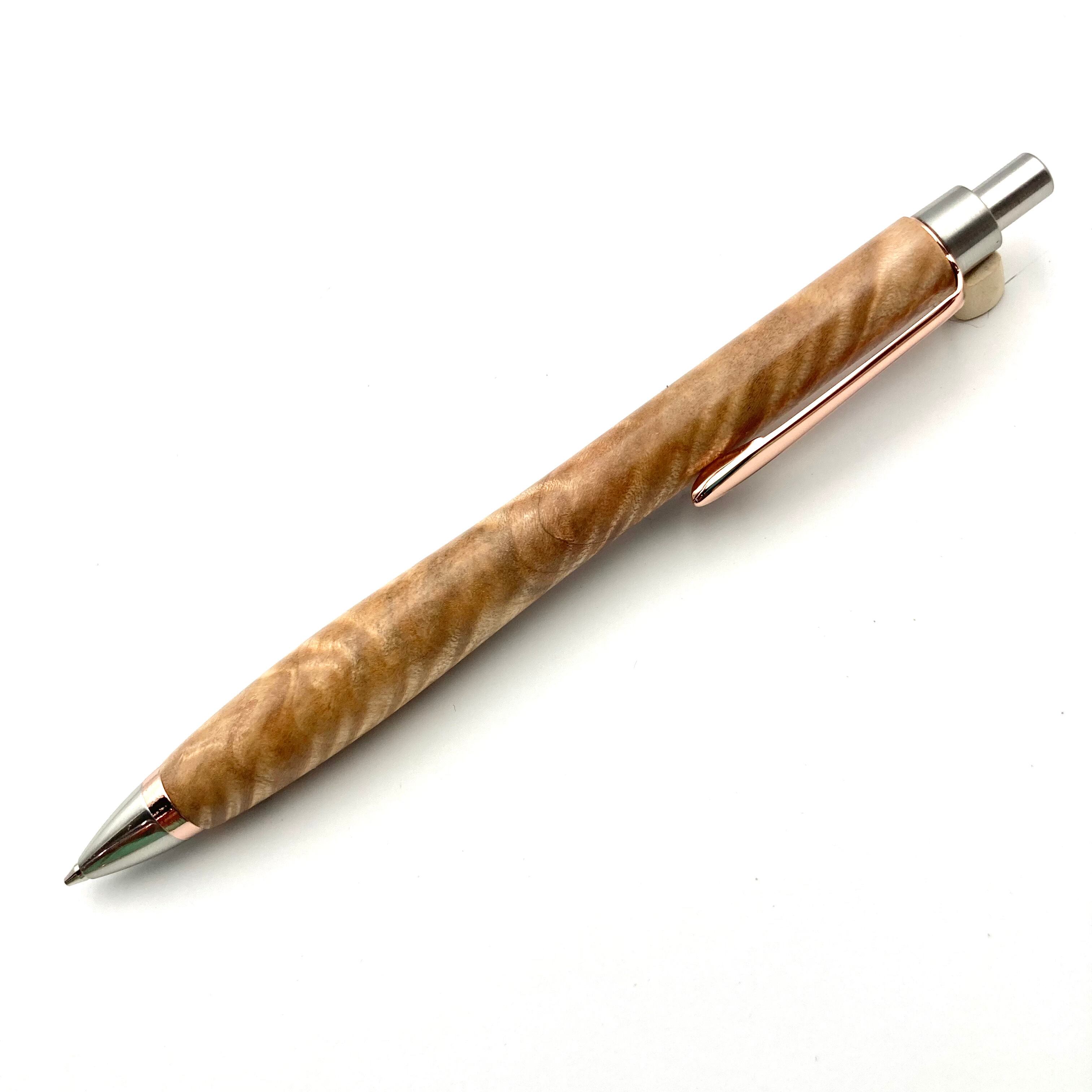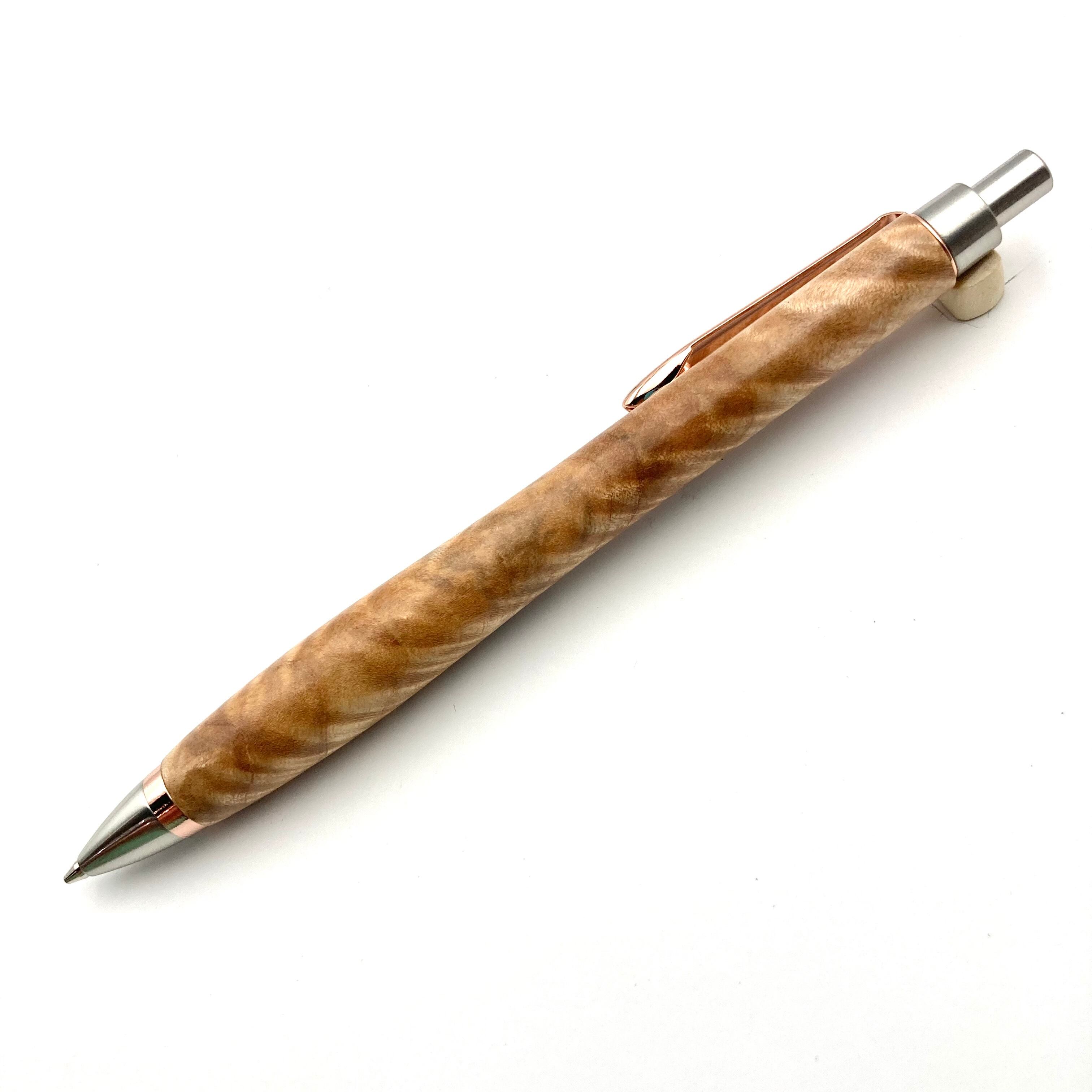 ペンシルは軸ブレが起こりにくい固定式口金を採用し、木の表情を最大限に楽しめる木軸の長さと、書き心地にこだわったバランスで金具を設計してあります。
