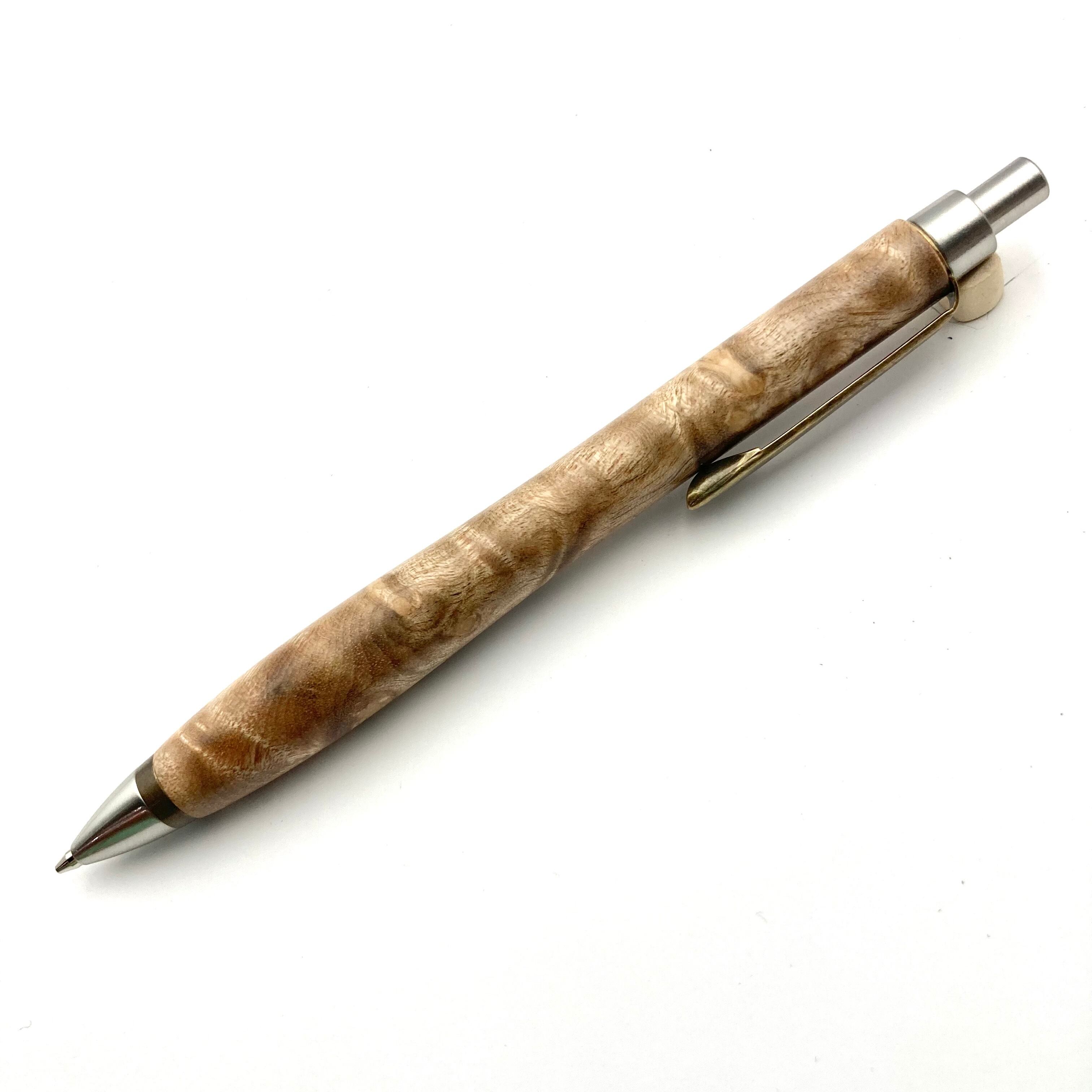 ペンシルは軸ブレが起こりにくい固定式口金を採用し、木の表情を最大限に楽しめる木軸の長さと、書き心地にこだわったバランスで金具を設計してあります。