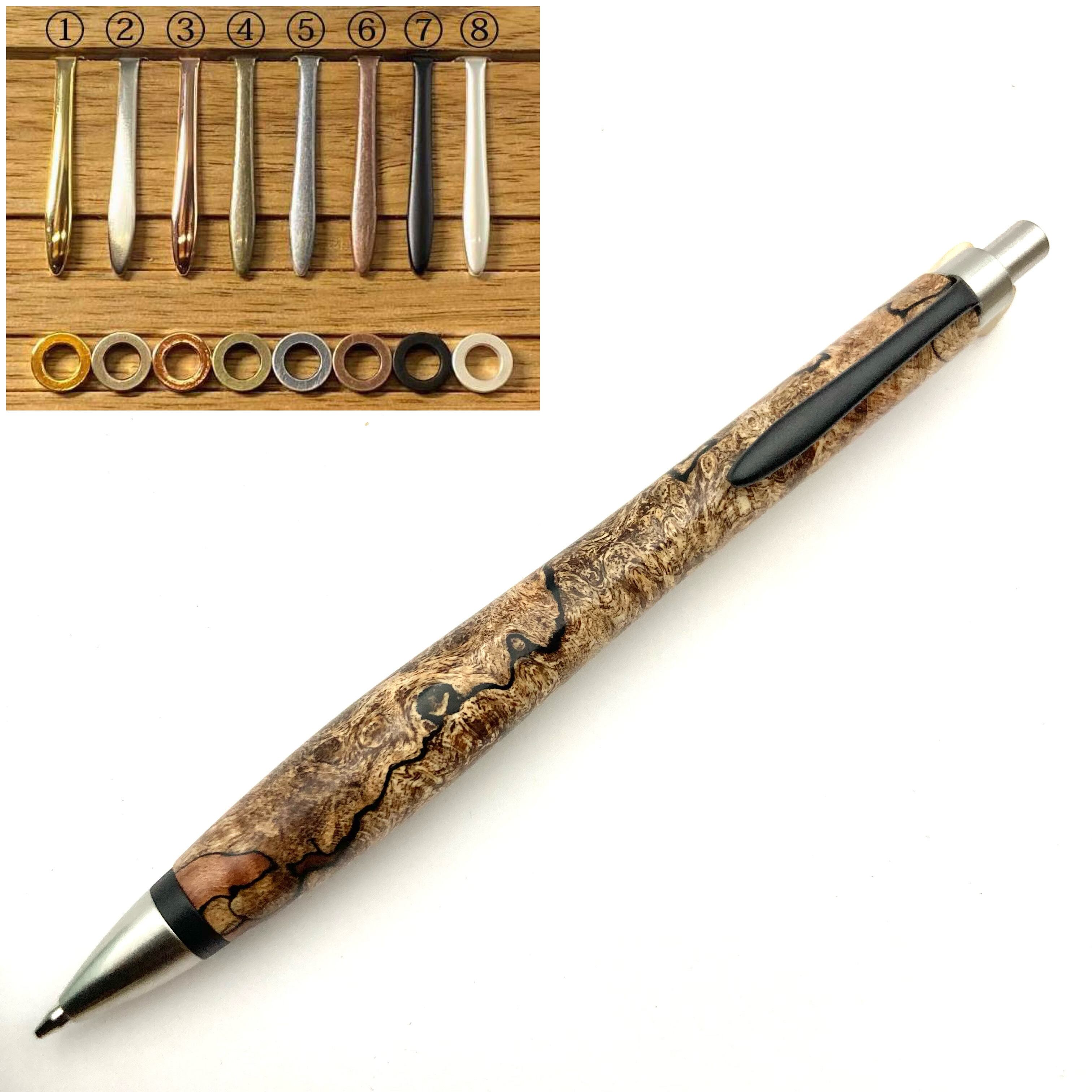 ペンシルは軸ブレが起こりにくい固定式口金を採用し、木の表情を最大限に楽しめる木軸の長さと、書き心地にこだわったバランスで金具を設計してあります。