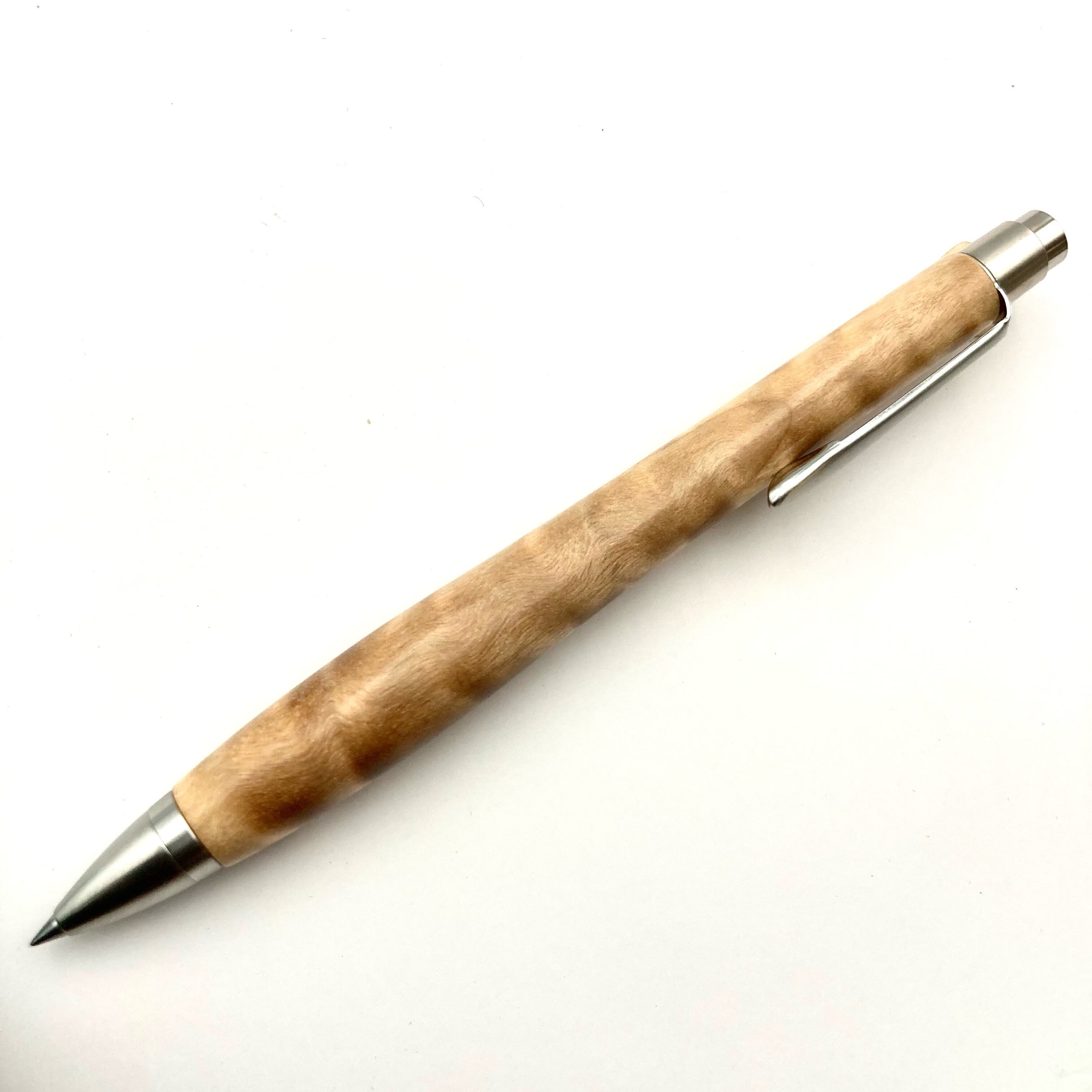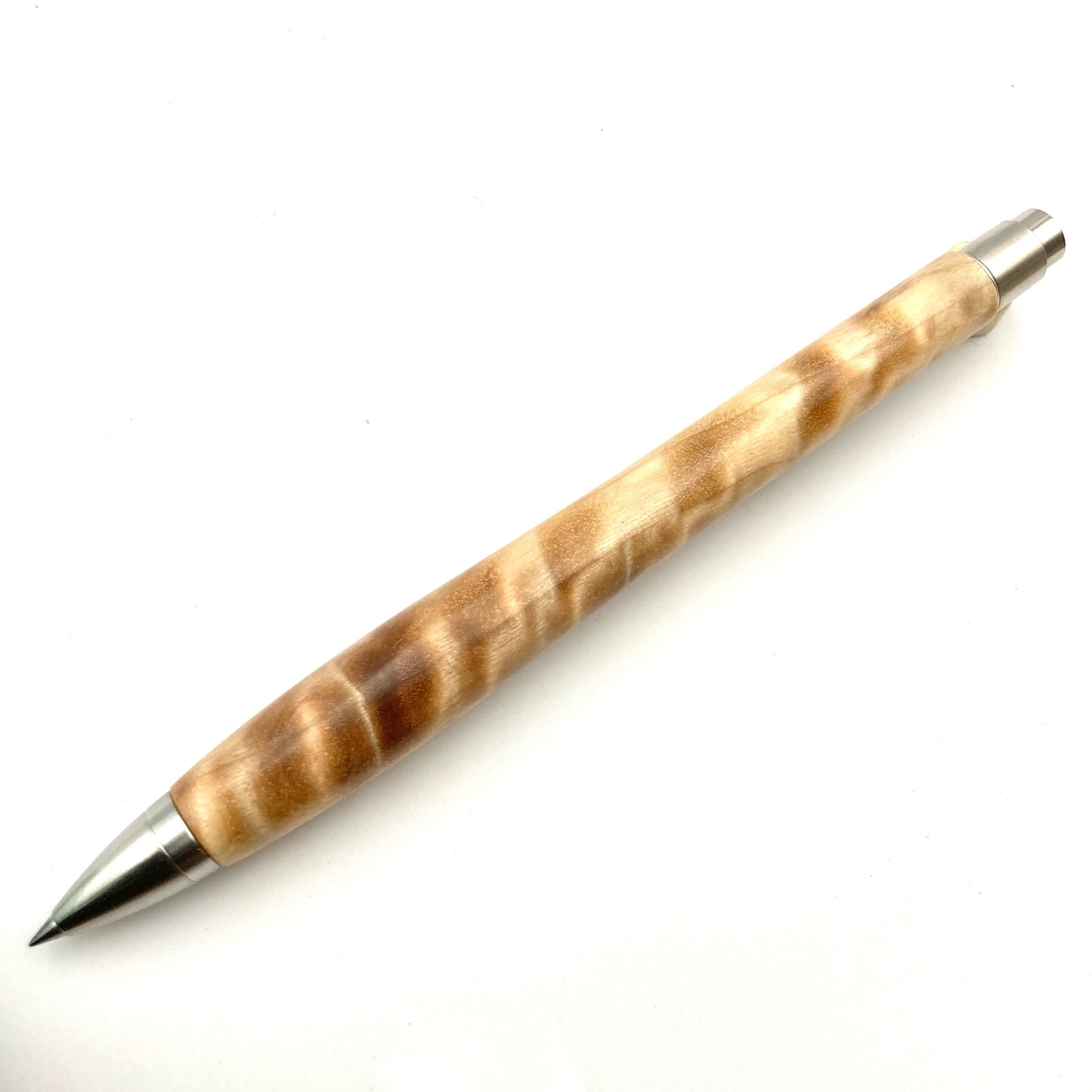 ボールペンのノックシステムは、ドイツ最高のクリックメカニズムを採用してあります。このメカニズムはユニークな機構のため、クリックしたときのカチカチ音が静かで、どんな場所でも気兼ねなく使うことができます。滑らかに動くこのプッシュ感覚を一度味わうと他には戻れなくなってしまうほどの魅力があります。 100分の1単位の加工精度で削り出されたペン先は、軸ブレも全くありません。