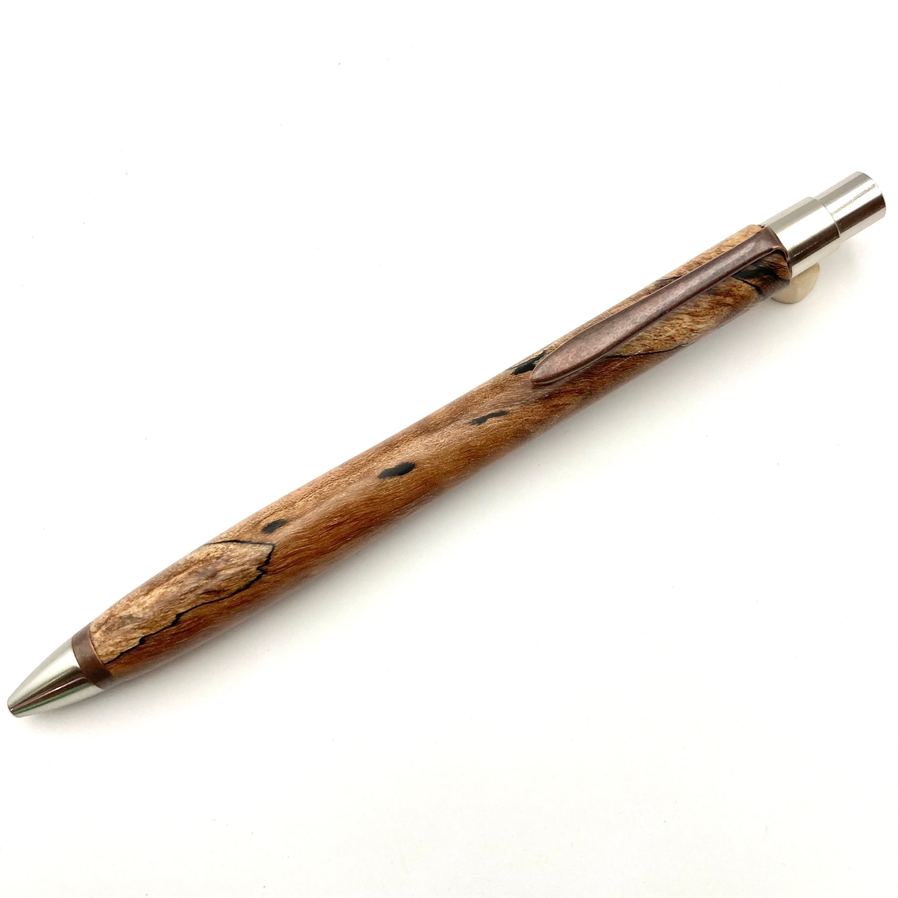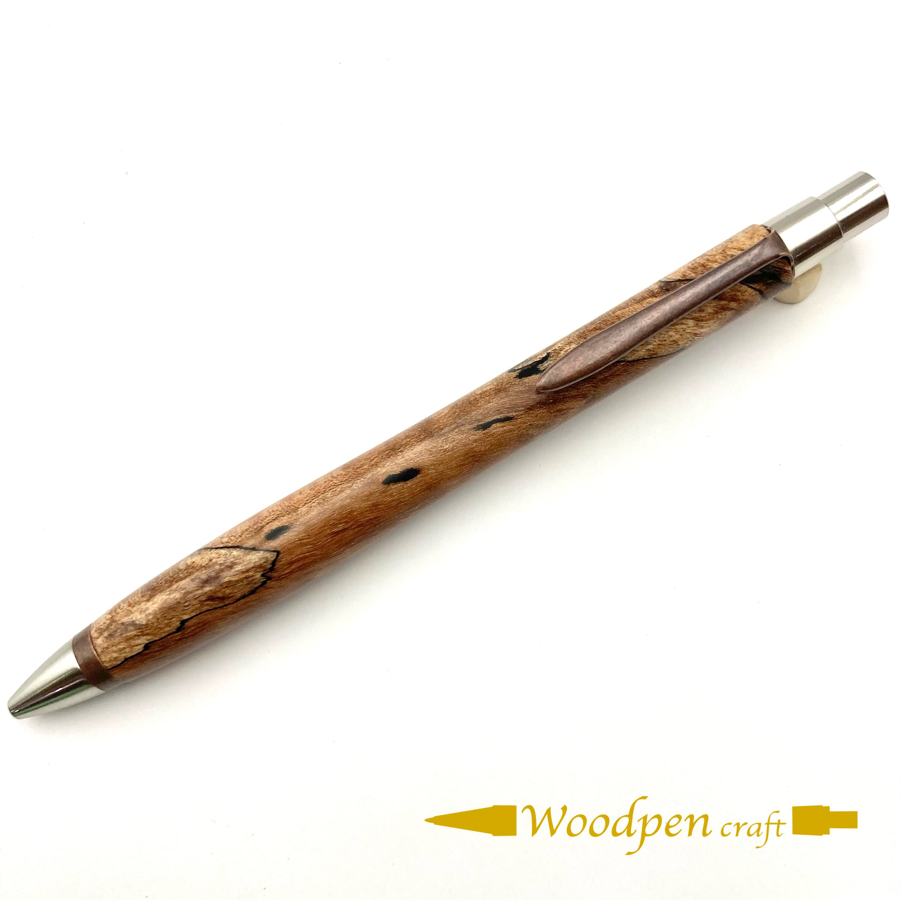 ボールペンのノックシステムは、ドイツ最高のクリックメカニズムを採用してあります。このメカニズムはユニークな機構のため、クリックしたときのカチカチ音が静かで、どんな場所でも気兼ねなく使うことができます。滑らかに動くこのプッシュ感覚を一度味わうと他には戻れなくなってしまうほどの魅力があります。 100分の1単位の加工精度で削り出されたペン先は、軸ブレも全くありません。