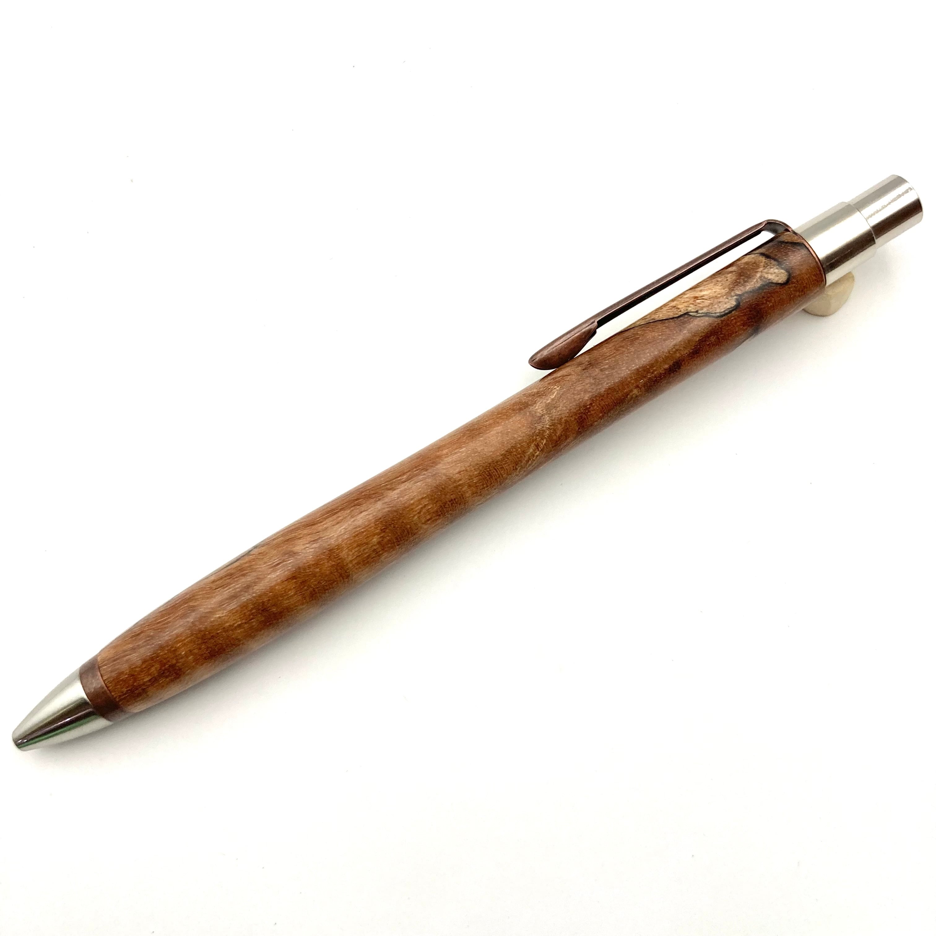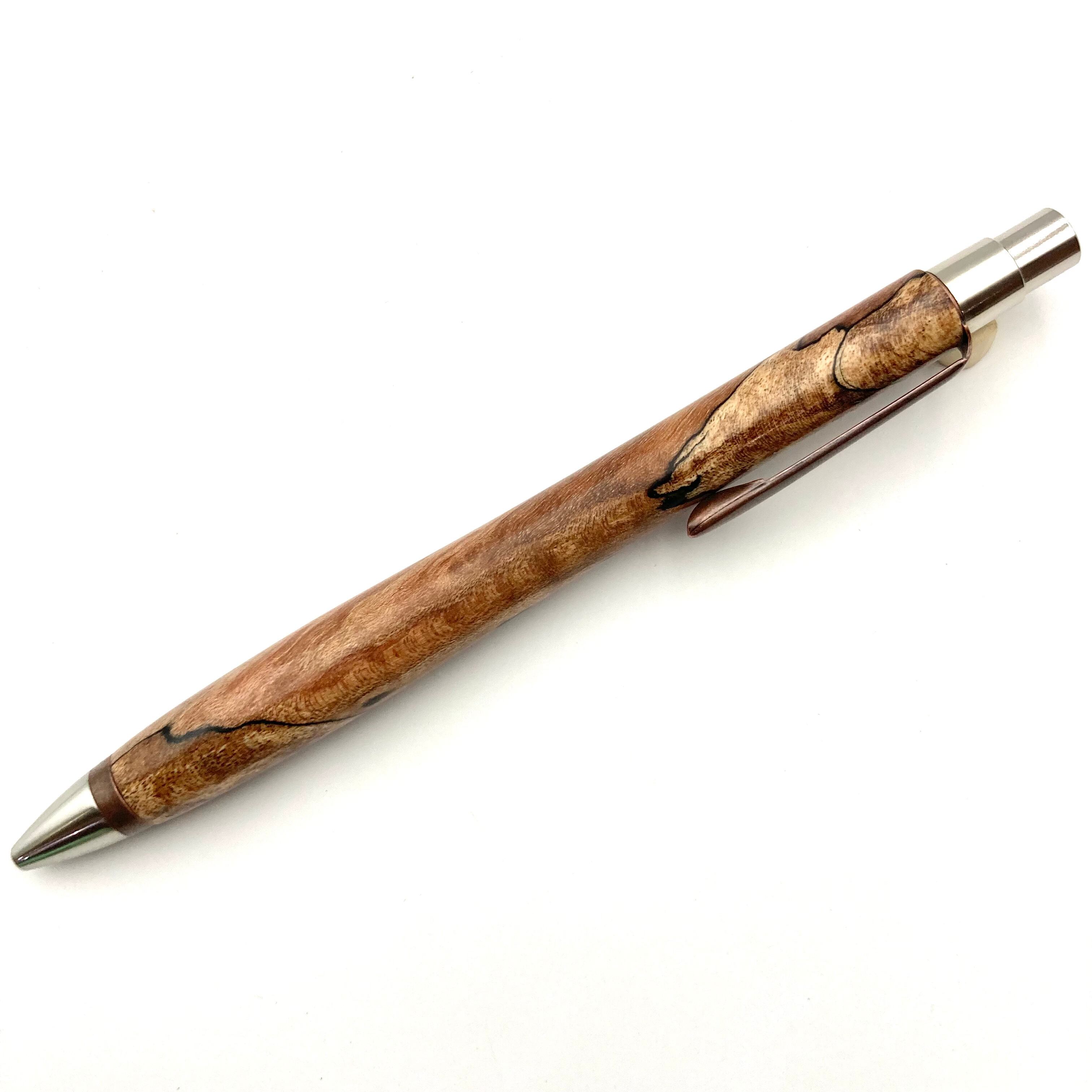 茶色の部分にスポルテッドメイプルでは珍しい縮杢が入りました。