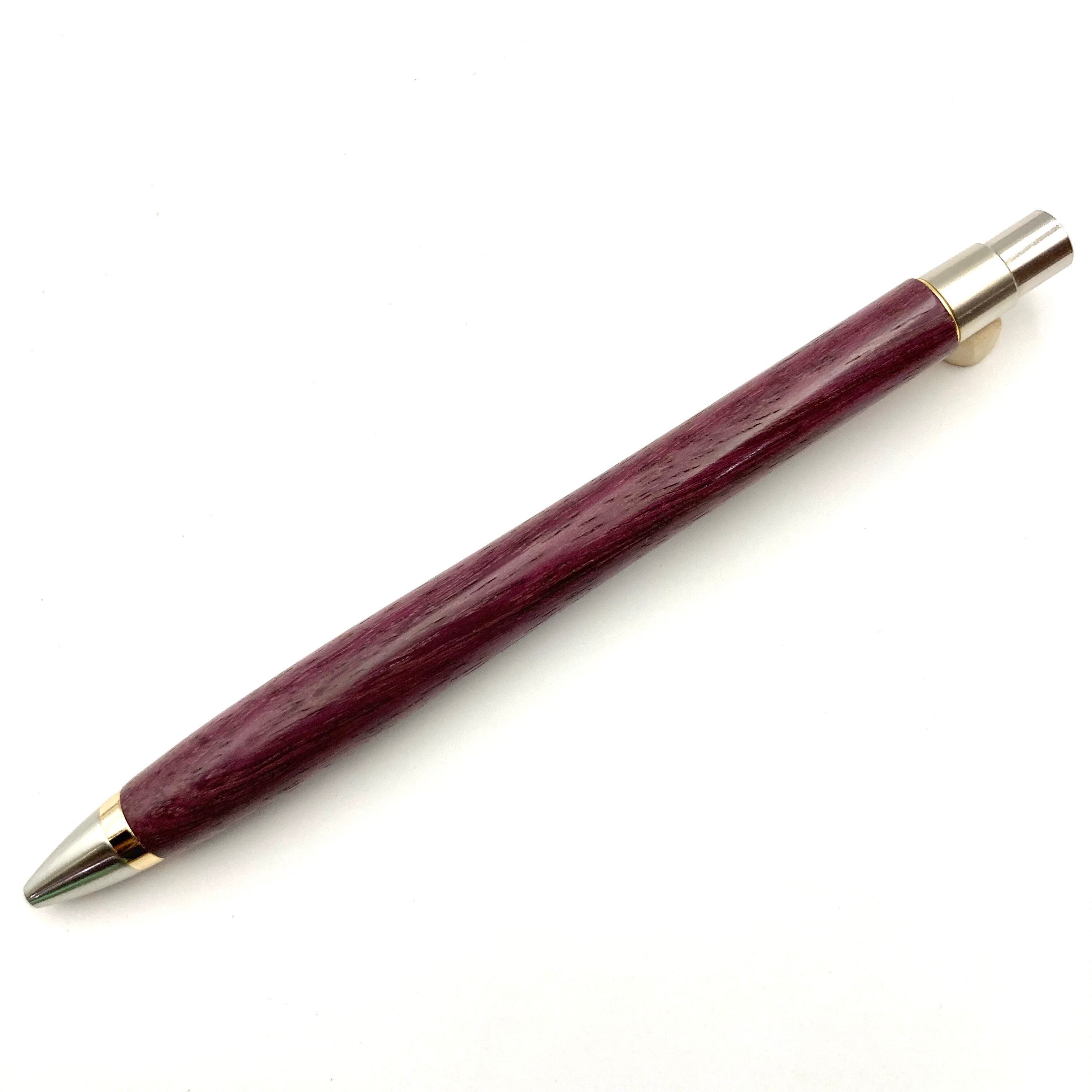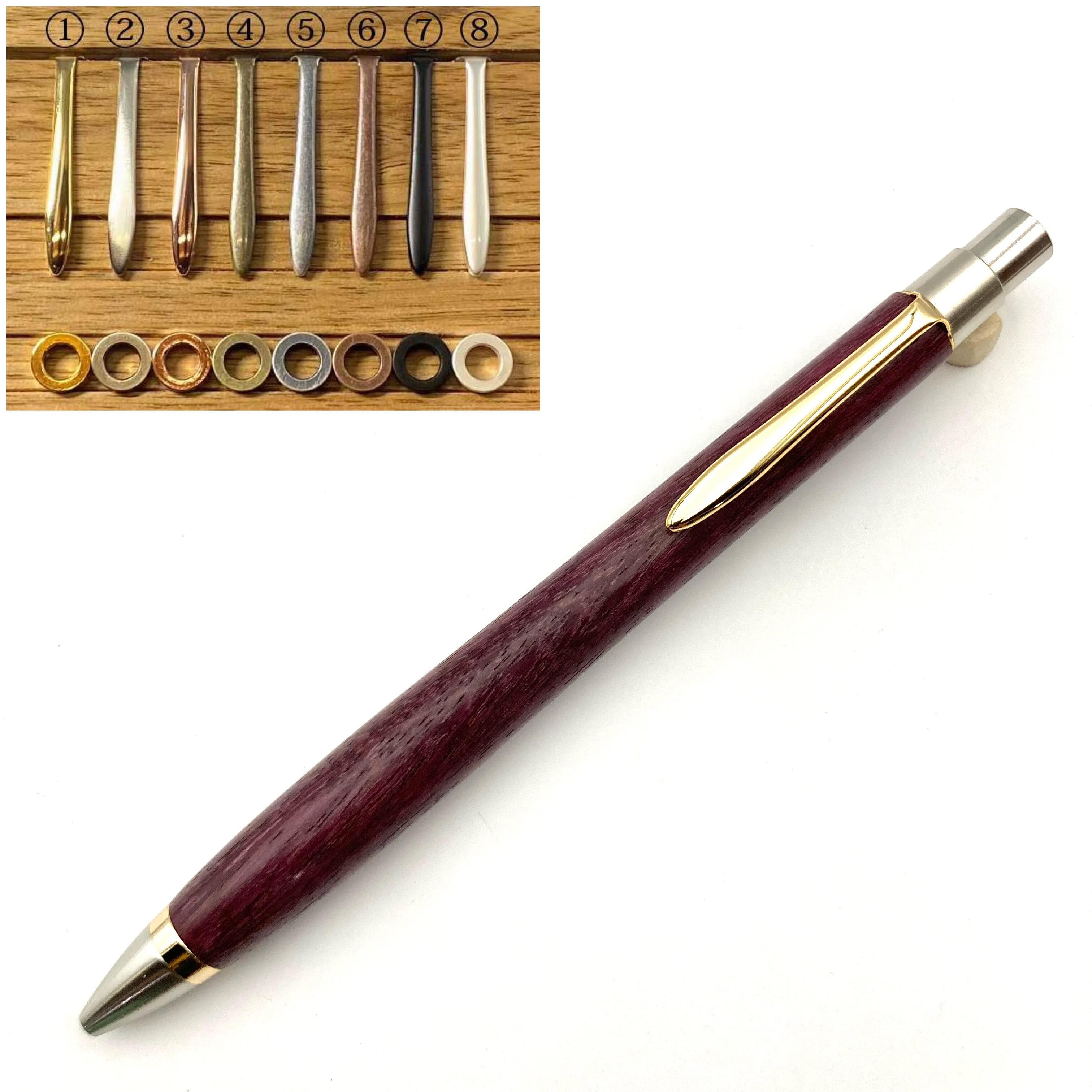 ボールペンのノックシステムは、ドイツ最高のクリックメカニズムを採用してあります。このメカニズムはユニークな機構のため、クリックしたときのカチカチ音が静かで、どんな場所でも気兼ねなく使うことができます。滑らかに動くこのプッシュ感覚を一度味わうと他には戻れなくなってしまうほどの魅力があります。 100分の1単位の加工精度で削り出されたペン先は、軸ブレも全くありません。