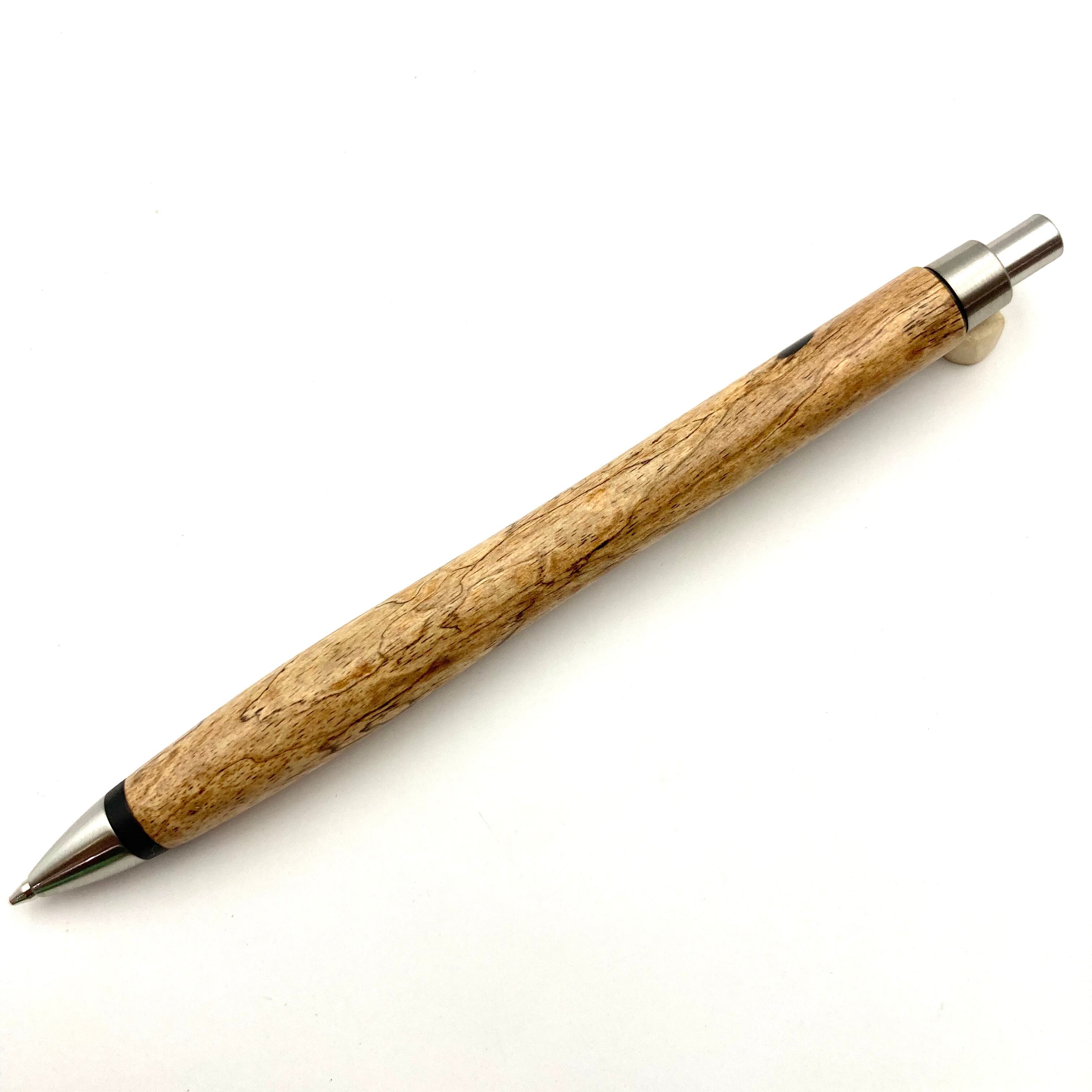 ペンシルは軸ブレが起こりにくい固定式口金を採用し、木の表情を最大限に楽しめる木軸の長さと、書き心地にこだわったバランスで金具を設計してあります。
