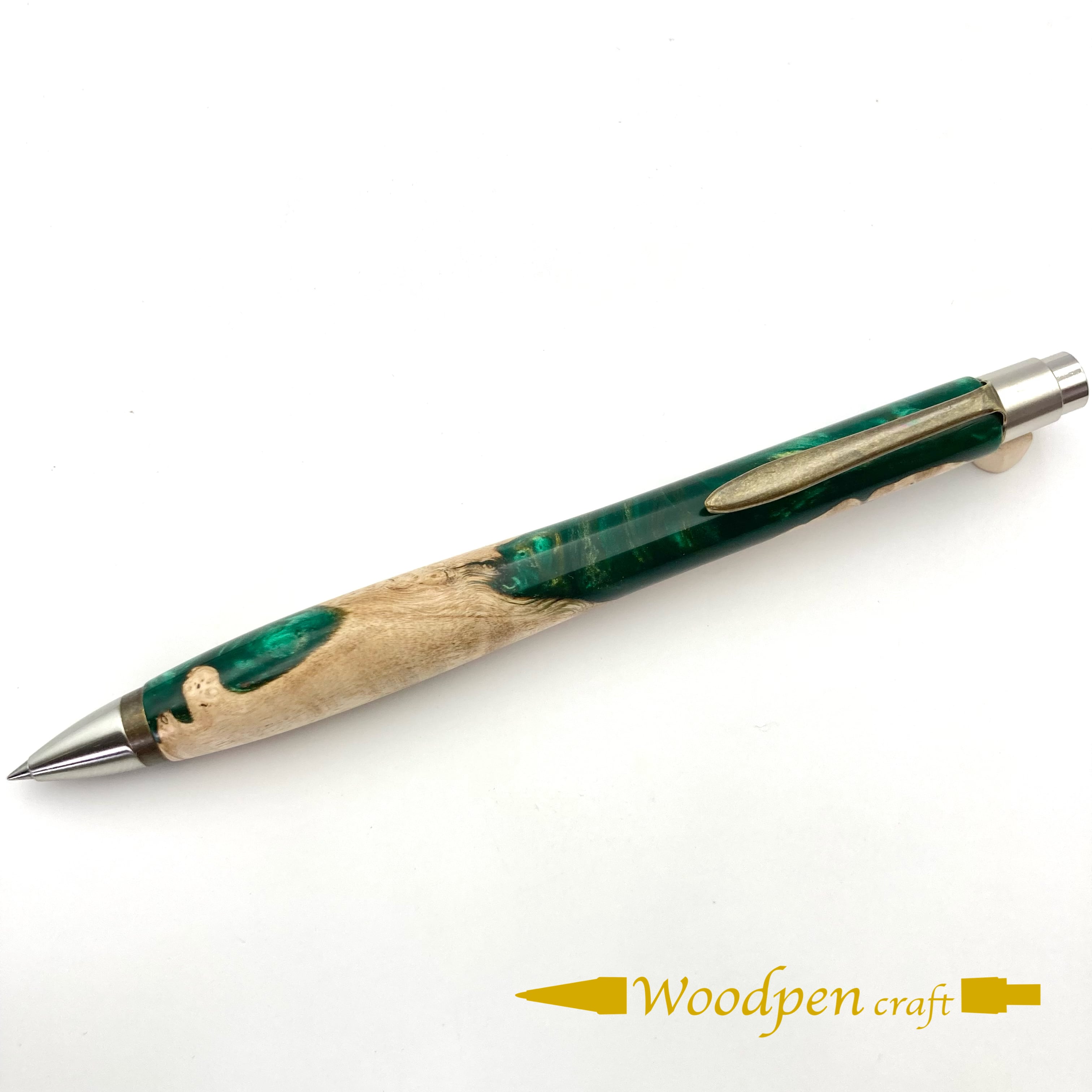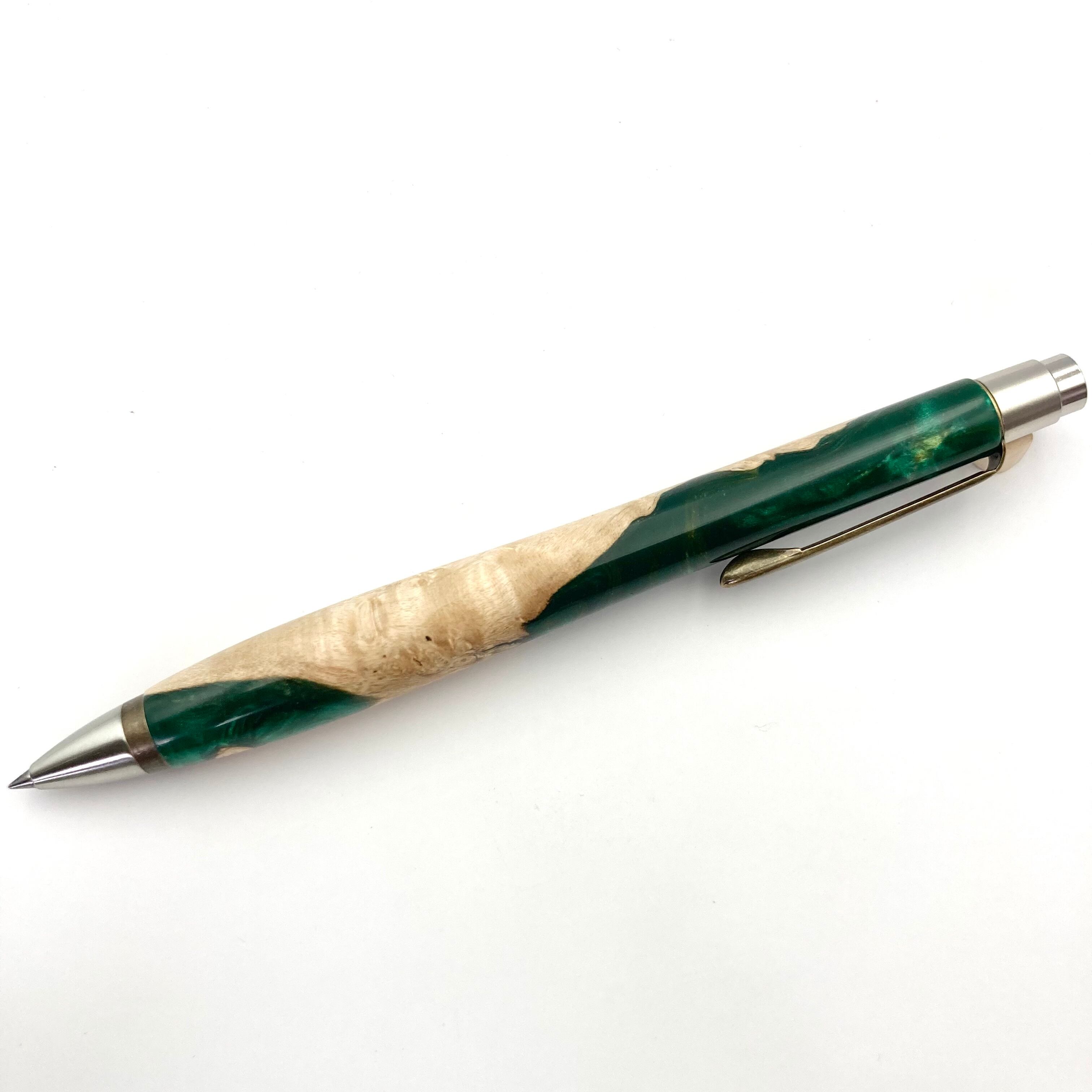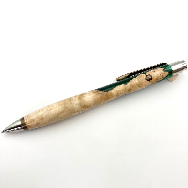 ボールペンのノックシステムは、ドイツ最高のクリックメカニズムを採用してあります。このメカニズムはユニークな機構のため、クリックしたときのカチカチ音が静かで、どんな場所でも気兼ねなく使うことができます。滑らかに動くこのプッシュ感覚を一度味わうと他には戻れなくなってしまうほどの魅力があります。 100分の1単位の加工精度で削り出されたペン先は、軸ブレも全くありません。