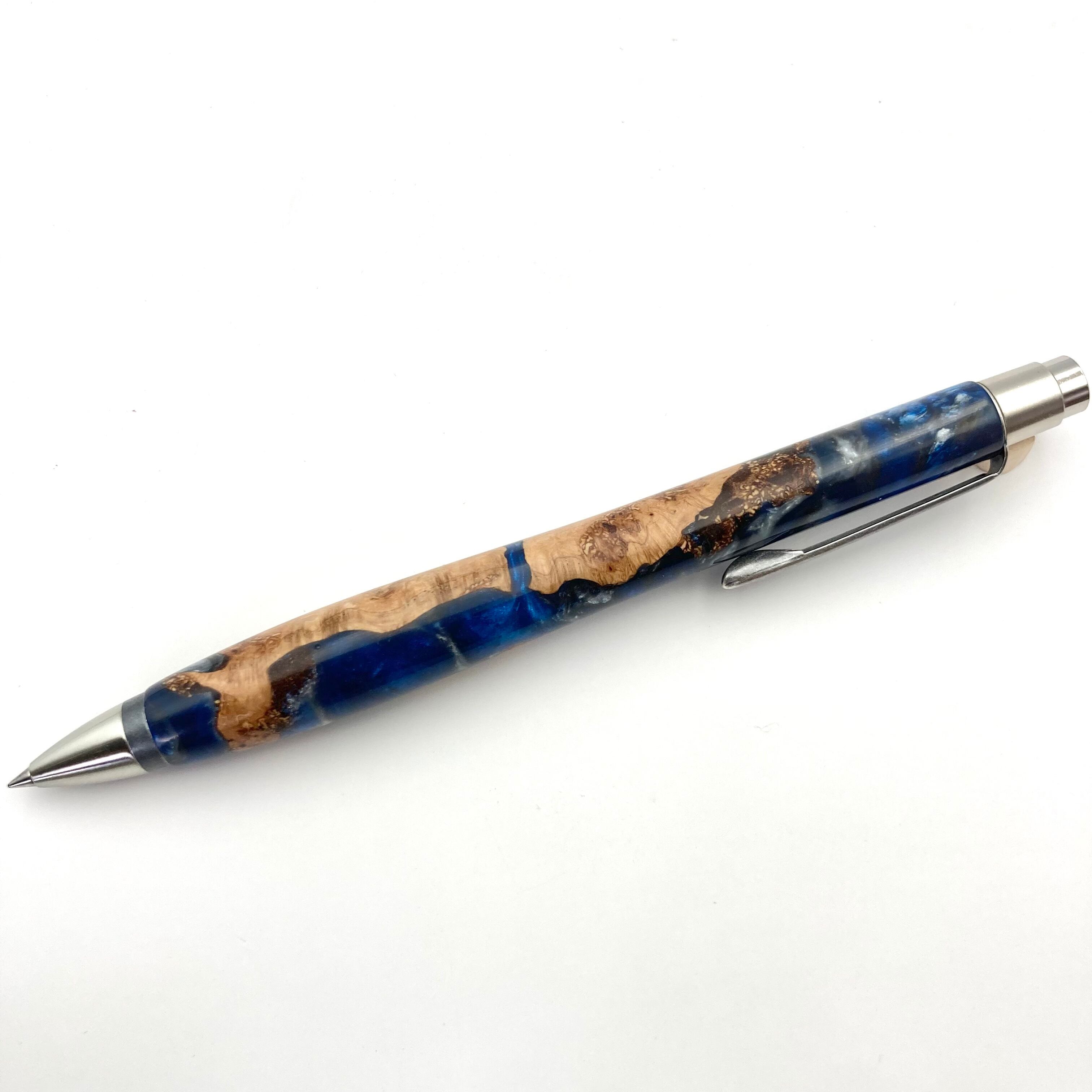 ボールペンのノックシステムは、ドイツ最高のクリックメカニズムを採用してあります。このメカニズムはユニークな機構のため、クリックしたときのカチカチ音が静かで、どんな場所でも気兼ねなく使うことができます。滑らかに動くこのプッシュ感覚を一度味わうと他には戻れなくなってしまうほどの魅力があります。 100分の1単位の加工精度で削り出されたペン先は、軸ブレも全くありません。