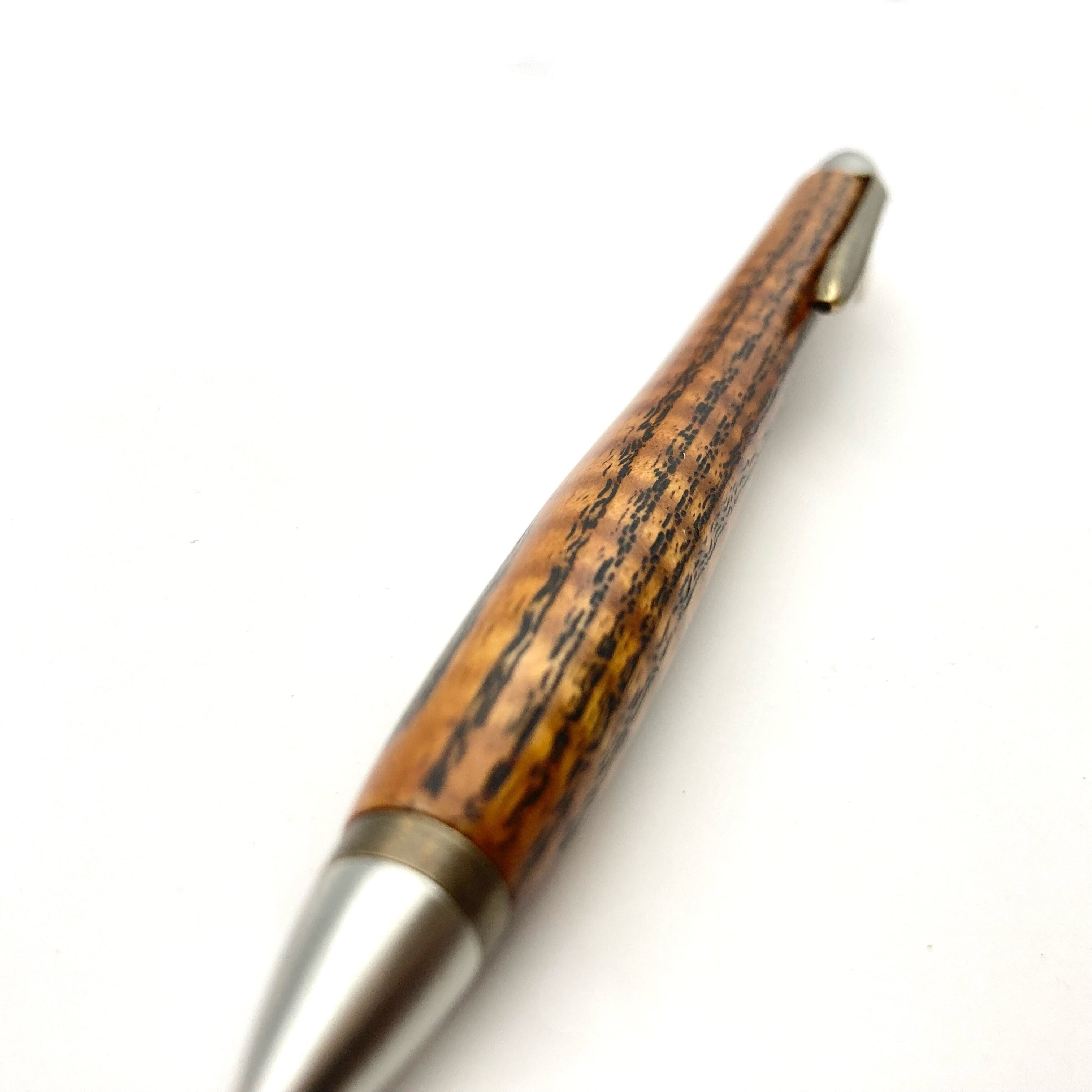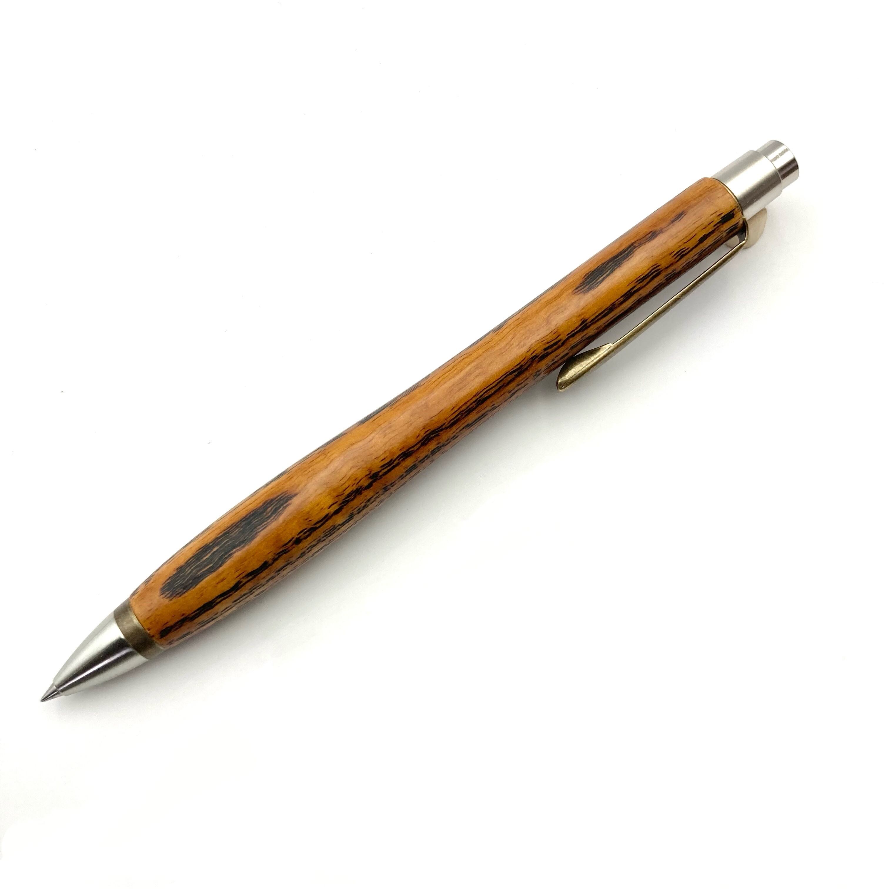 ボールペンのノックシステムは、ドイツ最高のクリックメカニズムを採用してあります。このメカニズムはユニークな機構のため、クリックしたときのカチカチ音が静かで、どんな場所でも気兼ねなく使うことができます。滑らかに動くこのプッシュ感覚を一度味わうと他には戻れなくなってしまうほどの魅力があります。 100分の1単位の加工精度で削り出されたペン先は、軸ブレも全くありません。